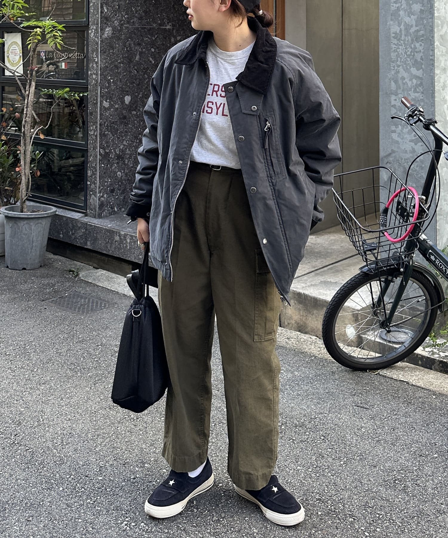 ・スタイリッシュなアイテムながらも、身幅広めのリラックスムード