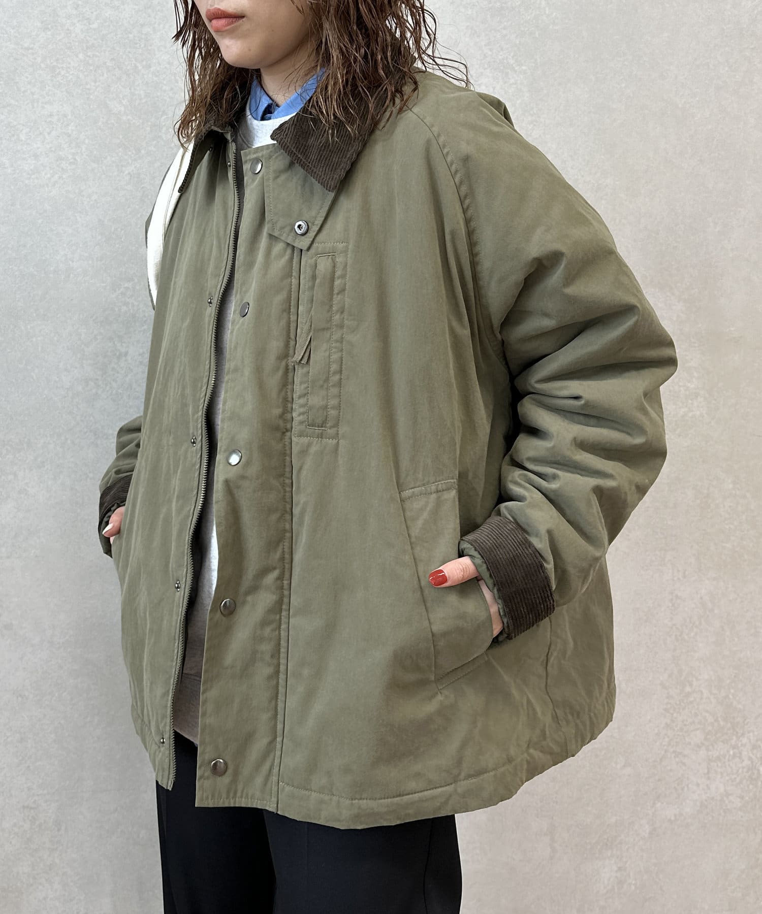 • CPCM(シーピーシーエム) 襟コーデュロイ中綿ハンティングジャケット