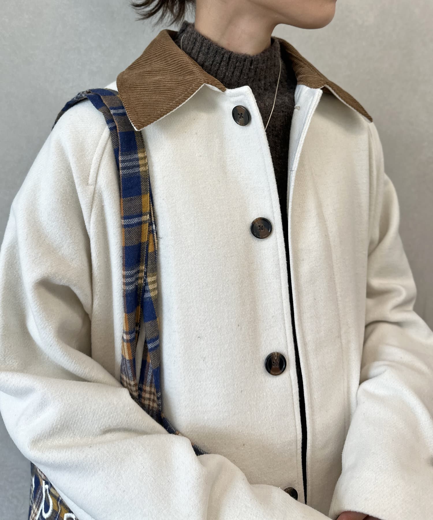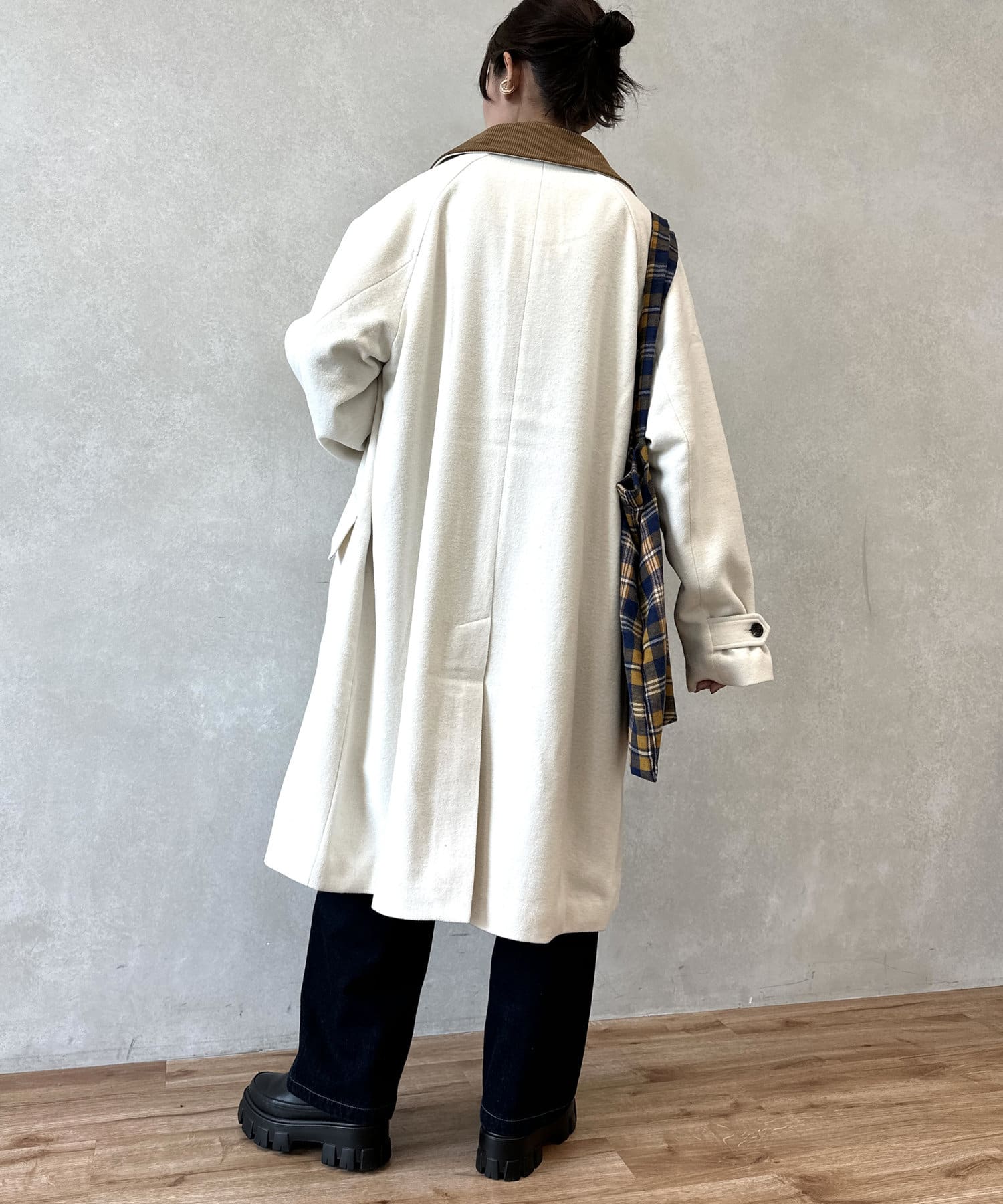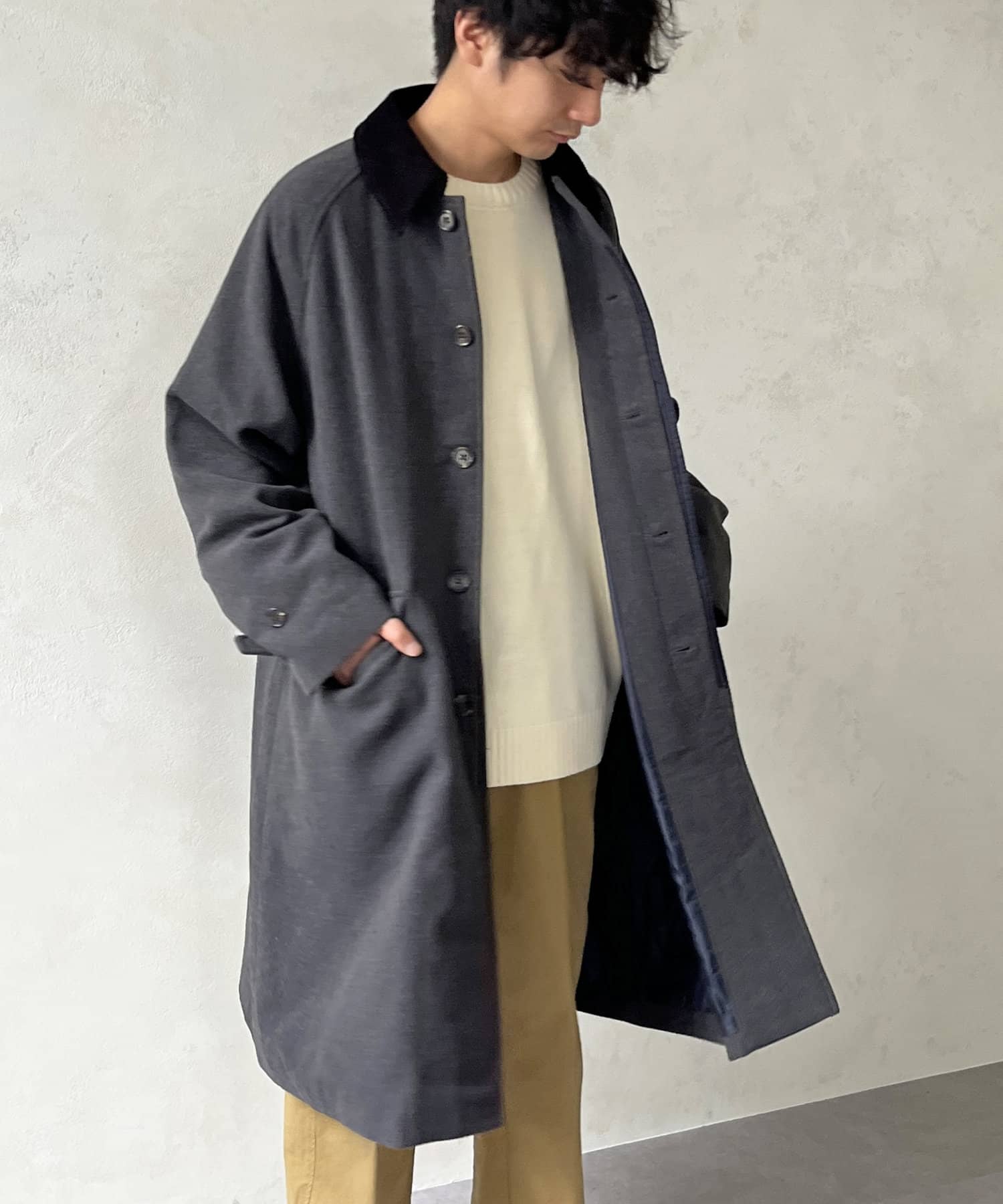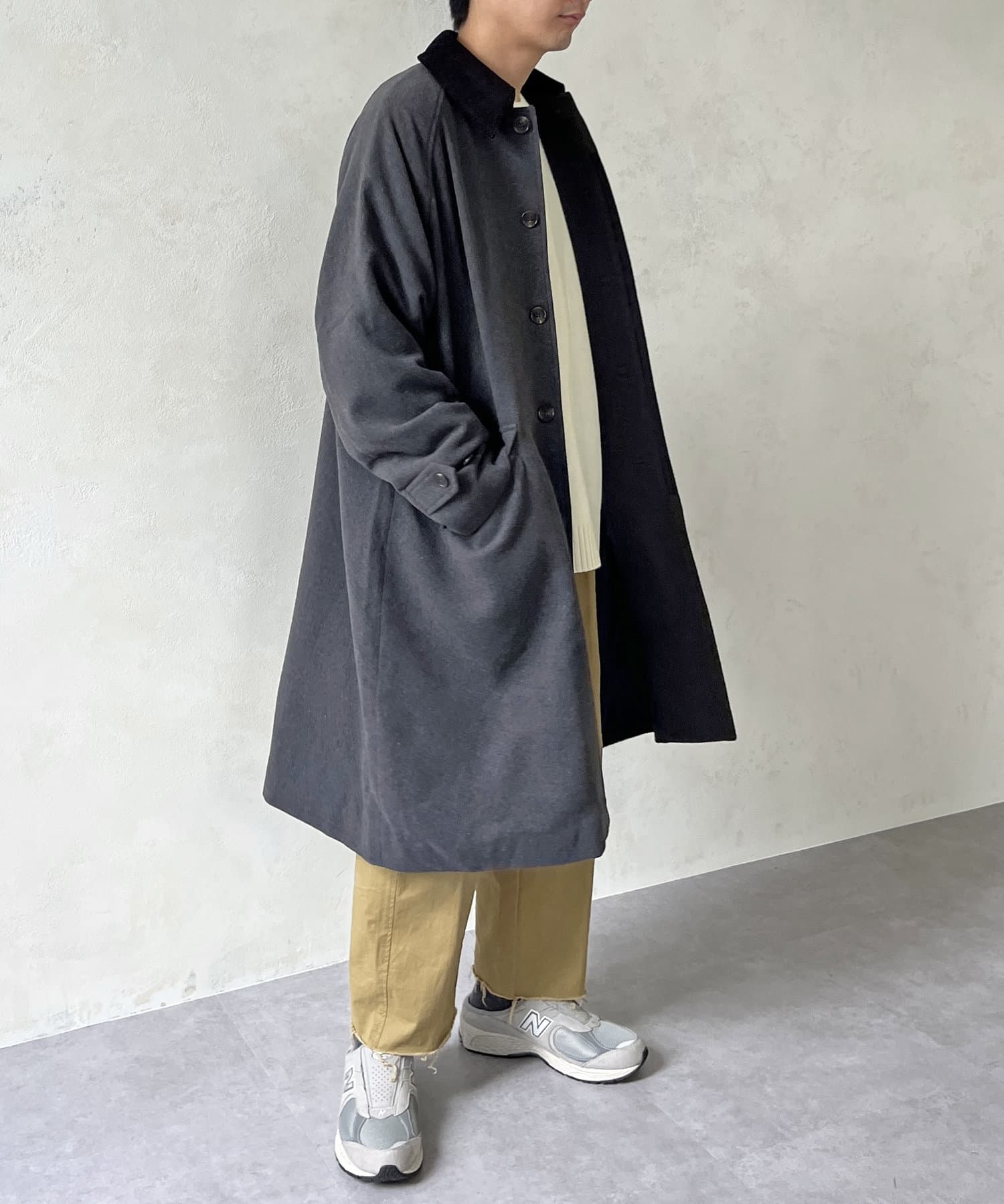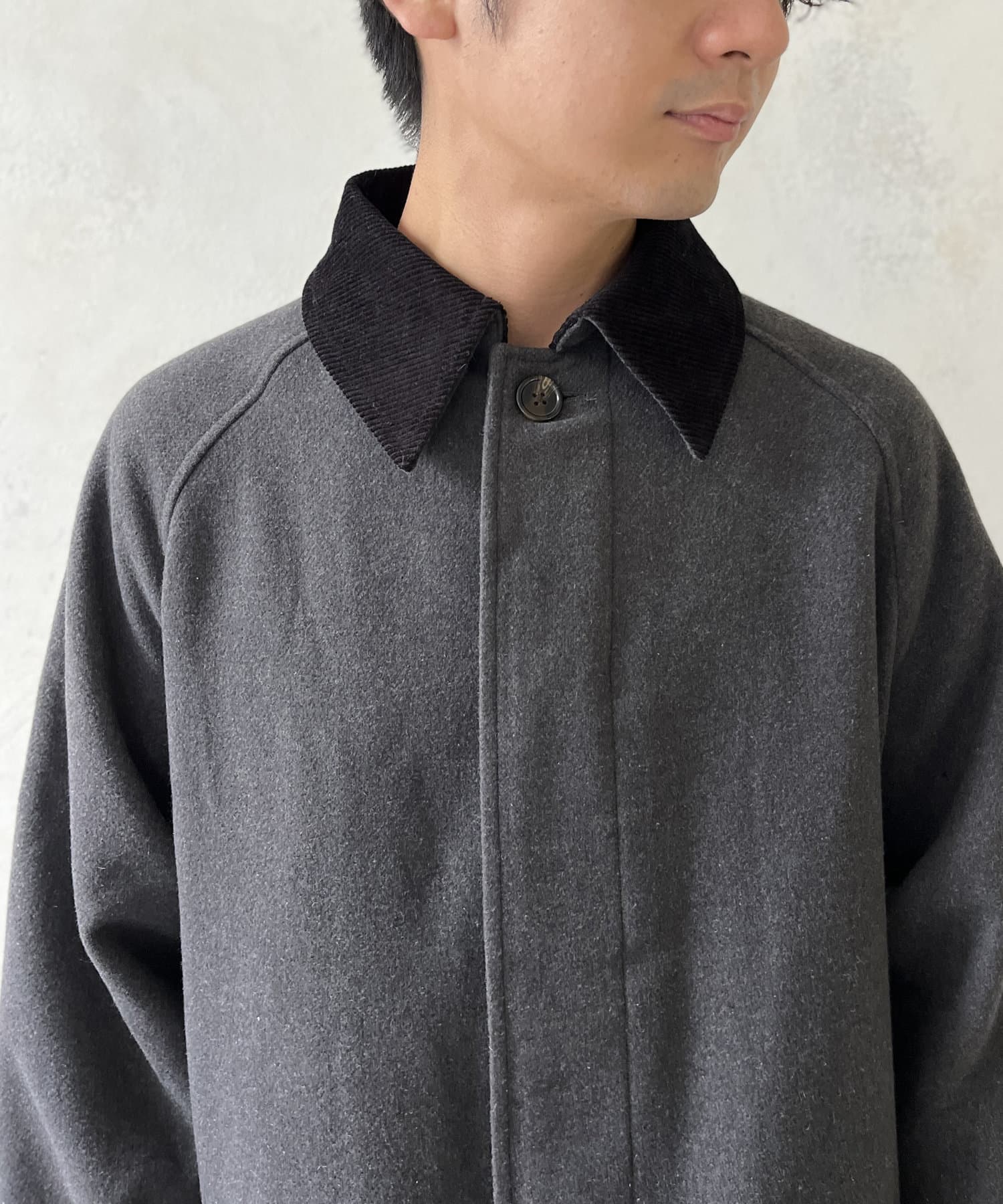 襟コーデュロイバルマカンコート