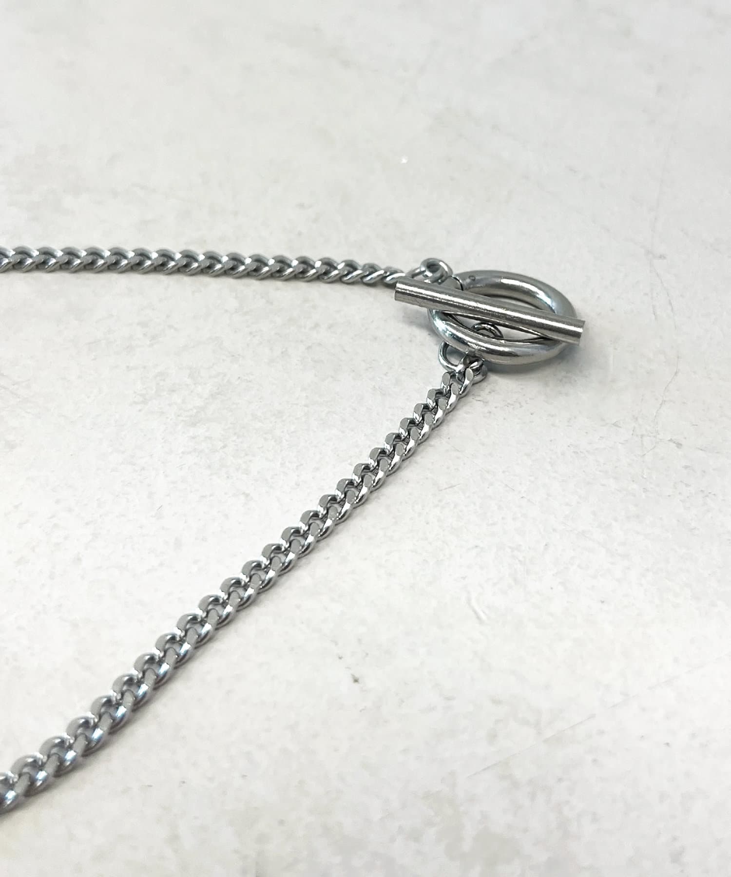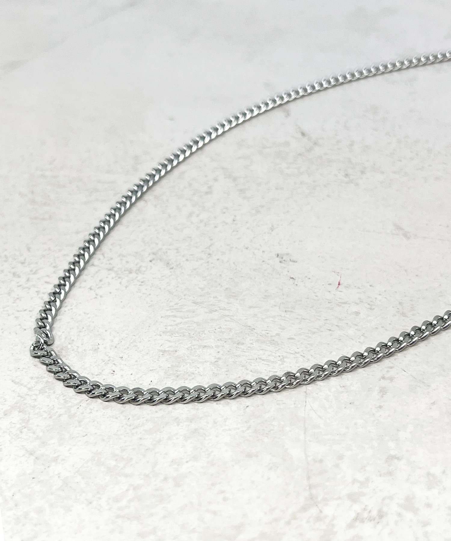 デニムパンツやカーゴパンツと合わせたストリートコーデや、スラックスパンツと合わせたきれいめカジュアルコーデなど、どんなスタイリングにも馴染むベーシックネックレスです。