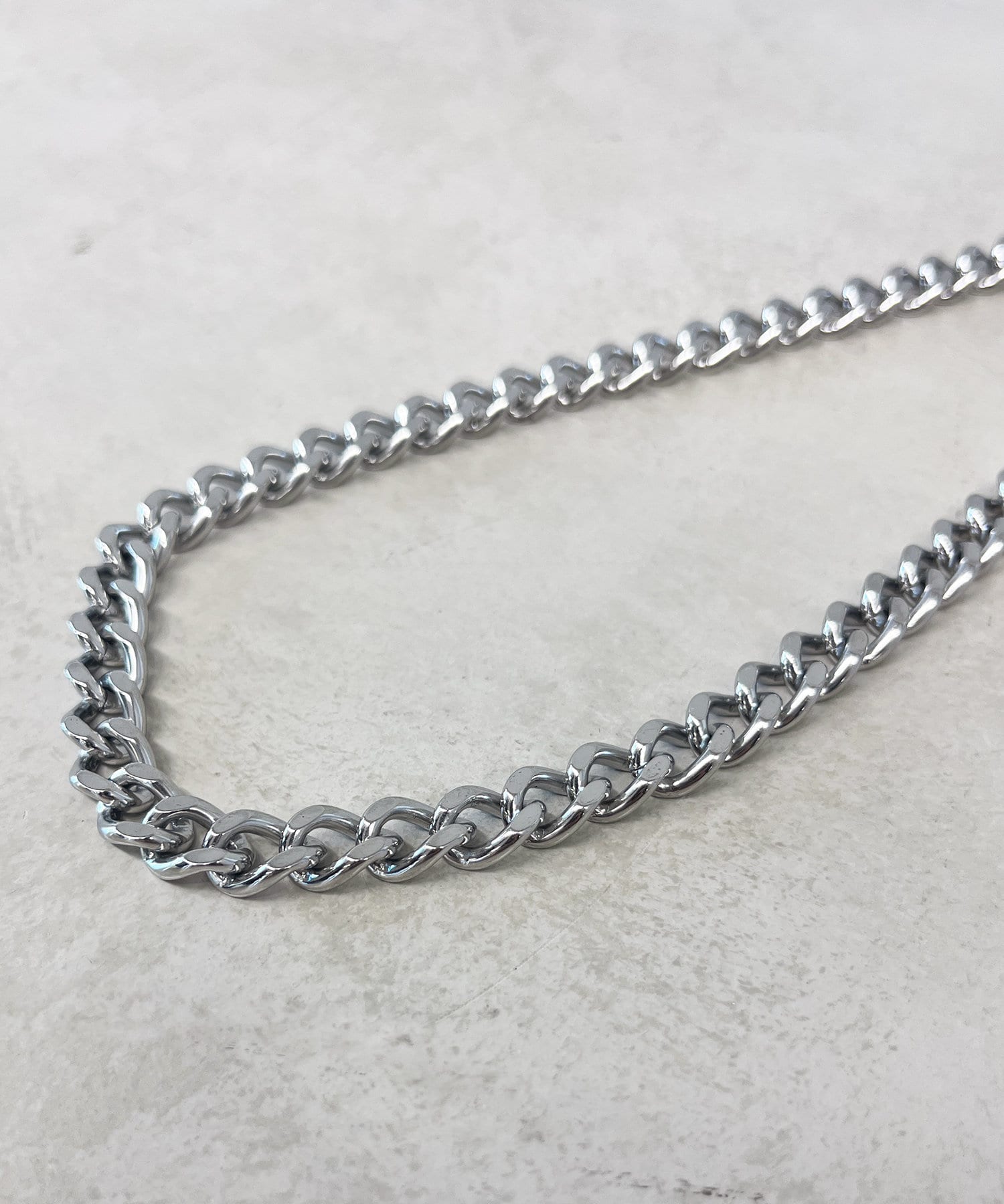 程よい存在感のチェーンとシルバーのカラーがモード感をプラスし、こなれた印象を演出してくれます。