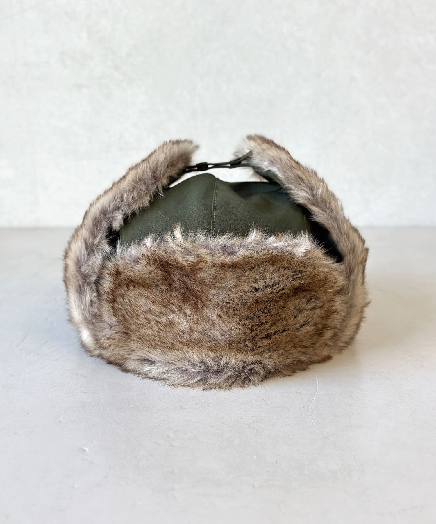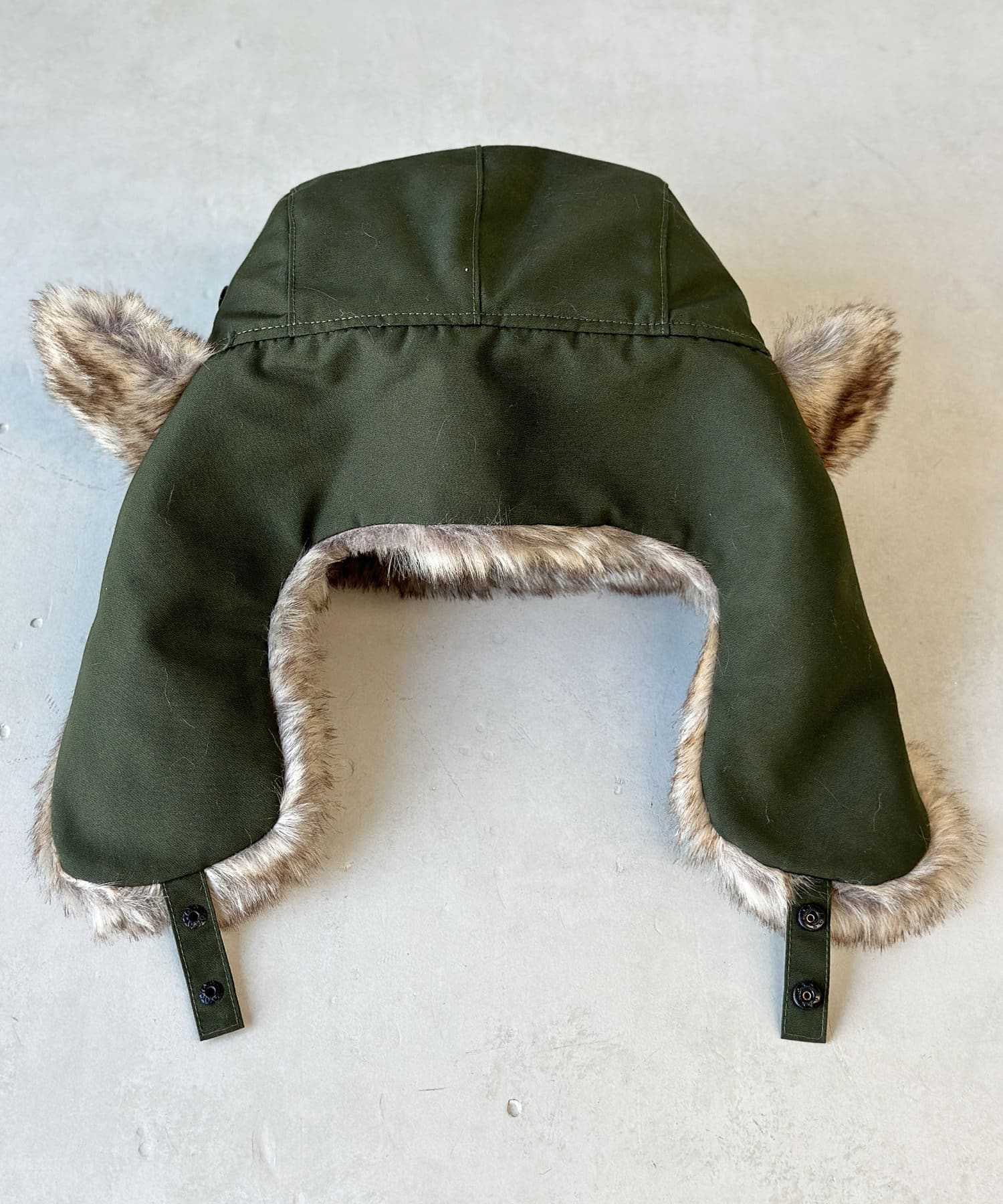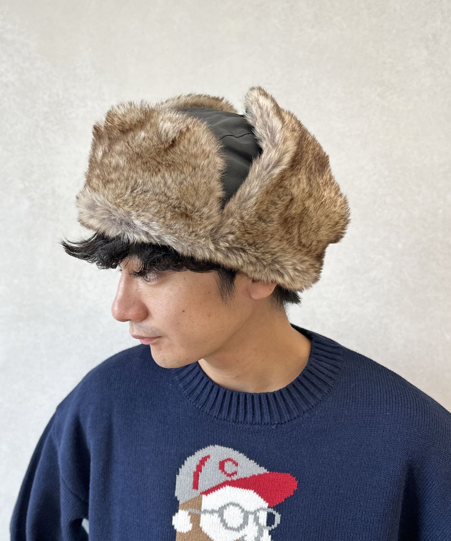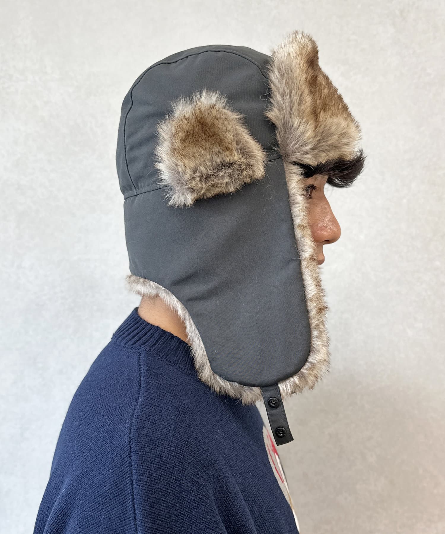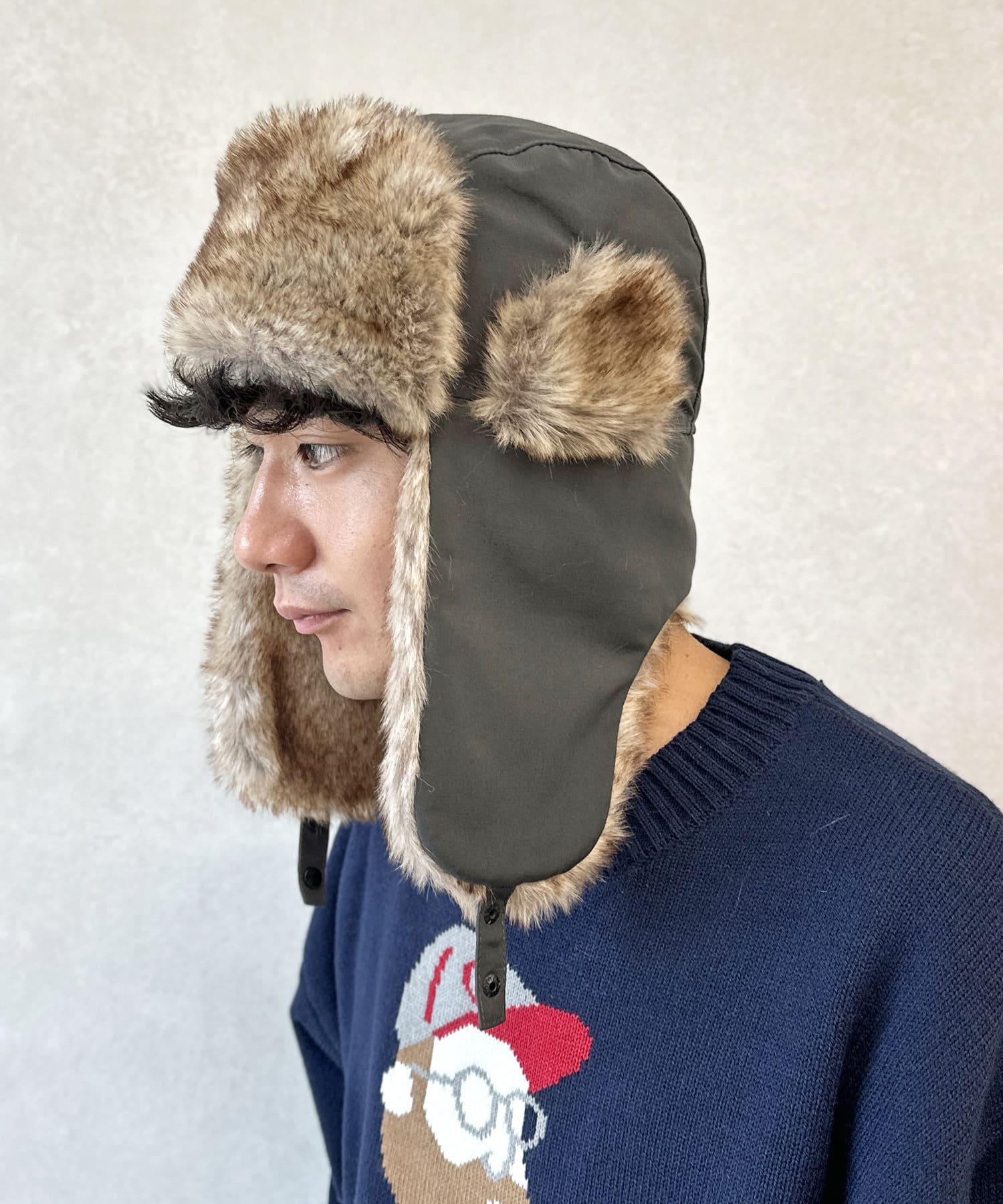 フライトキャップ特有の耳当て付きで、保温効果もばっちりです。