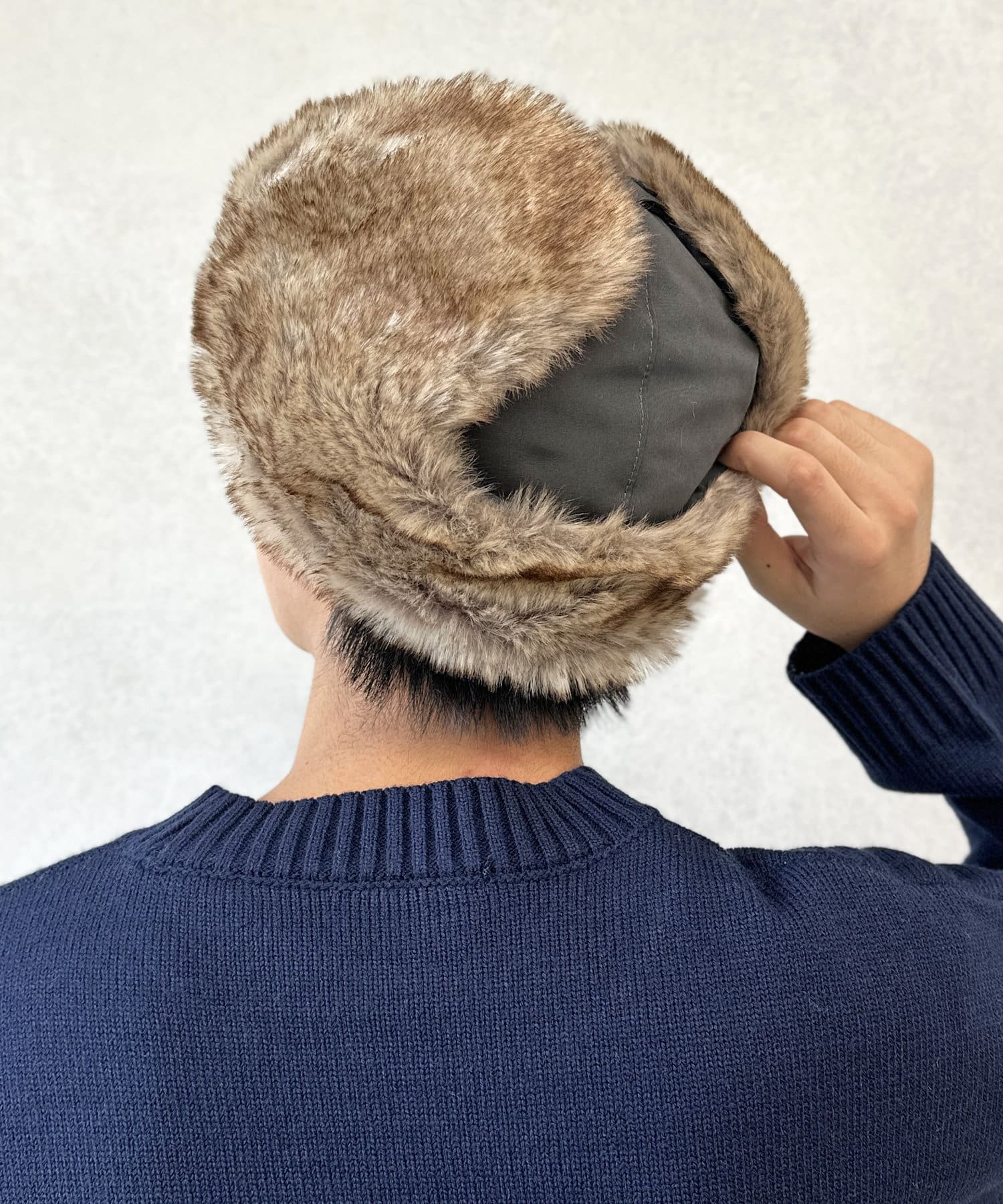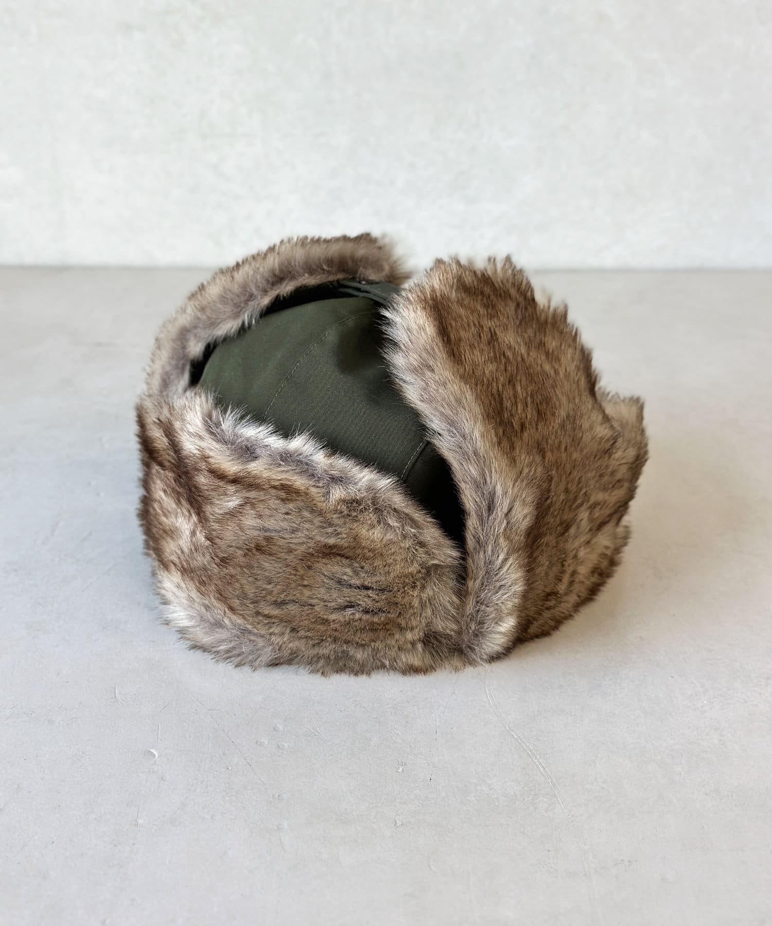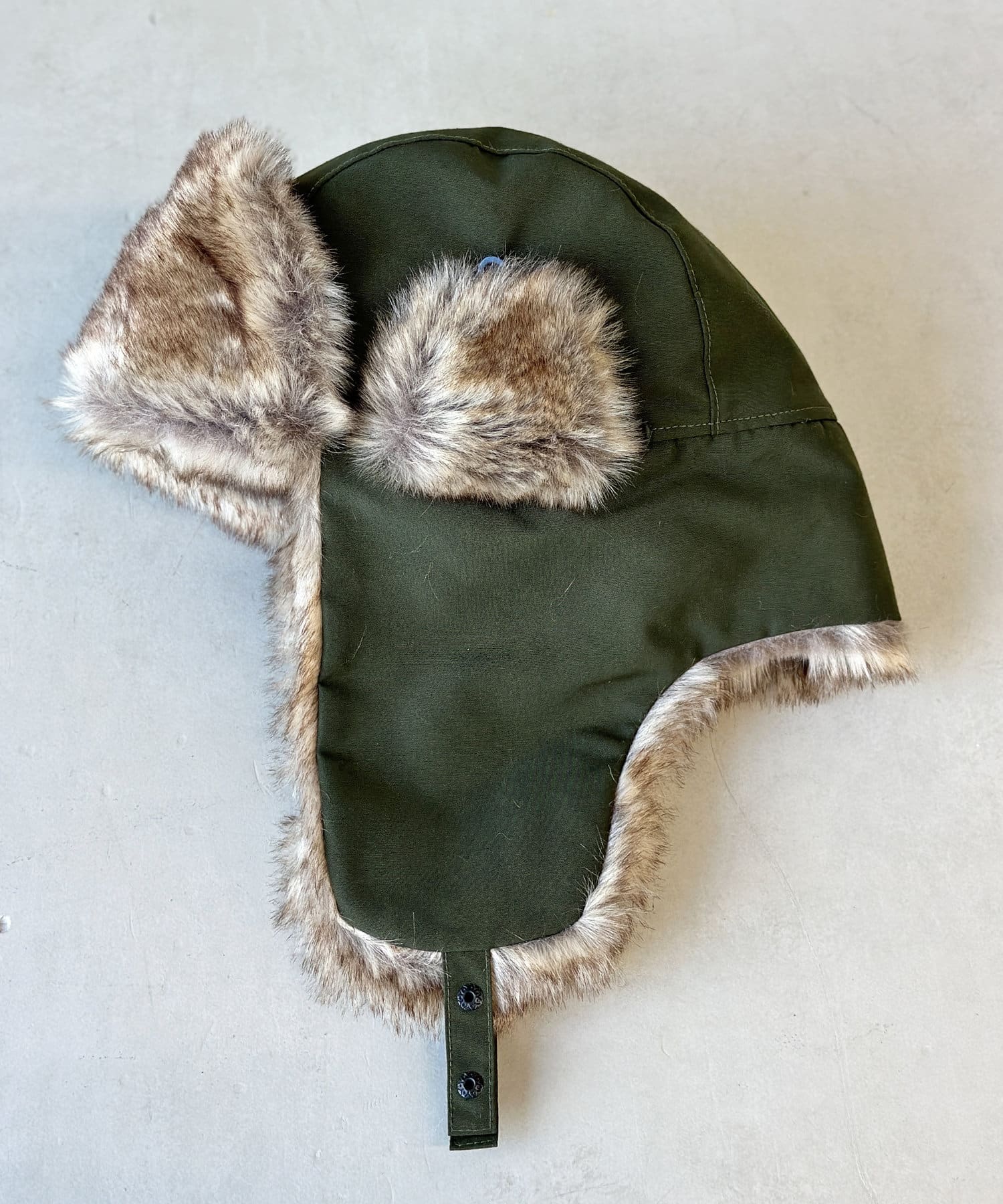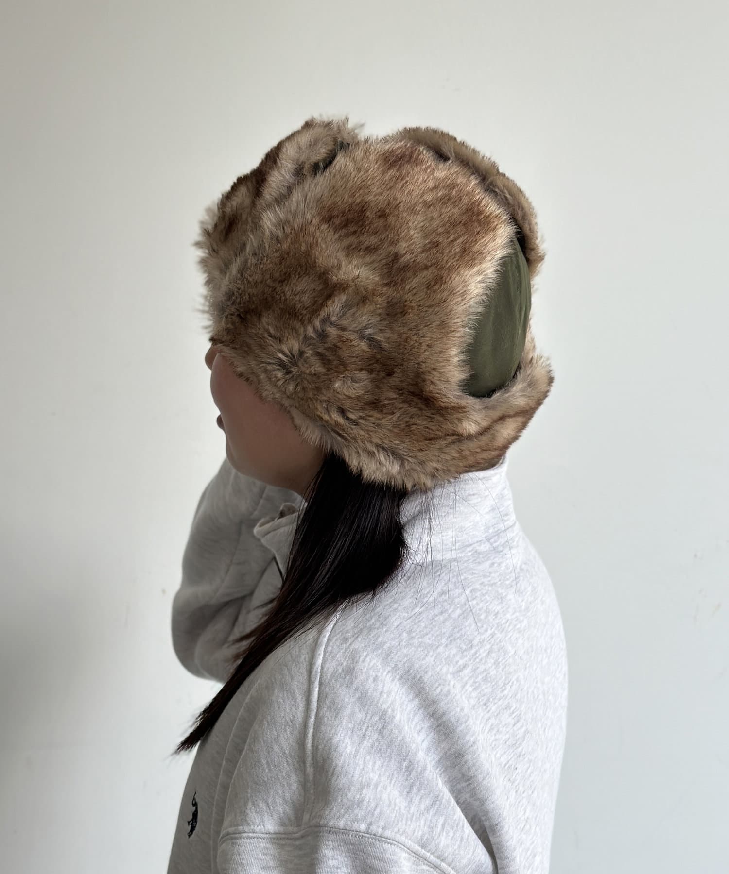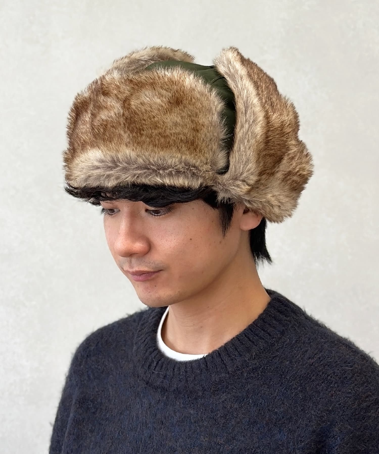フライトキャップ特有の耳当て付きで、保温効果もばっちりです。