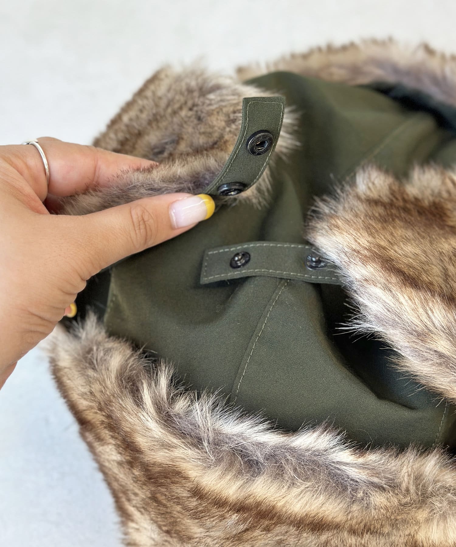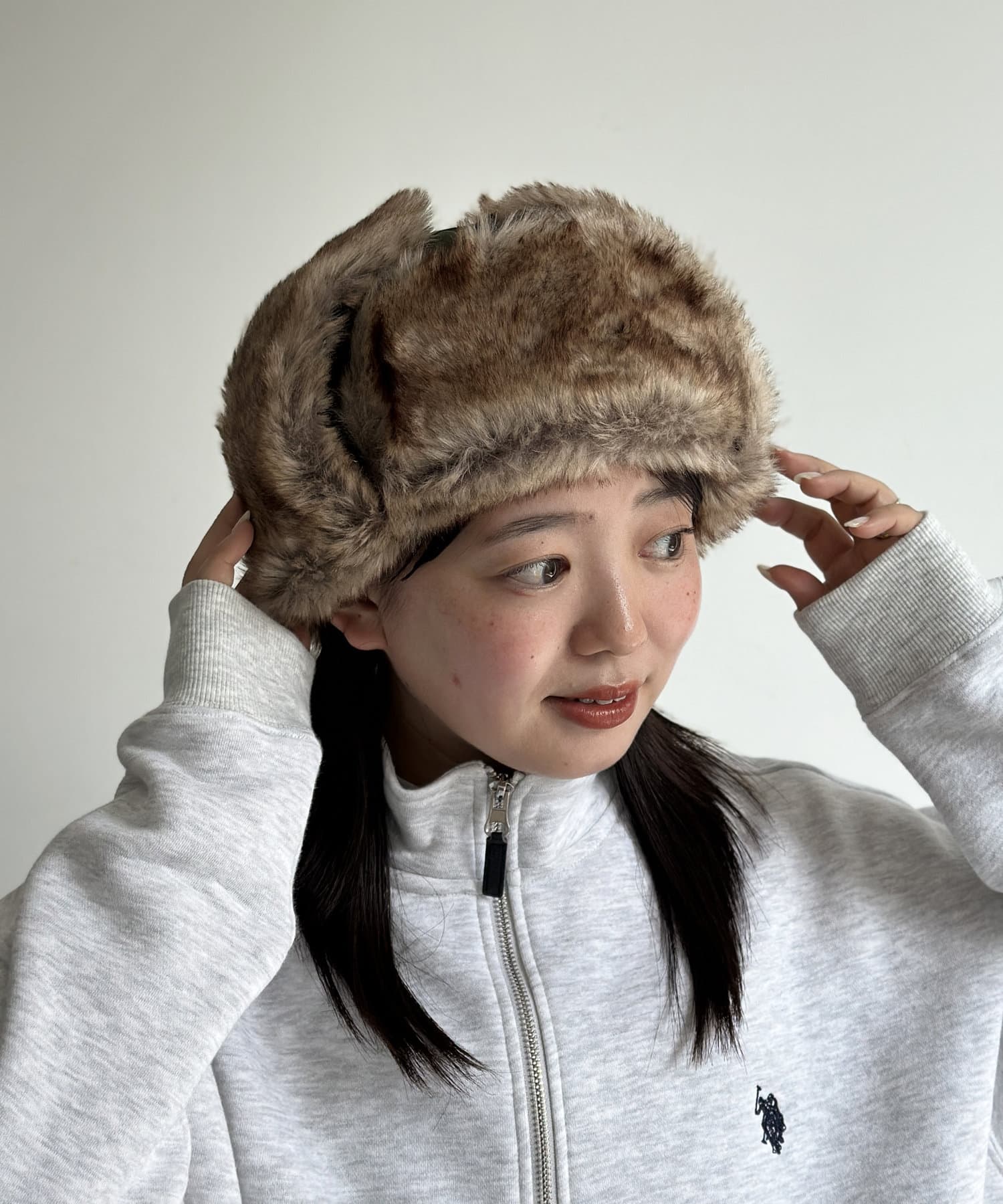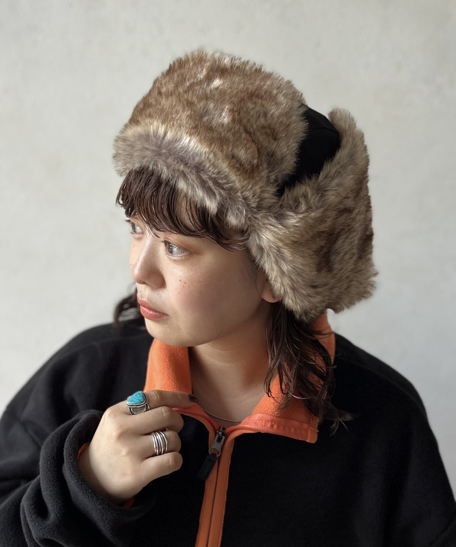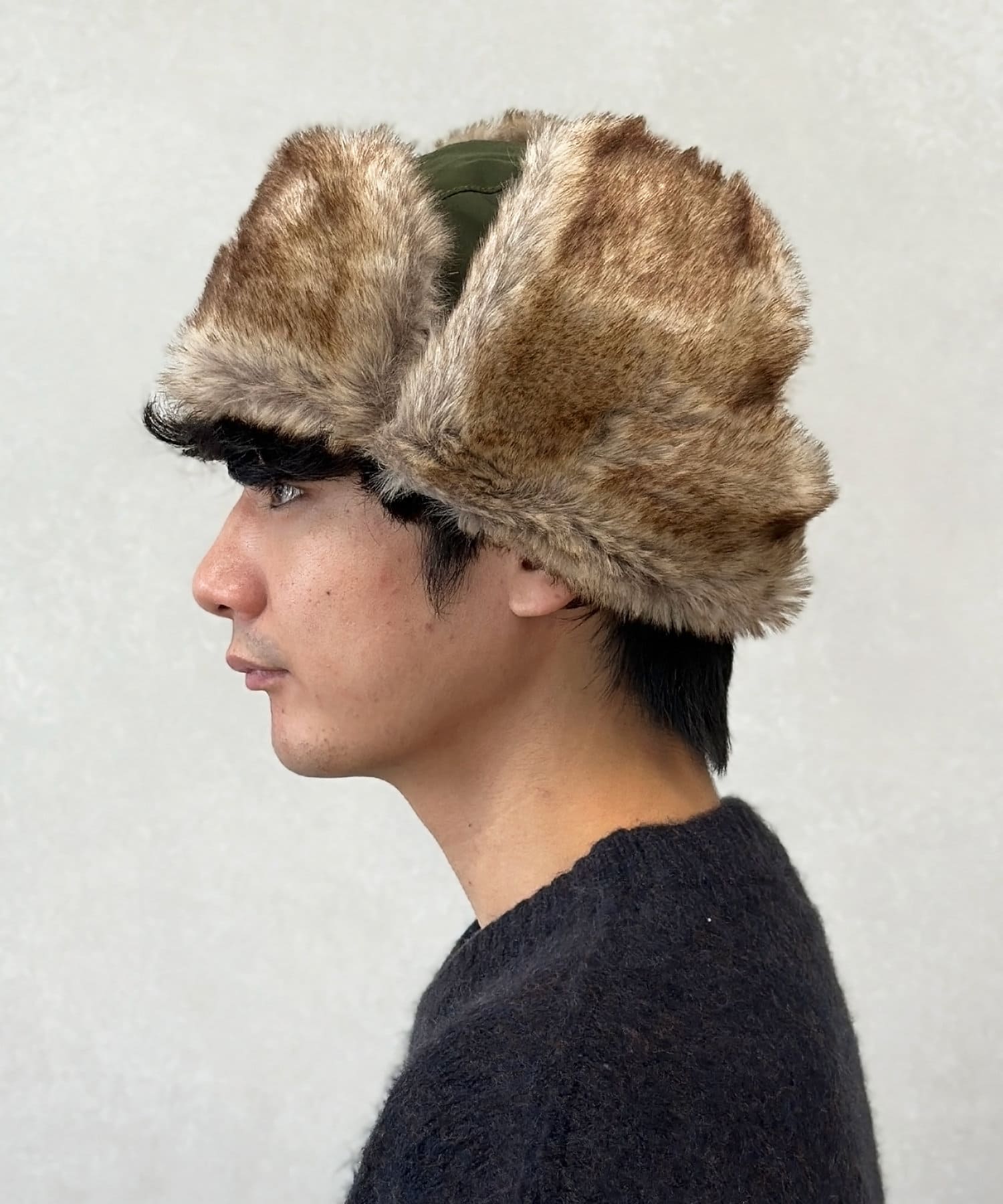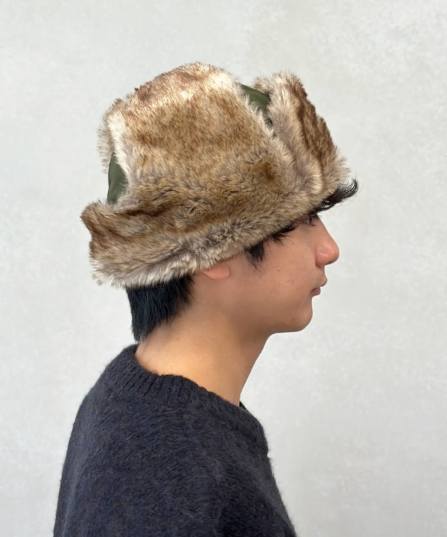 フライトキャップ特有の耳当て付きで、保温効果もばっちりです。