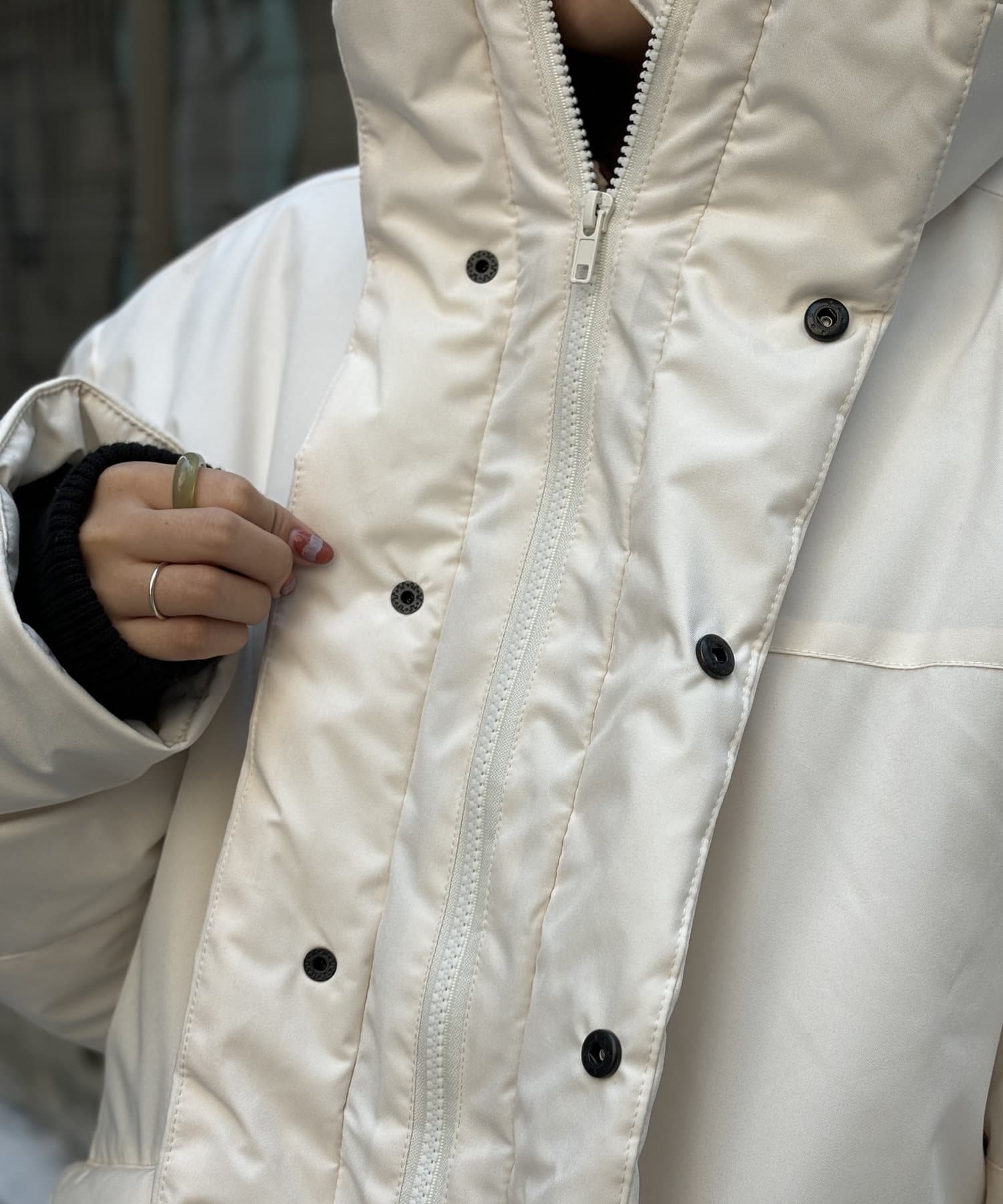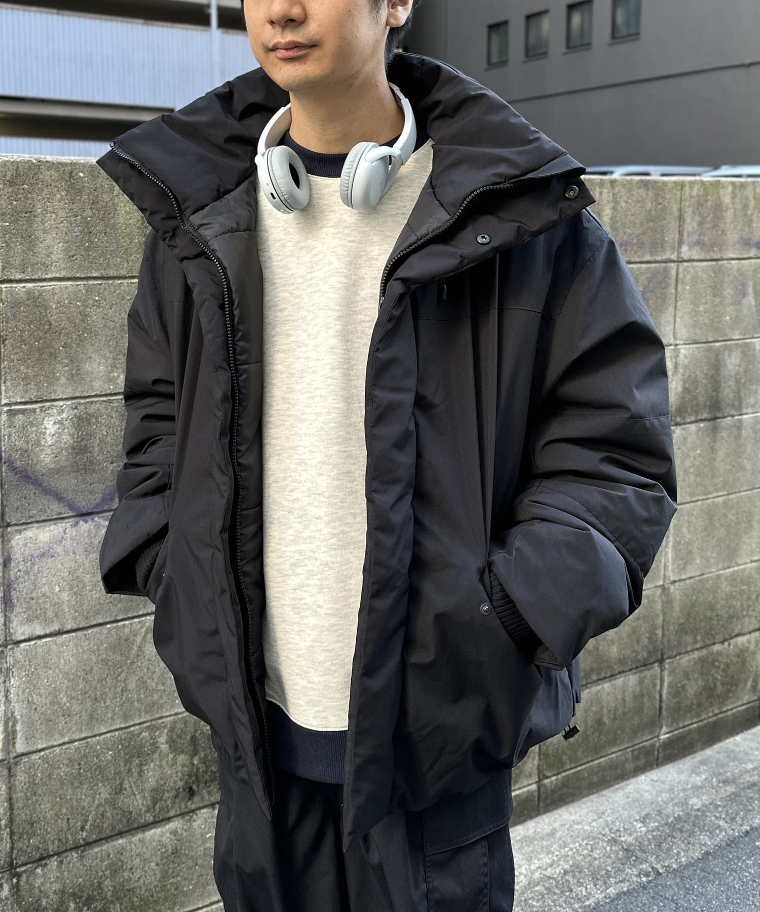 首元も深くスタンドネックなので、防寒にはもってこいのユニセックスで使えるアウターです。