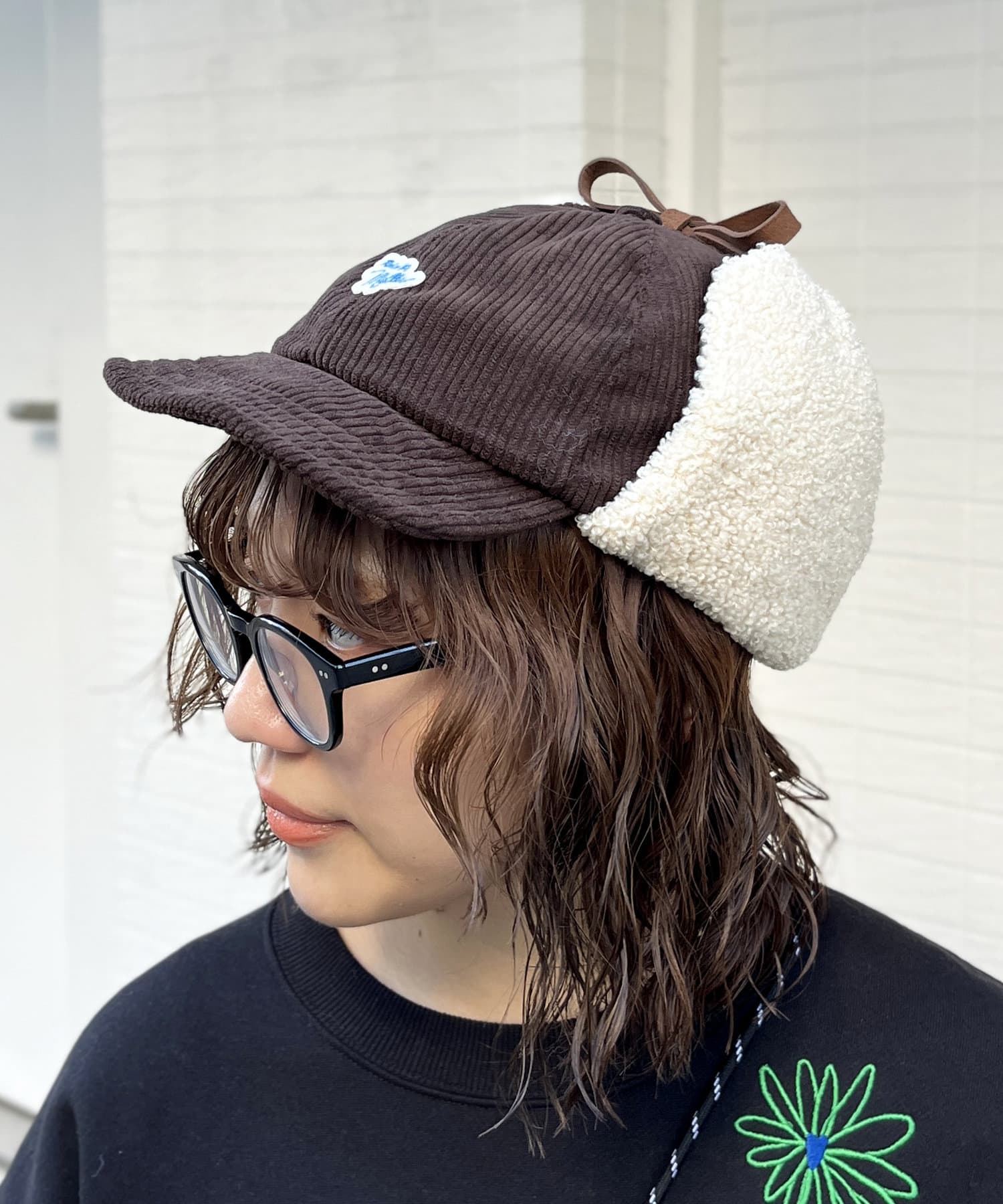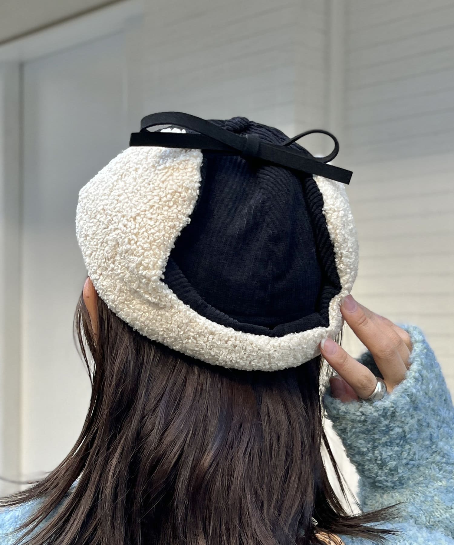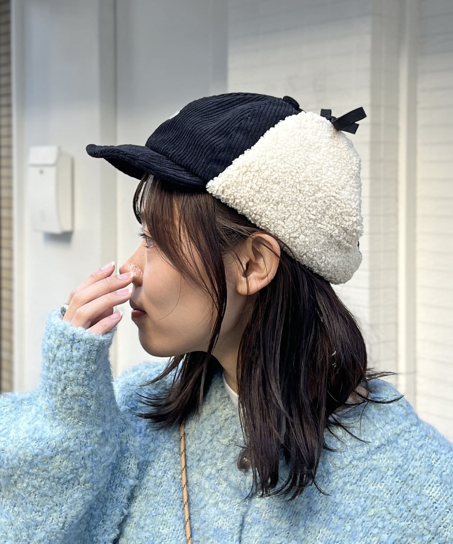 コーデュロイ×ボア素材がかわいらしく、被るだけでトレンドライクなスタイルが完成します。
