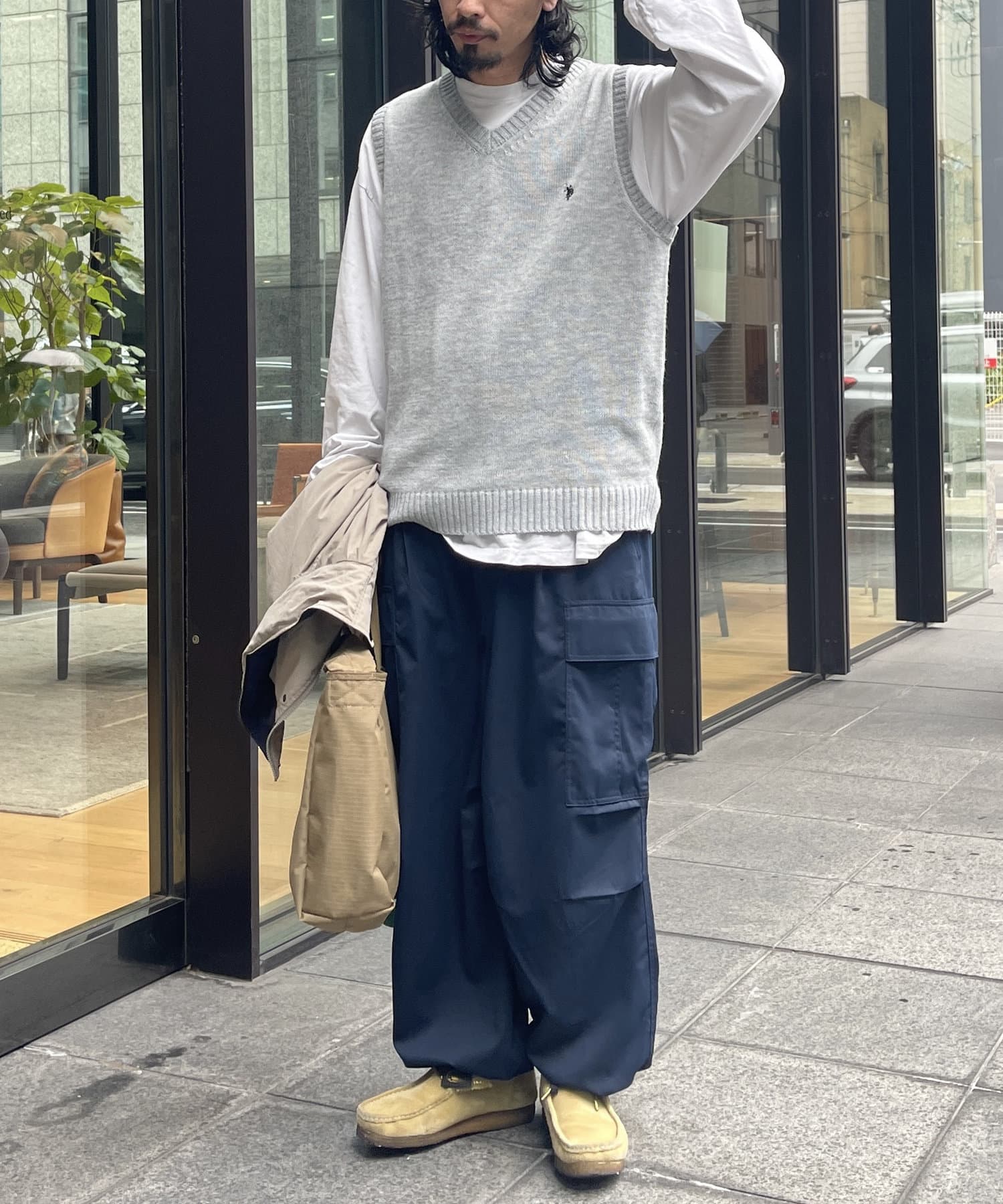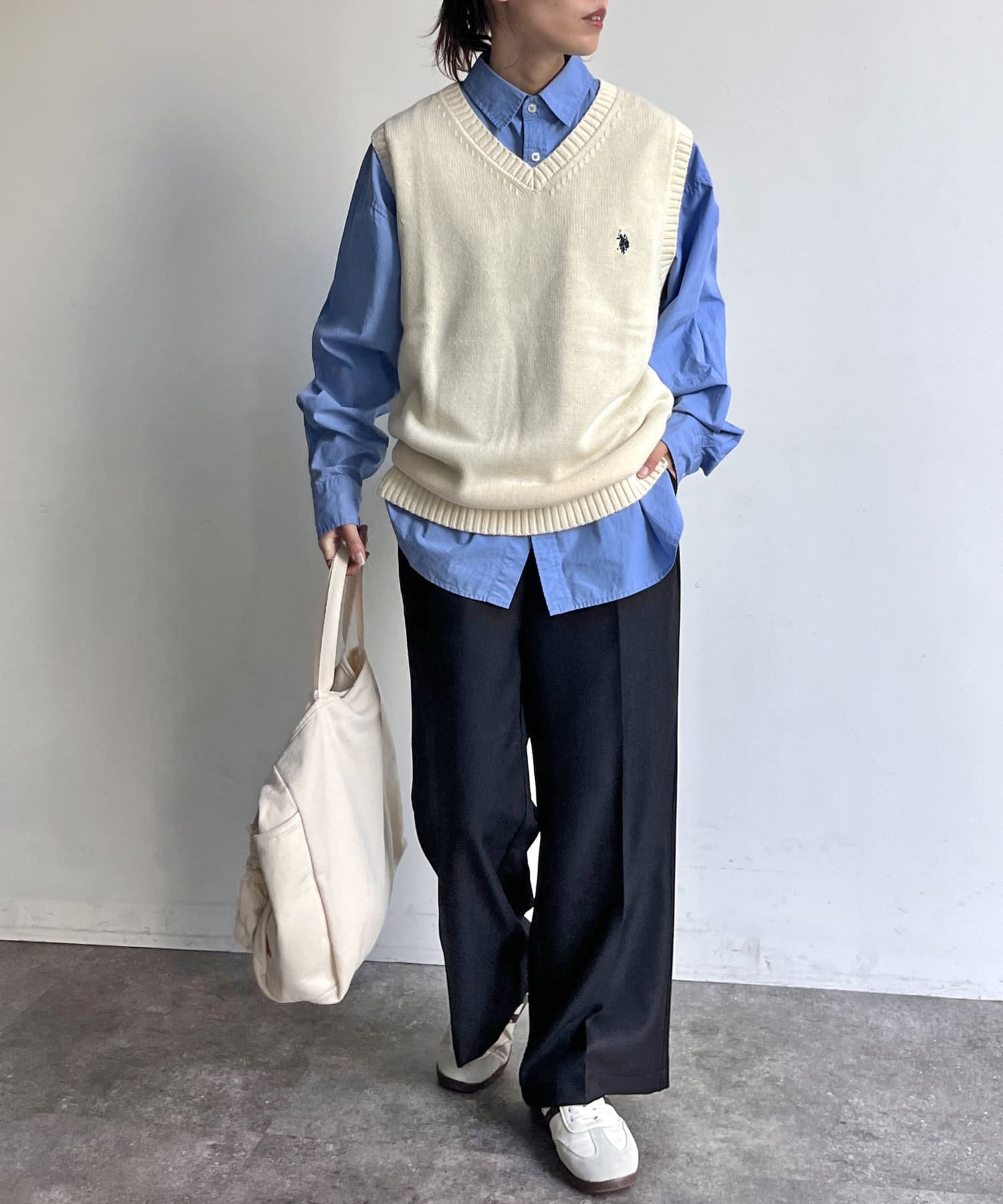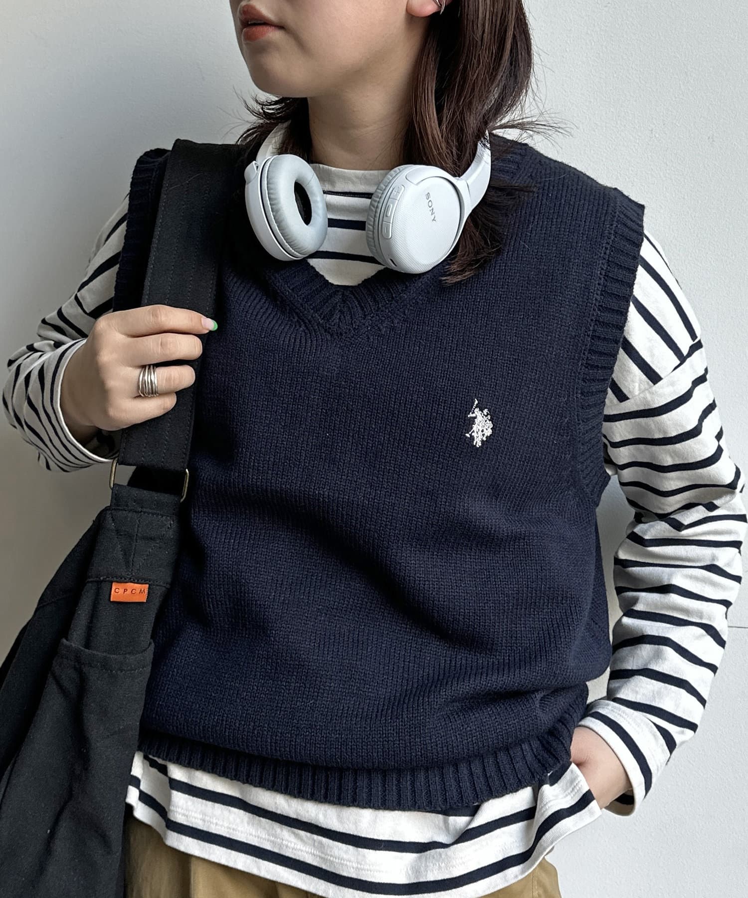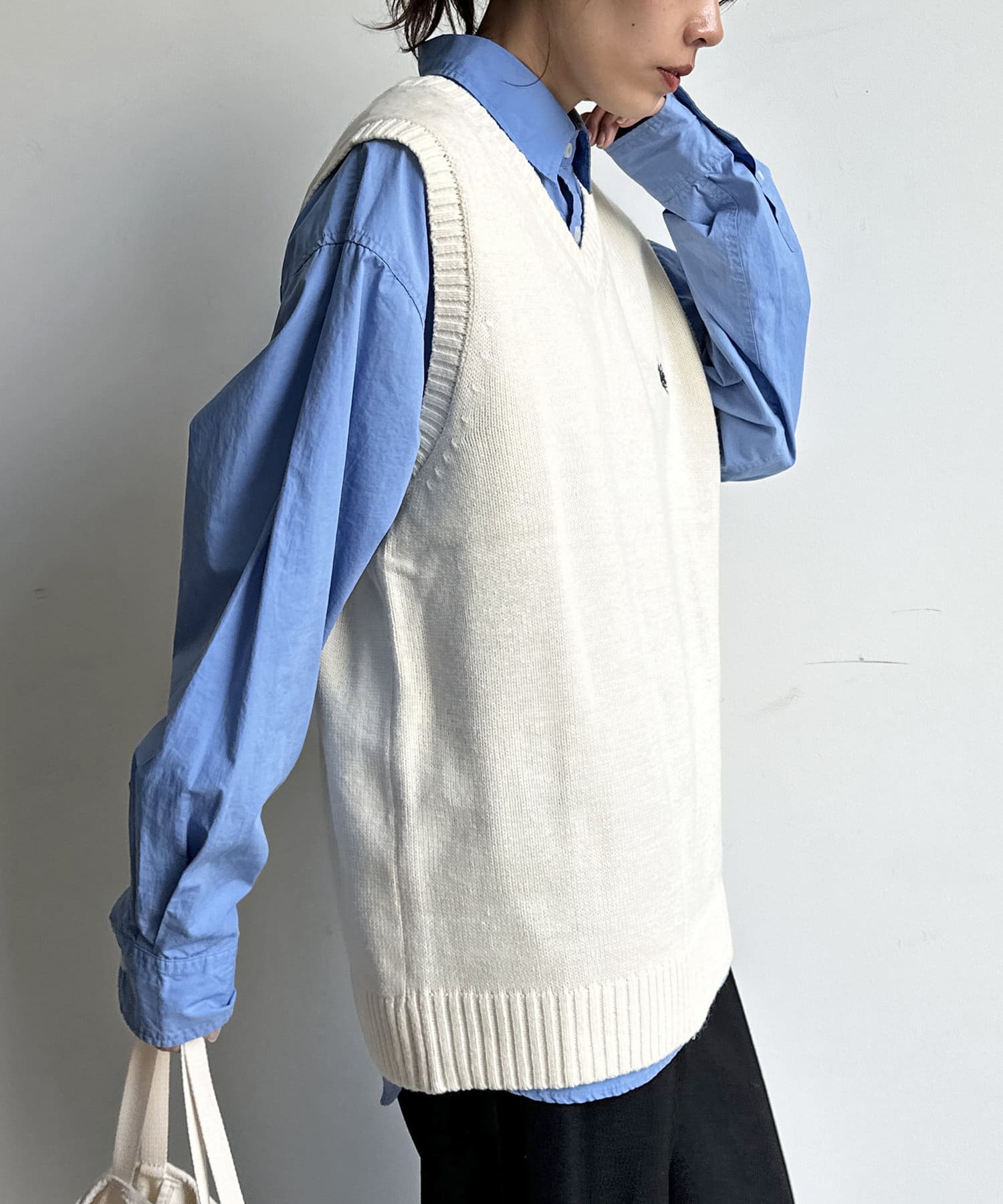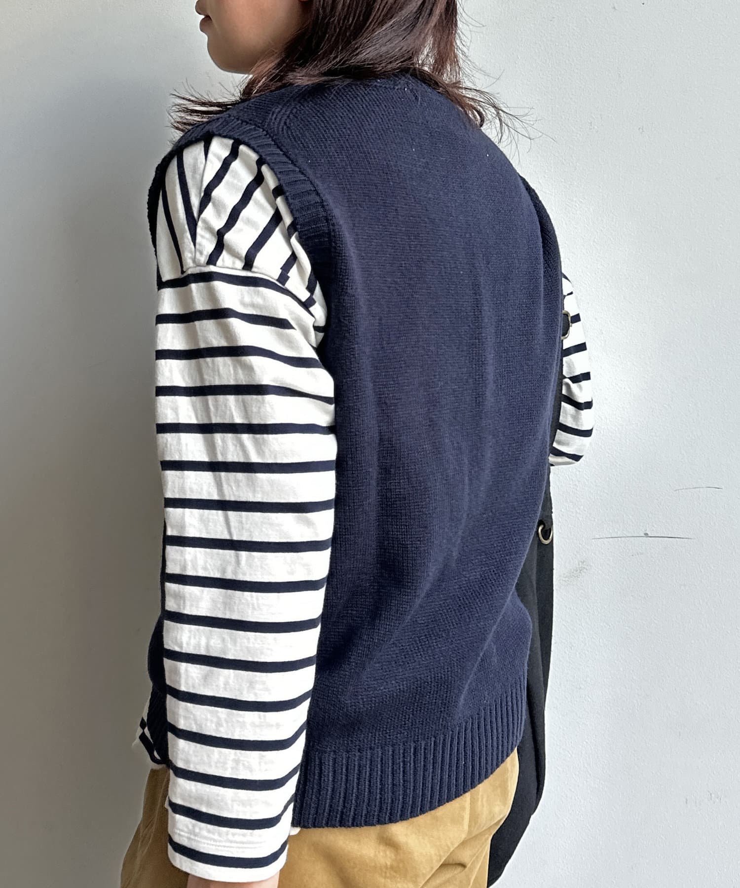 春のレイヤードスタイルに欠かせない、ベーシックなニットベスト