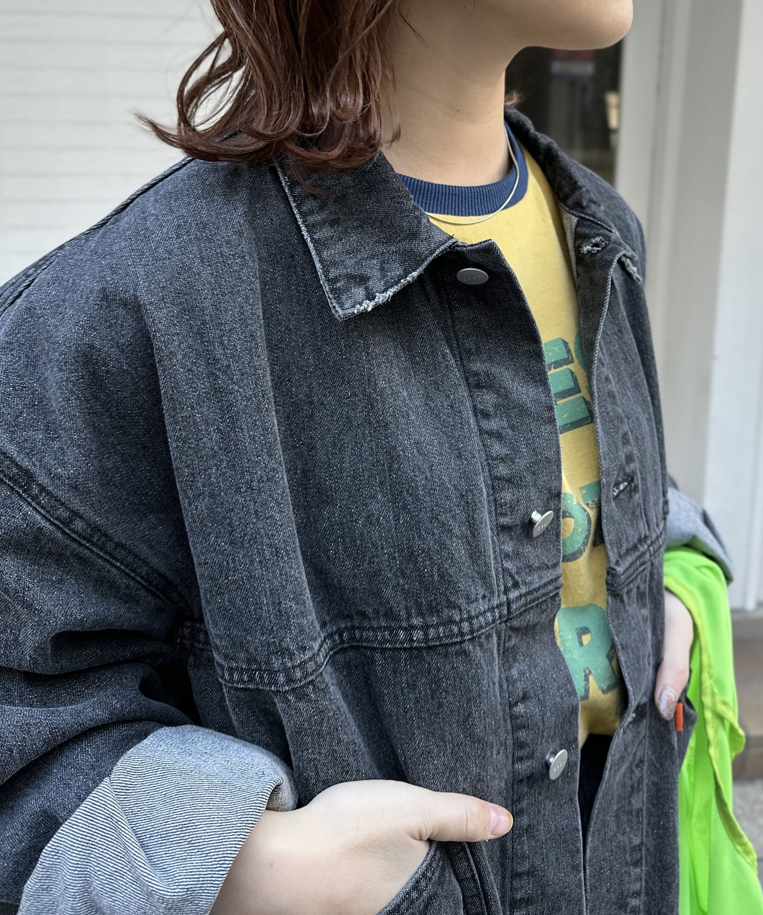色味は写真の通りで濃いめで可愛い!デニムジャケットだけど固すぎずなので着やすいです:)