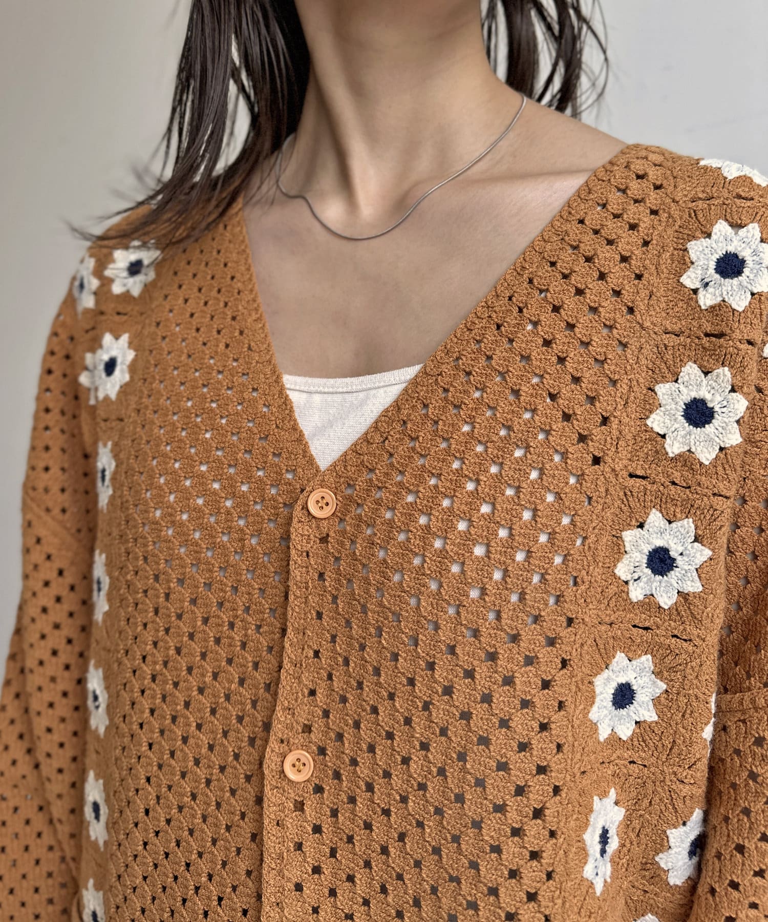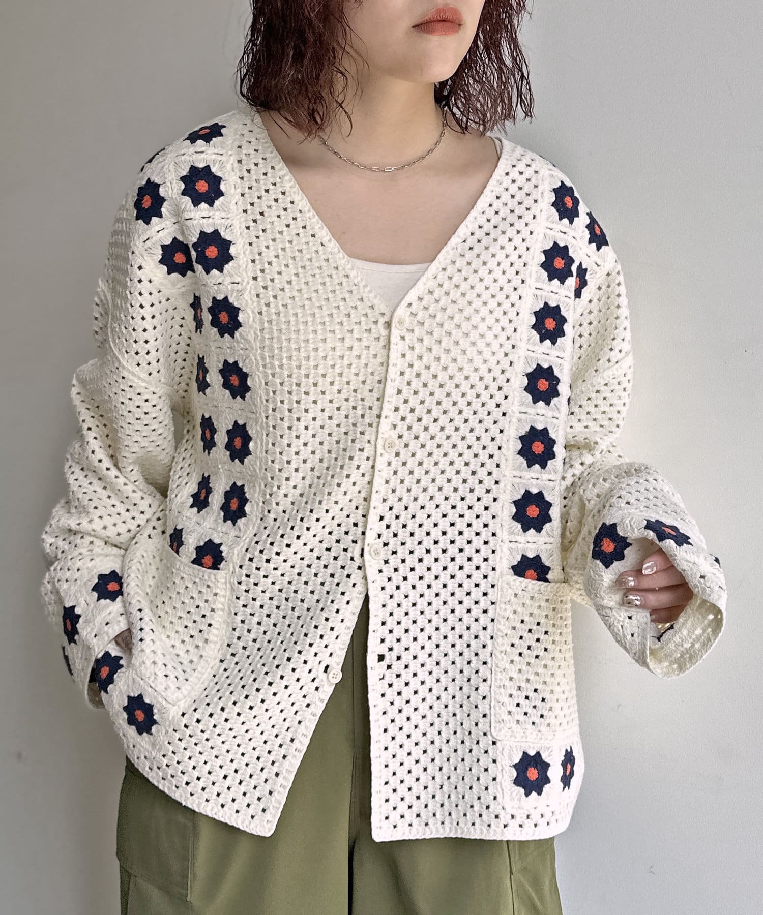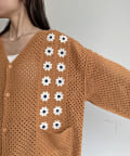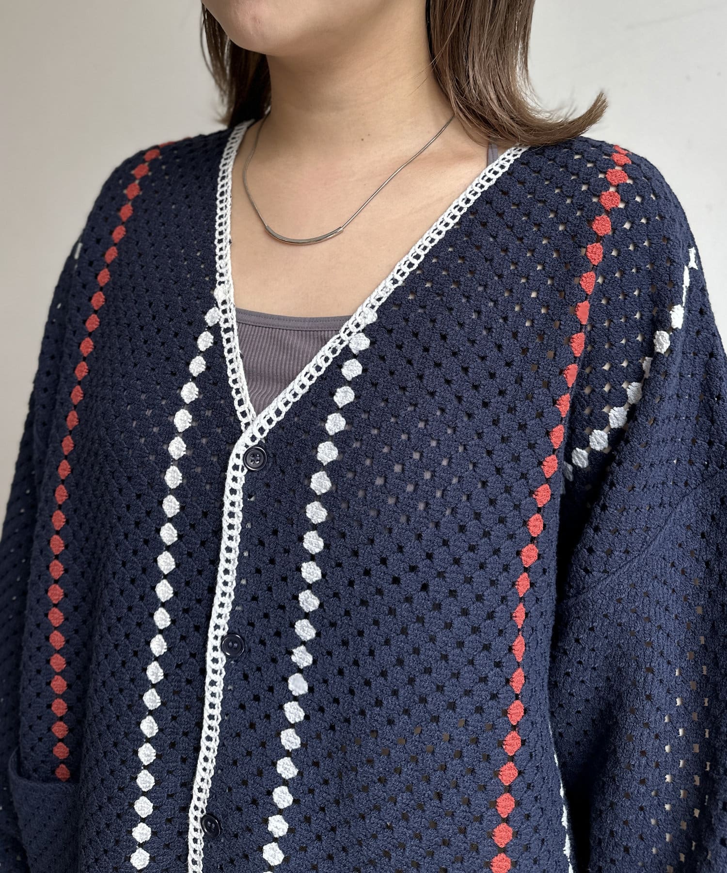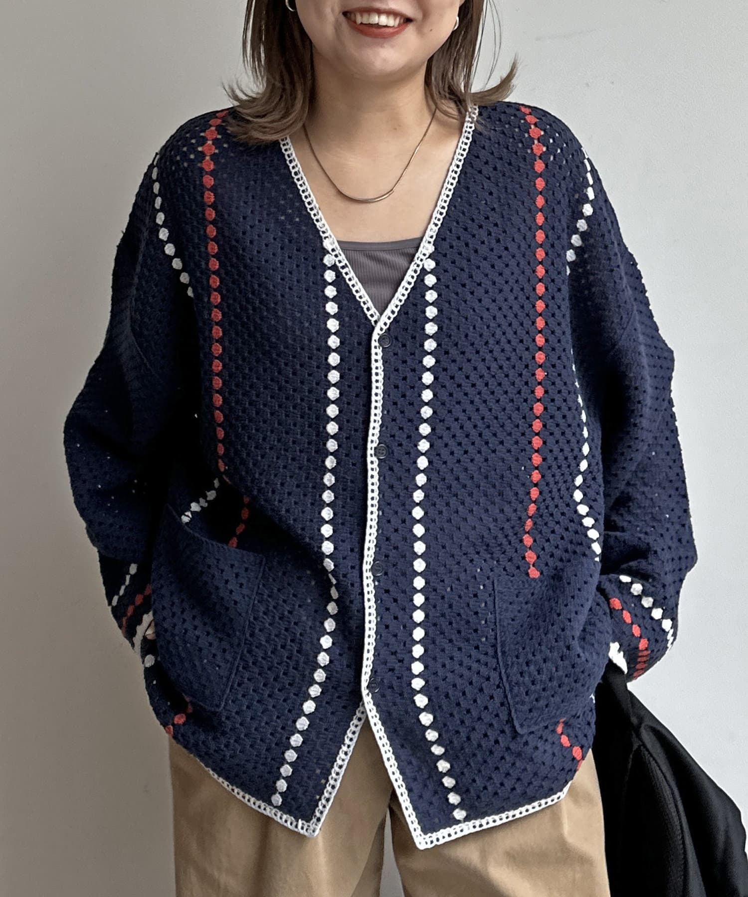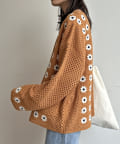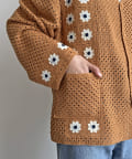 クロシェ編みのニットカーディガン