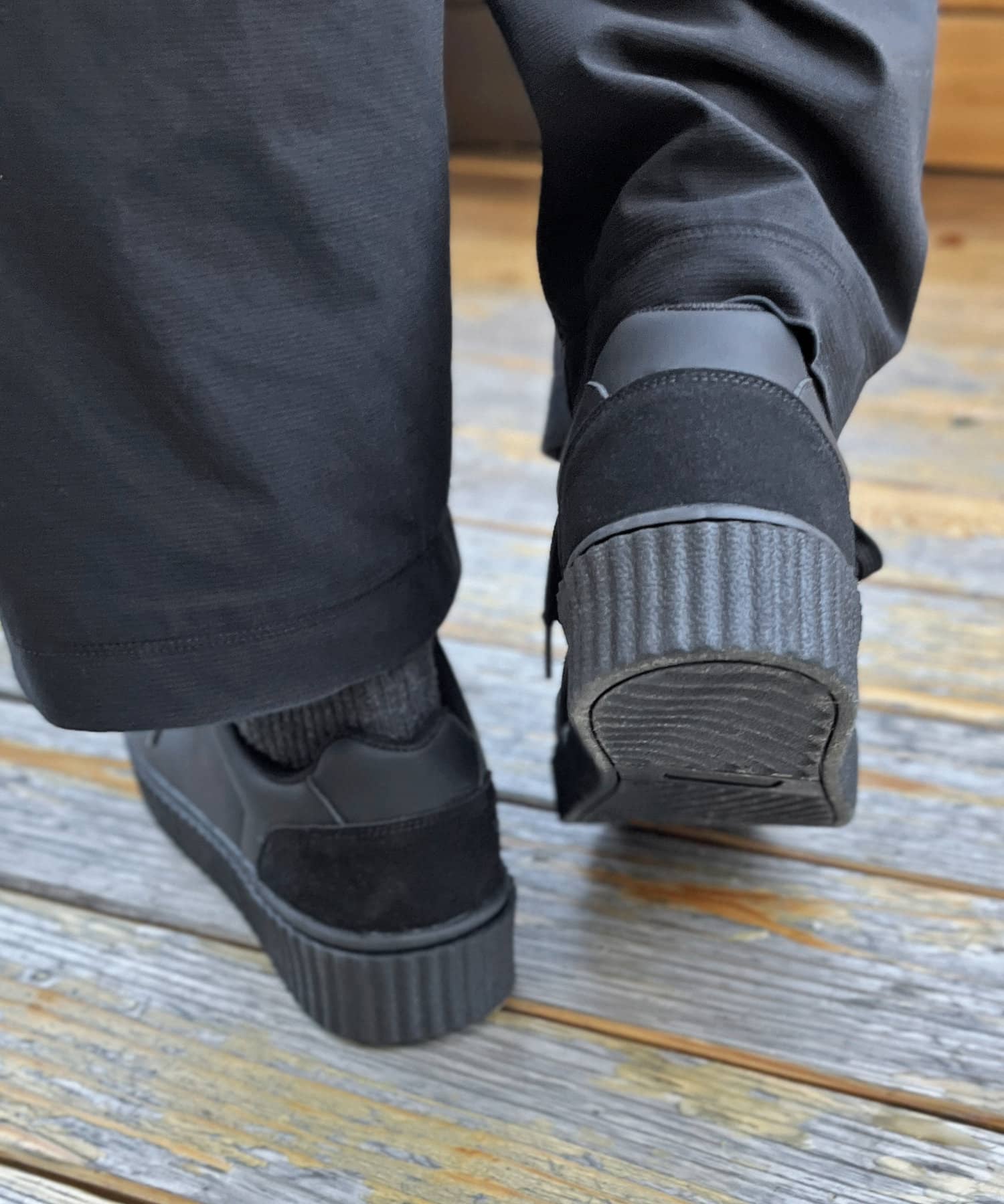 ・厚底でありながら落ち着いたデザインと高級感のあるブランドロゴで大人っぽく履きこなせる