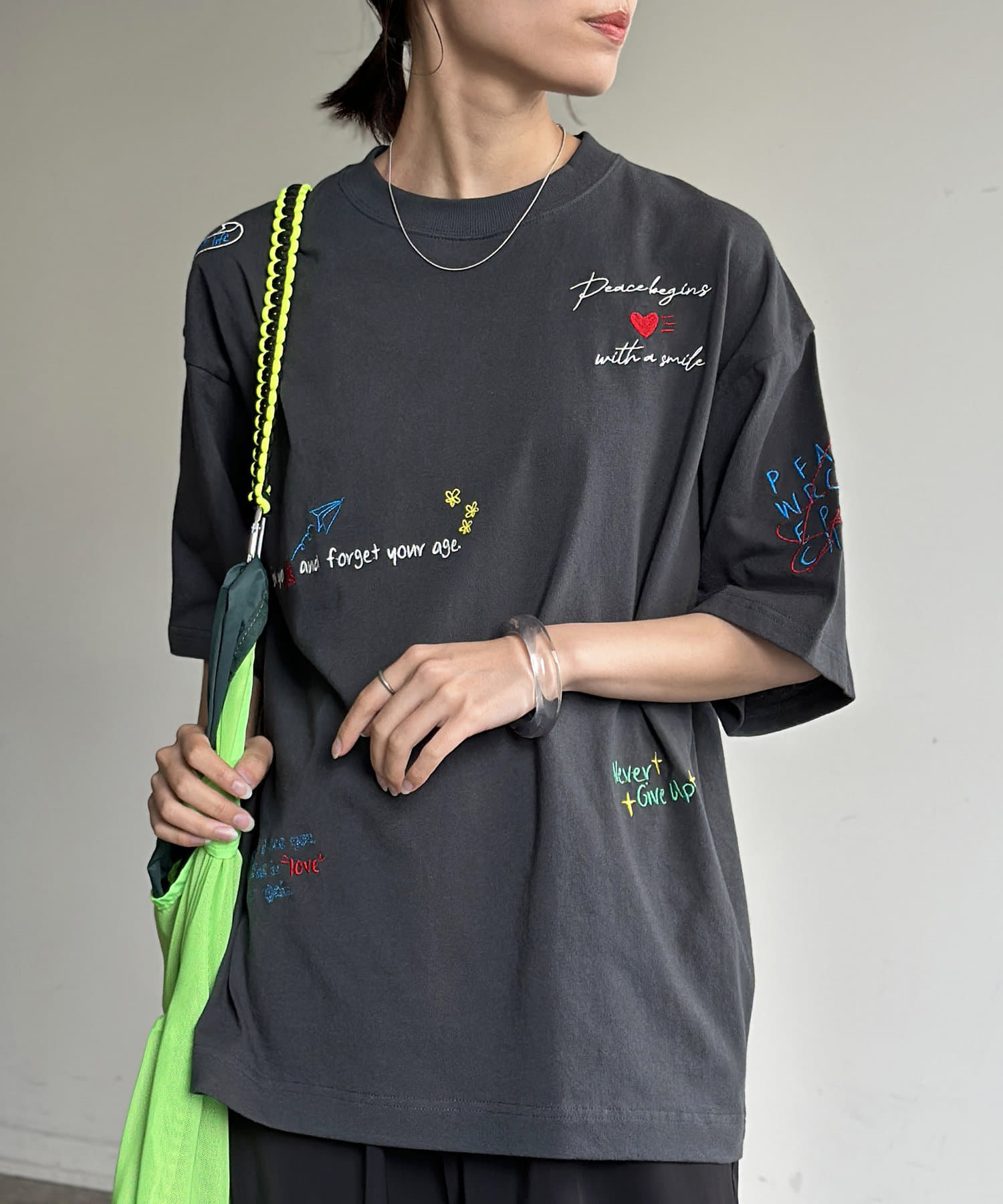 ・360度散りばめられた遊びゴコロある落書き刺繡がカワイイ♡