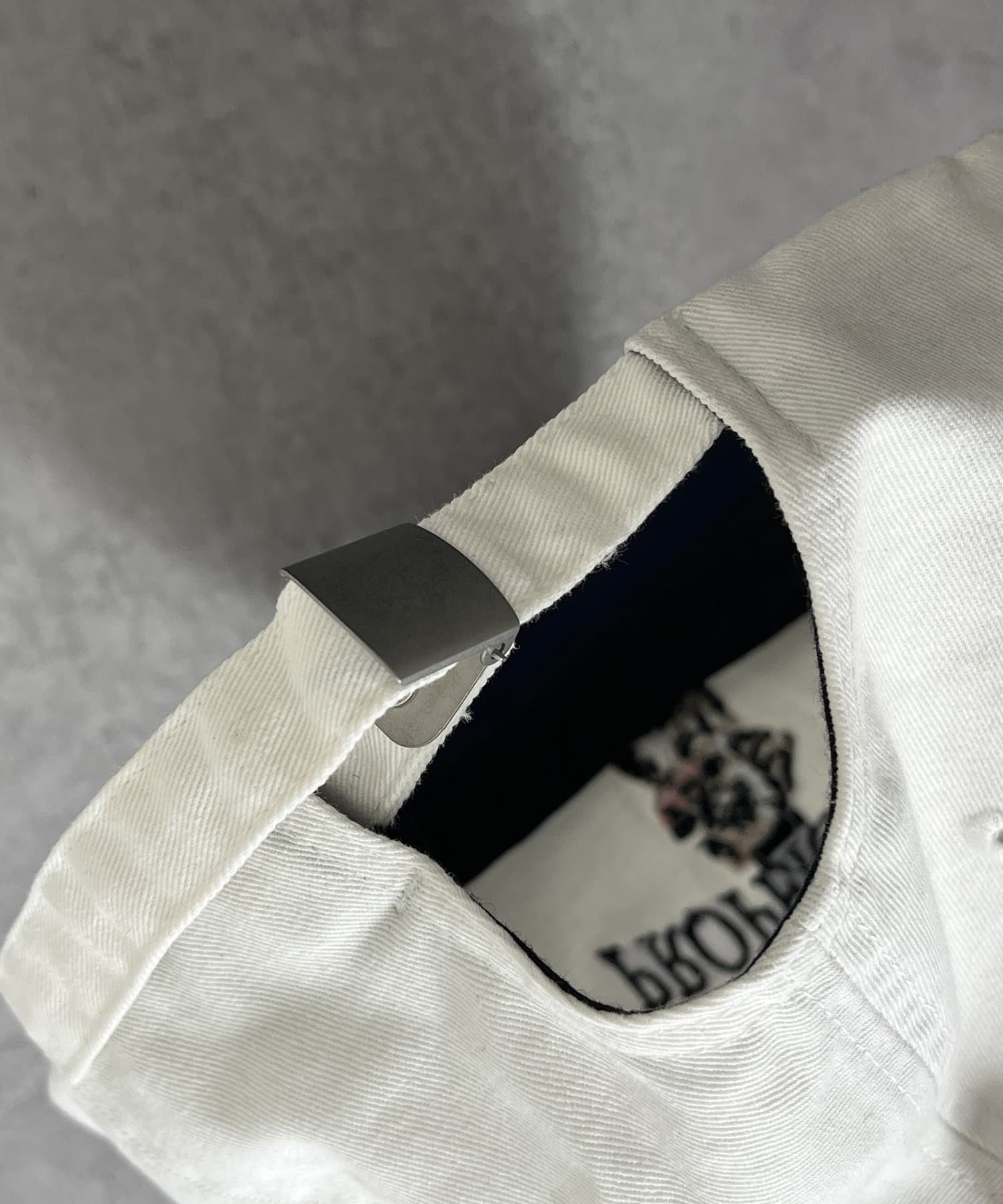 DOGイラストの刺繡を施したインパクトあるキャップ