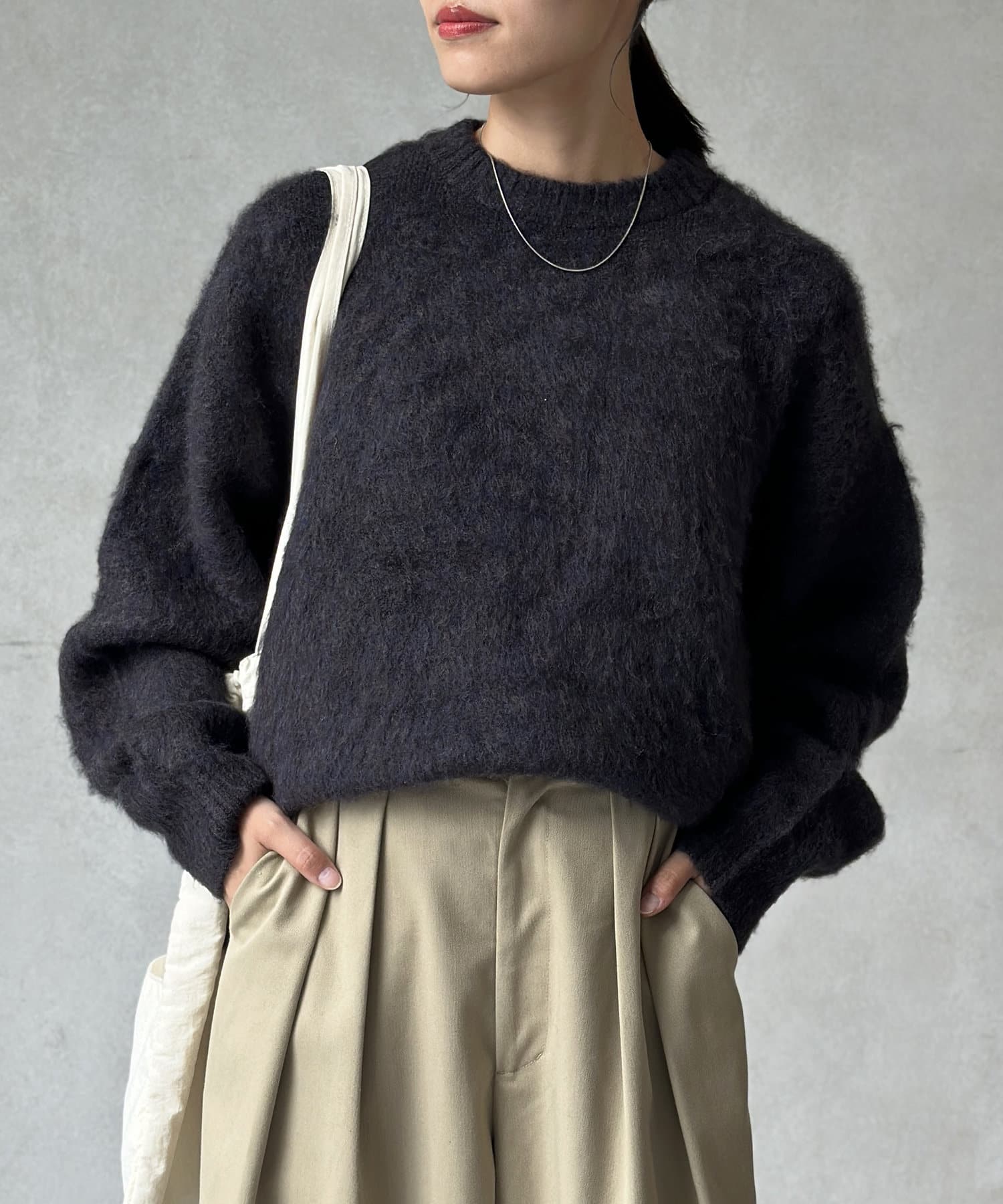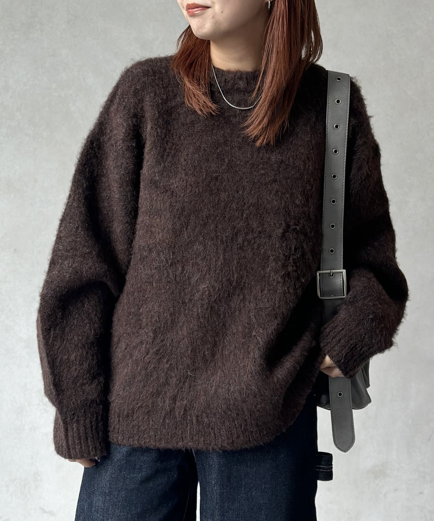 高級感あるシンプルなデザインで秋冬着回し抜群のモヘアライクニット