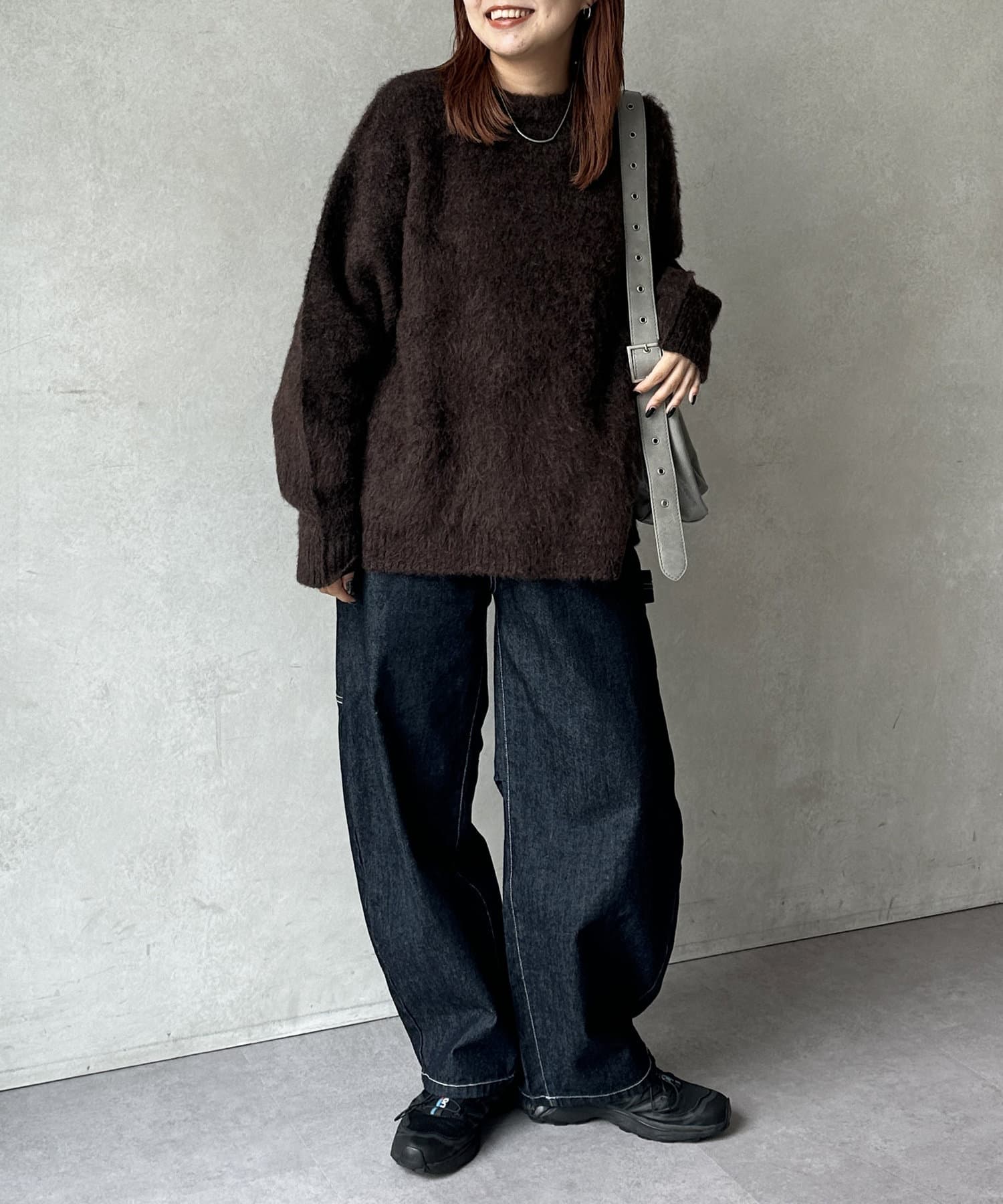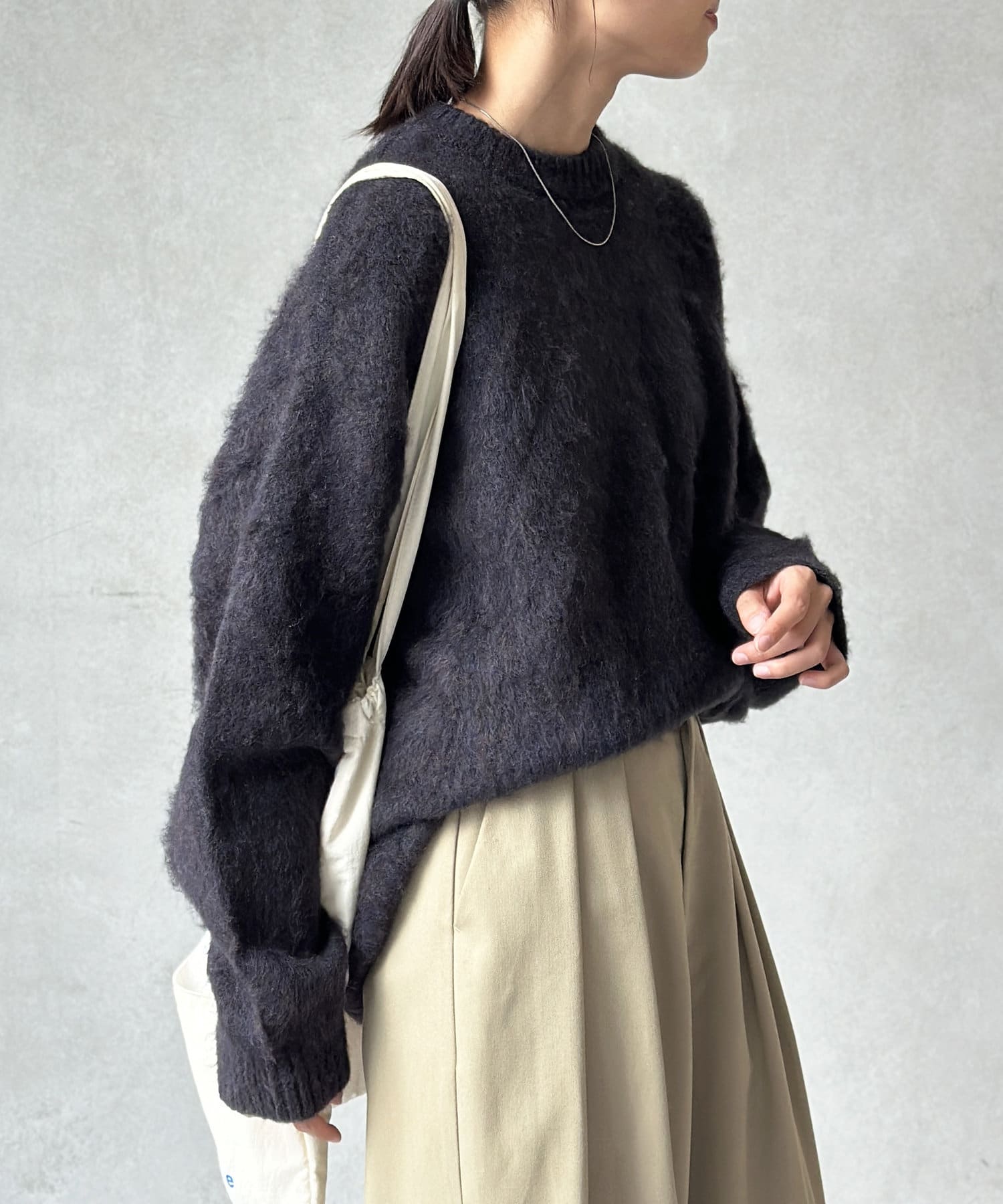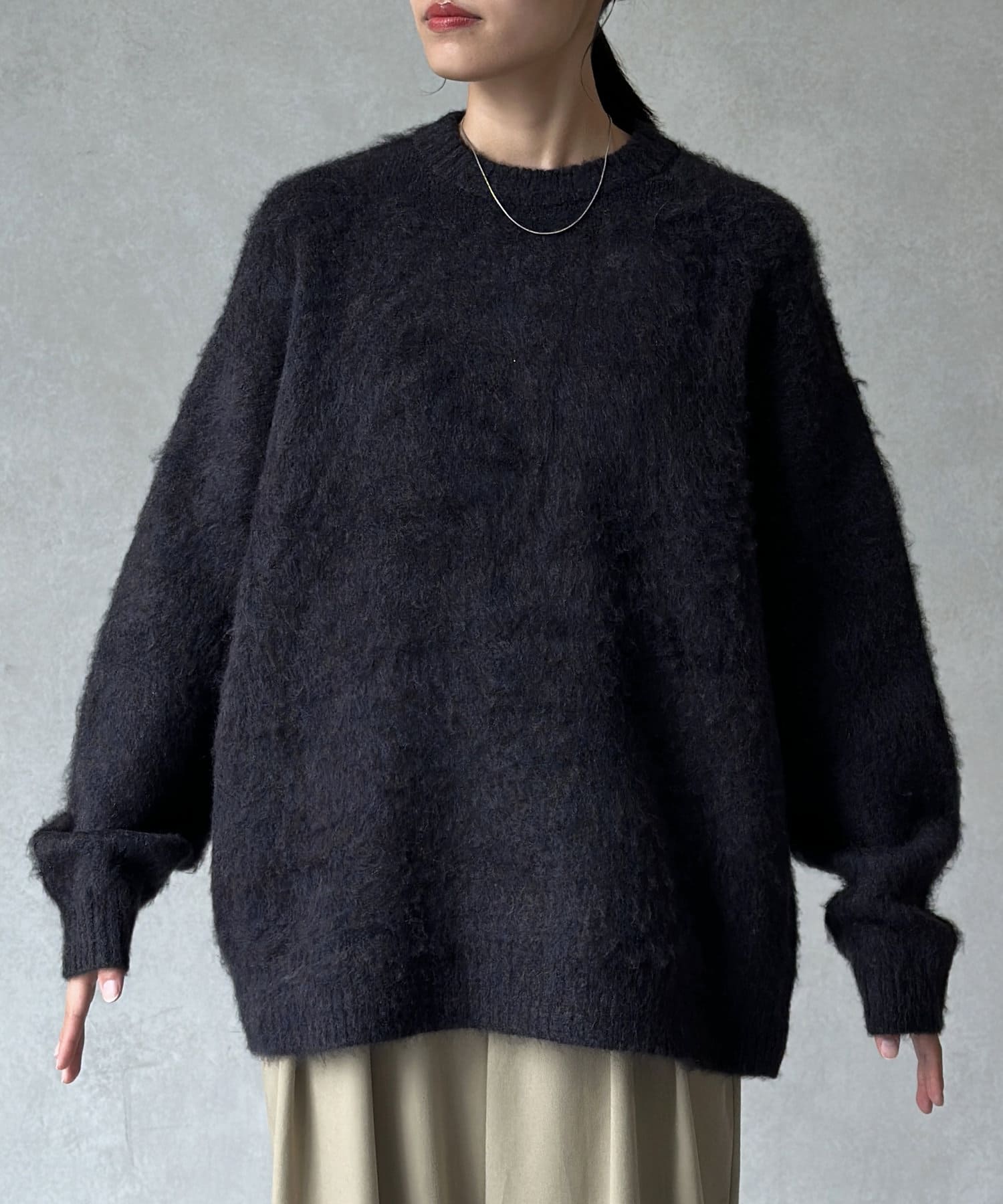 ・モヘアのようなふわっとした生地でゆったりとしたトレンドライクなシルエットに