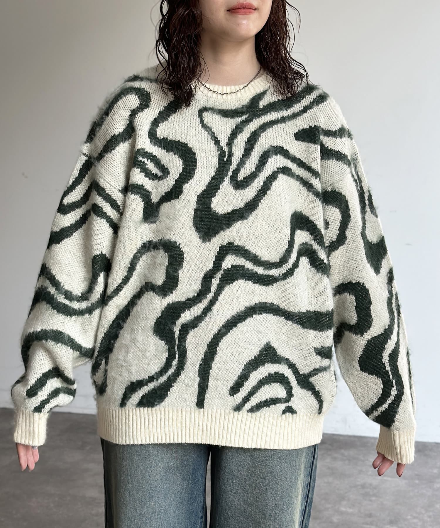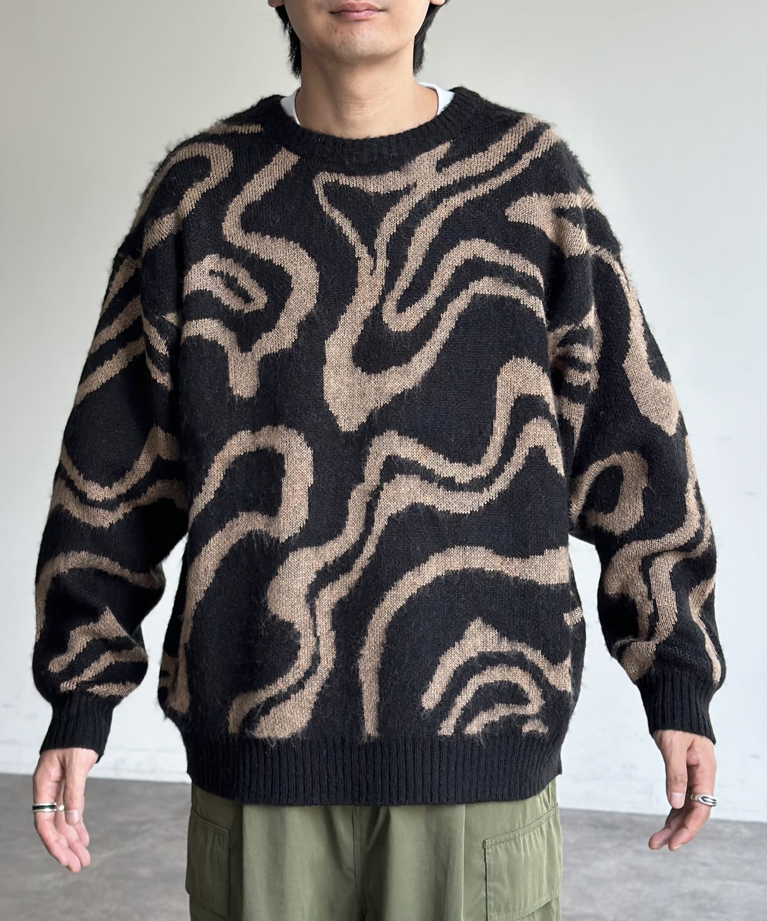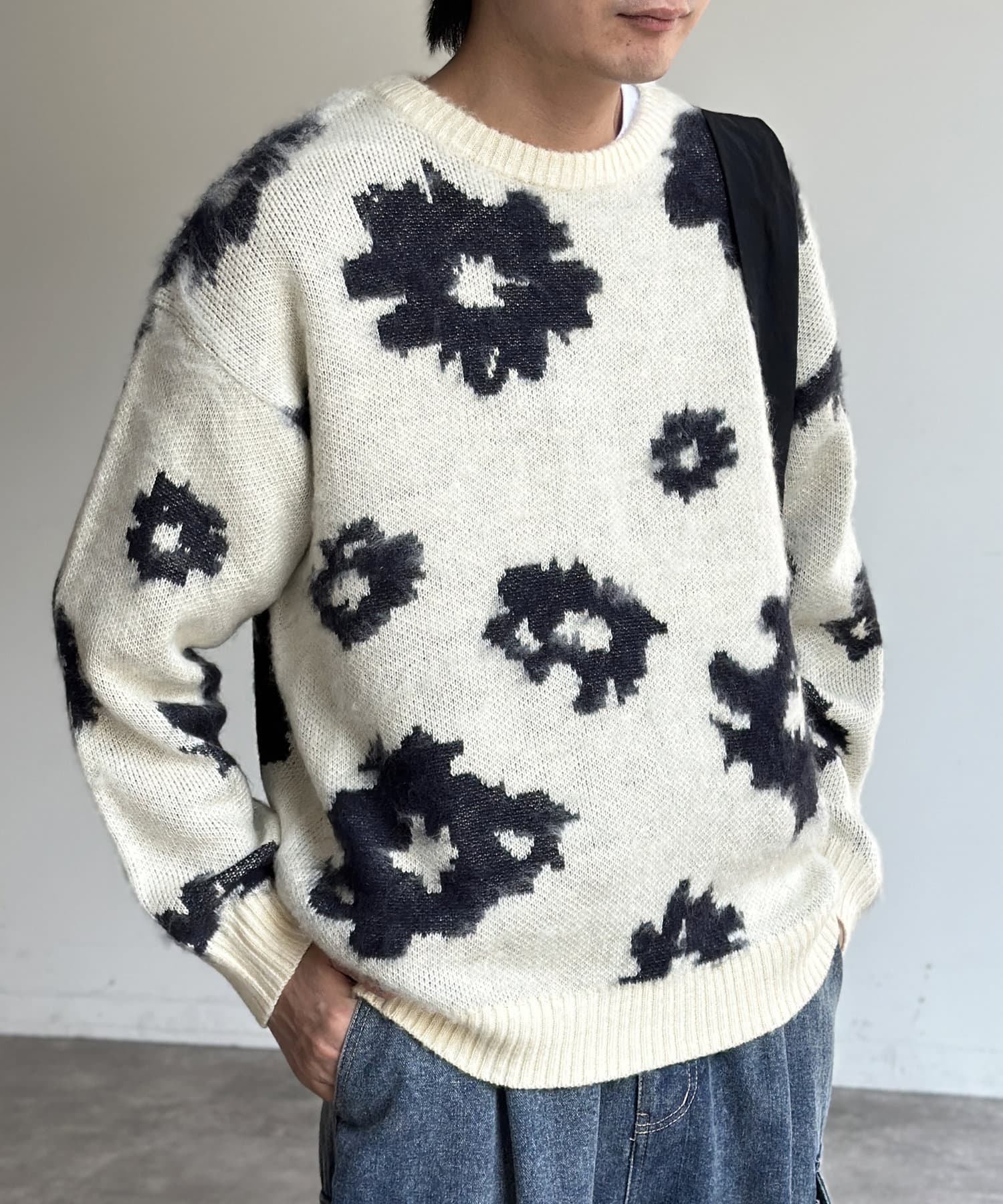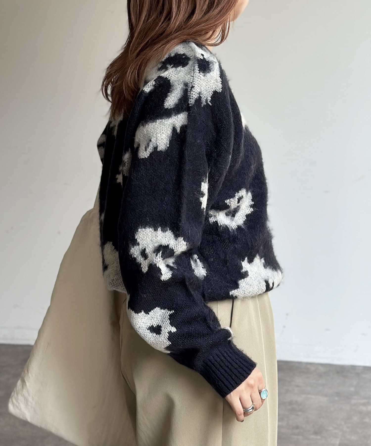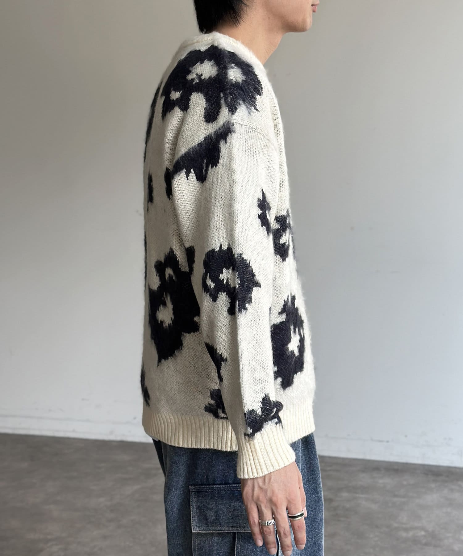 シャギー総柄ジャガードニット