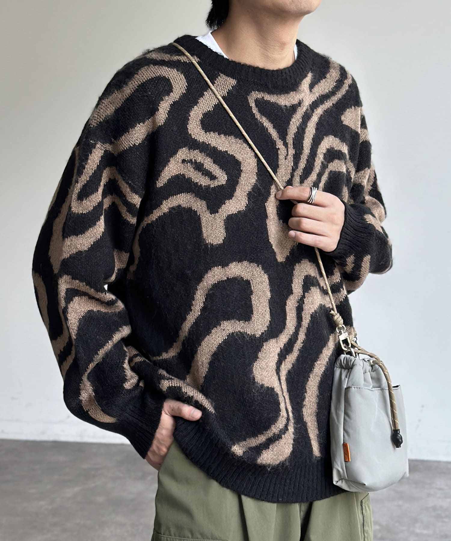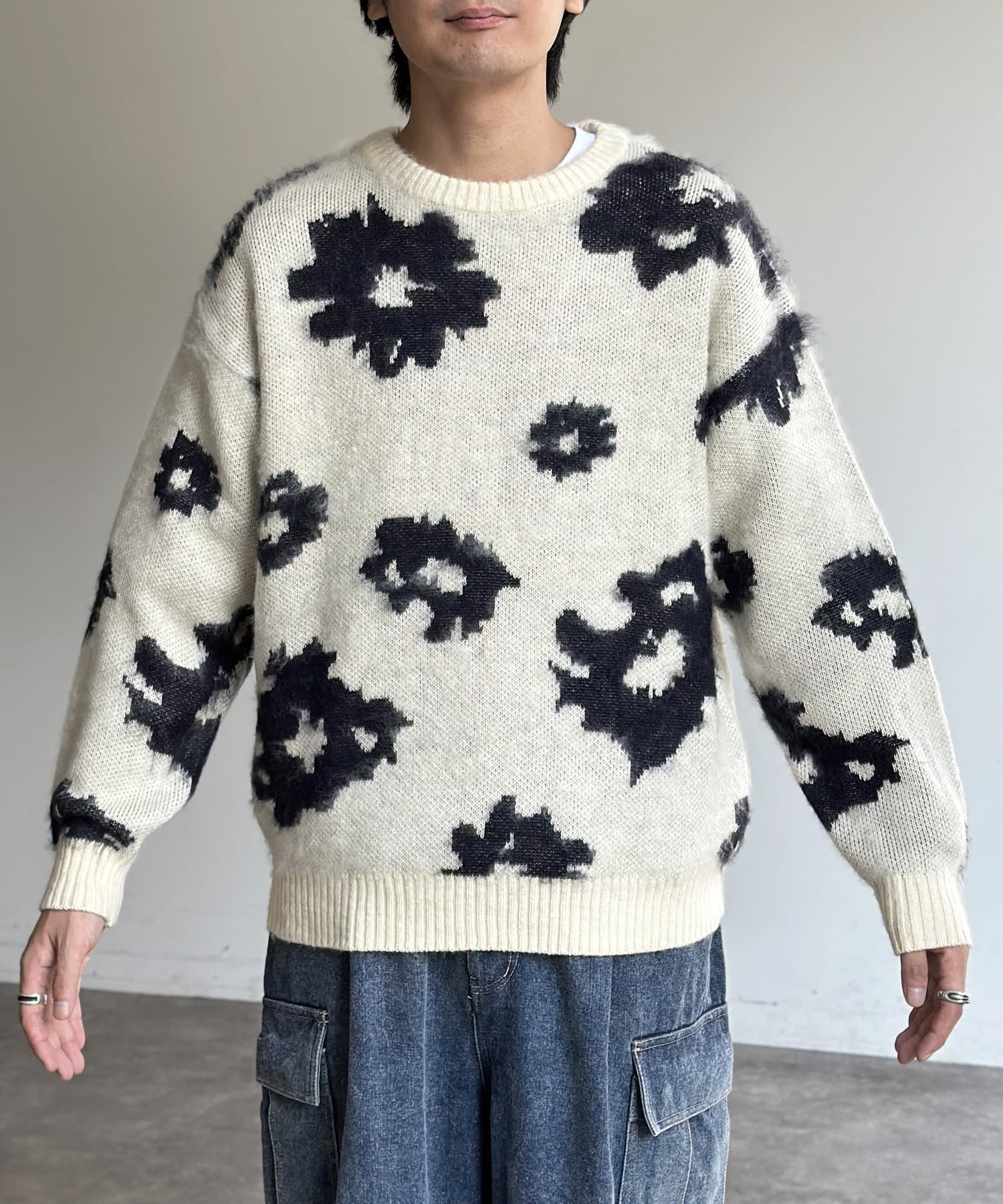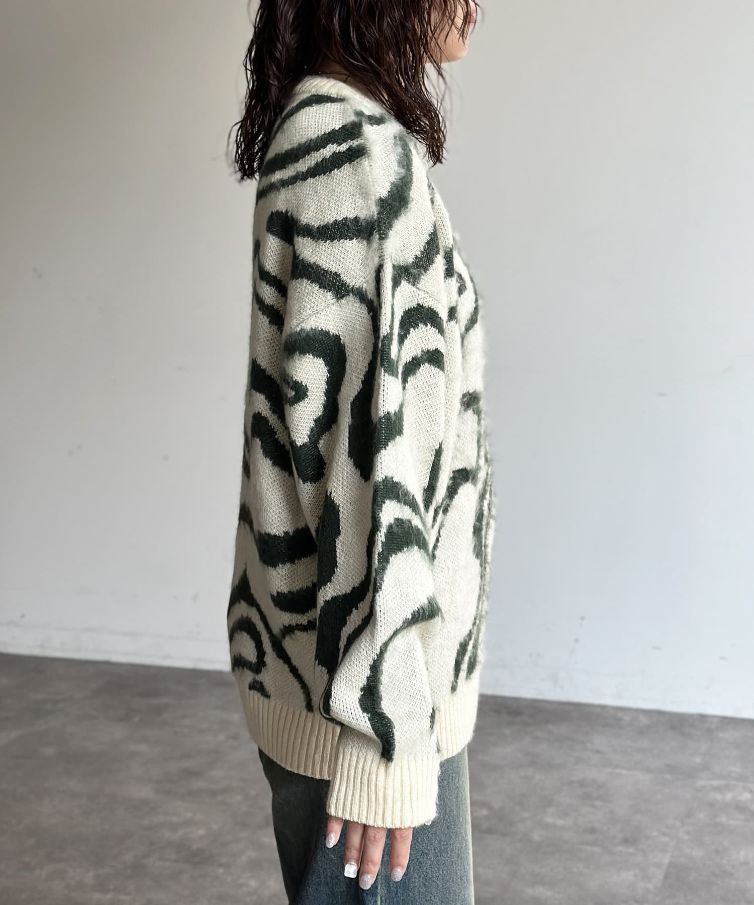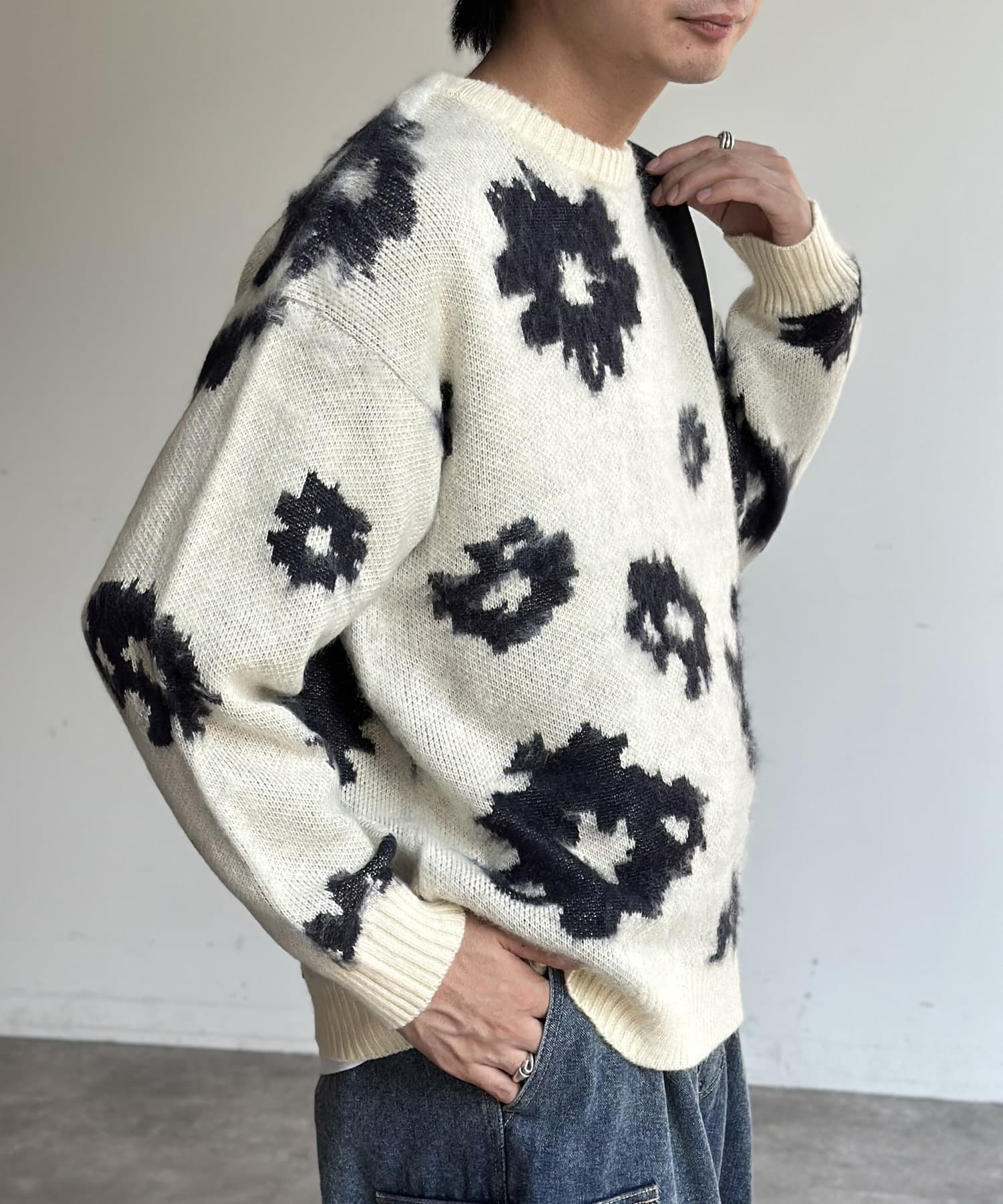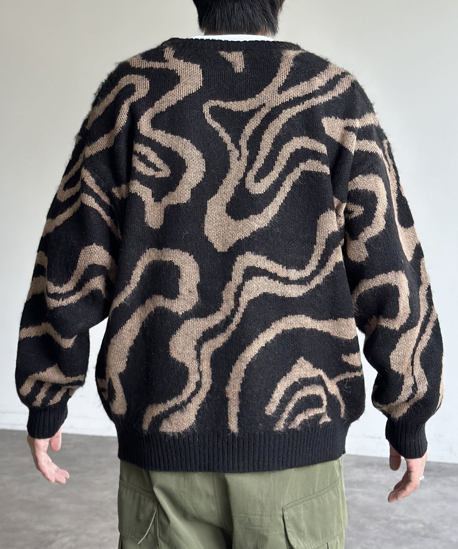 シャギー総柄ジャガードニット