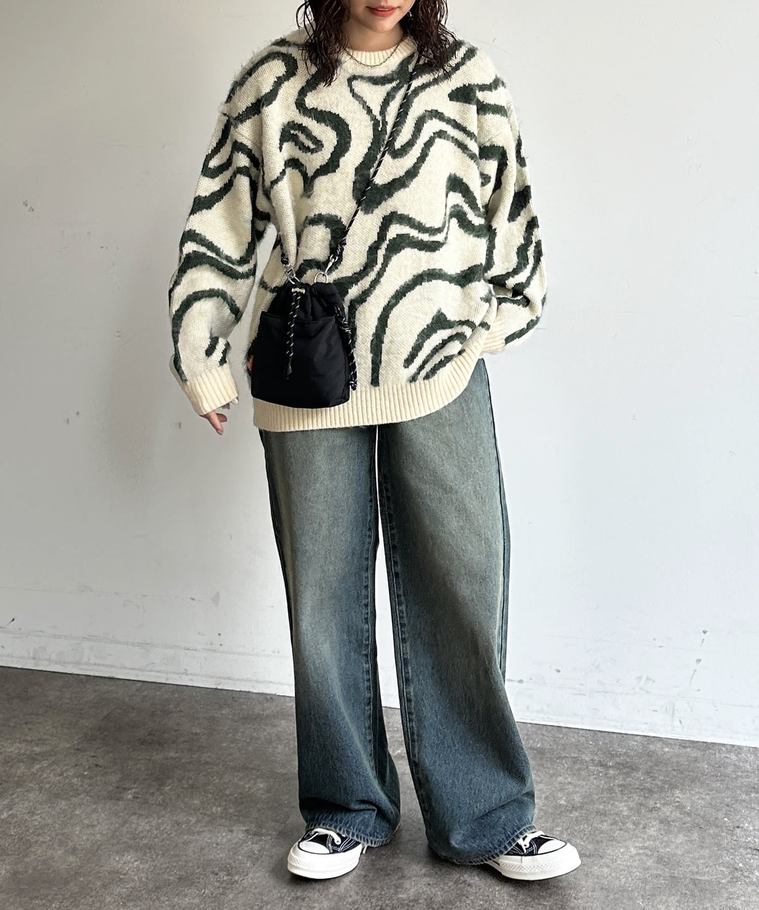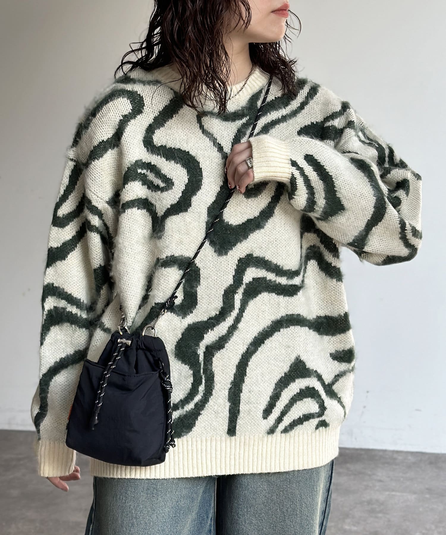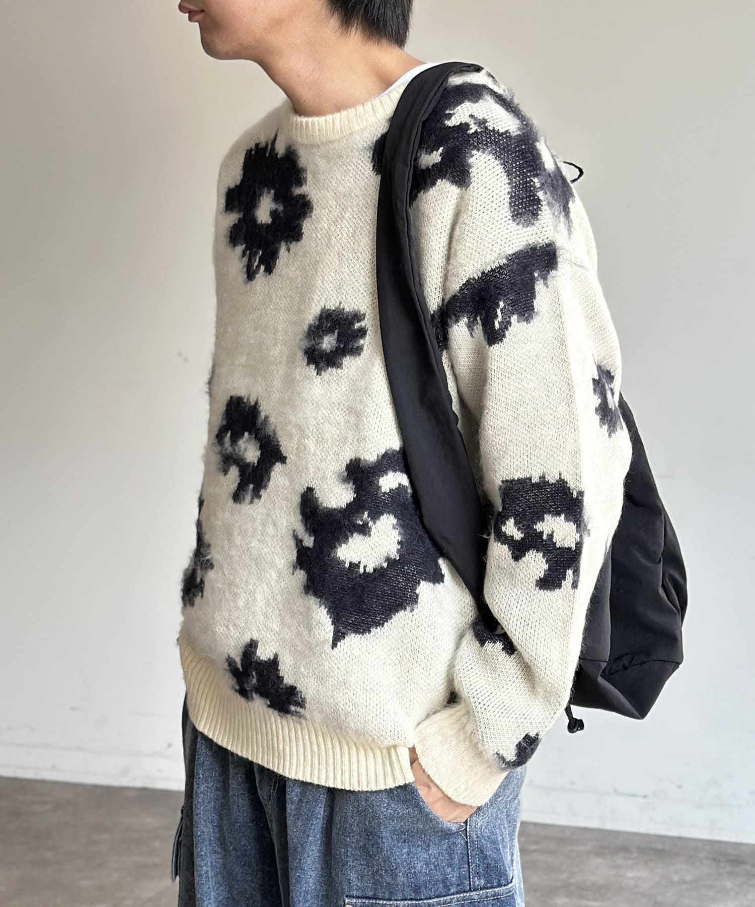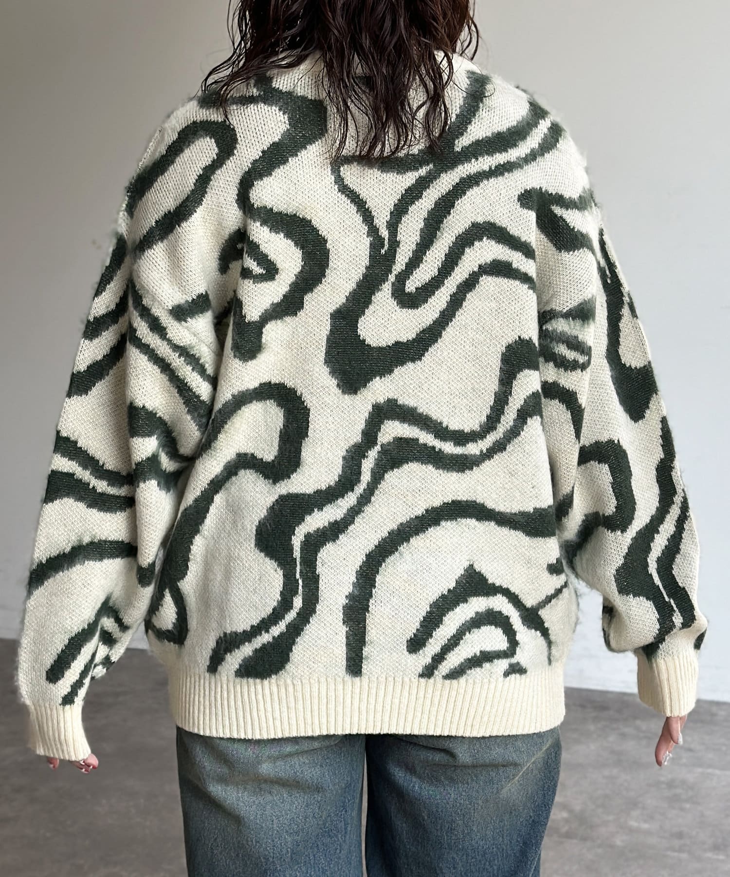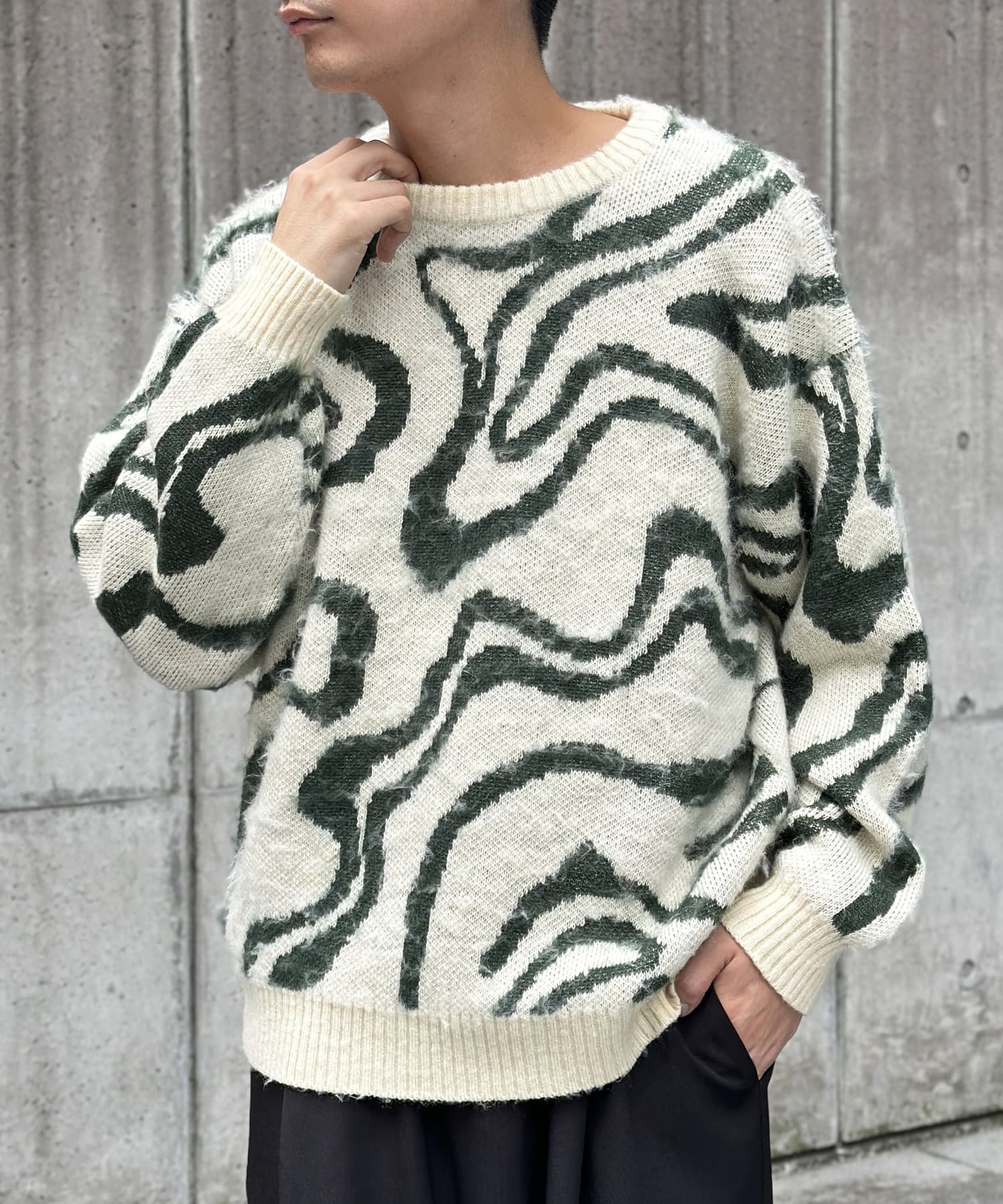 シャギー総柄ジャガードニット