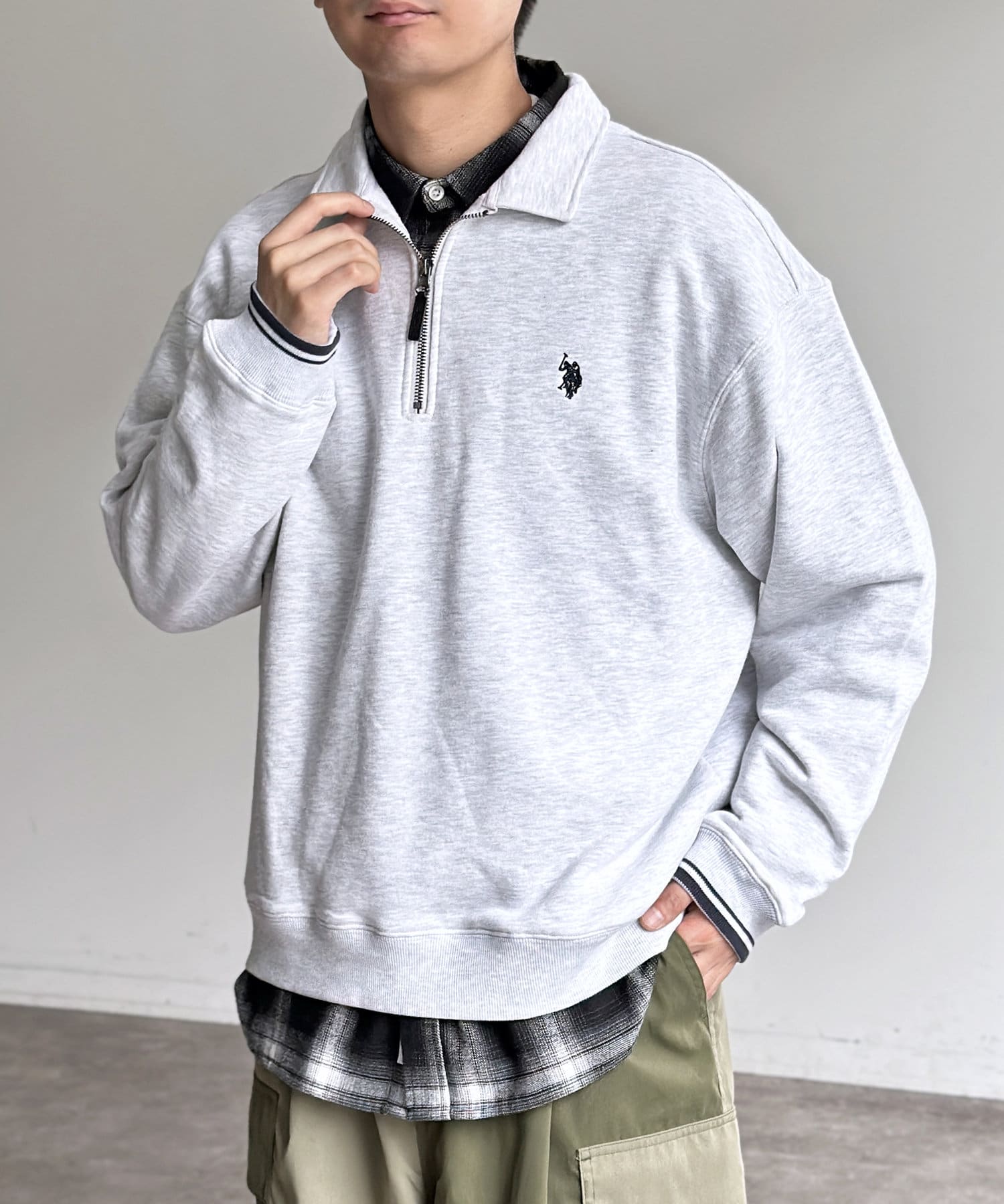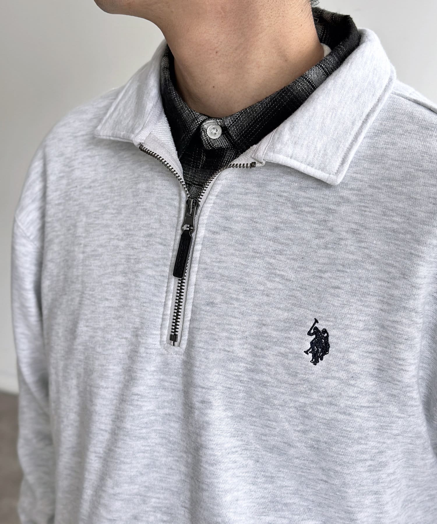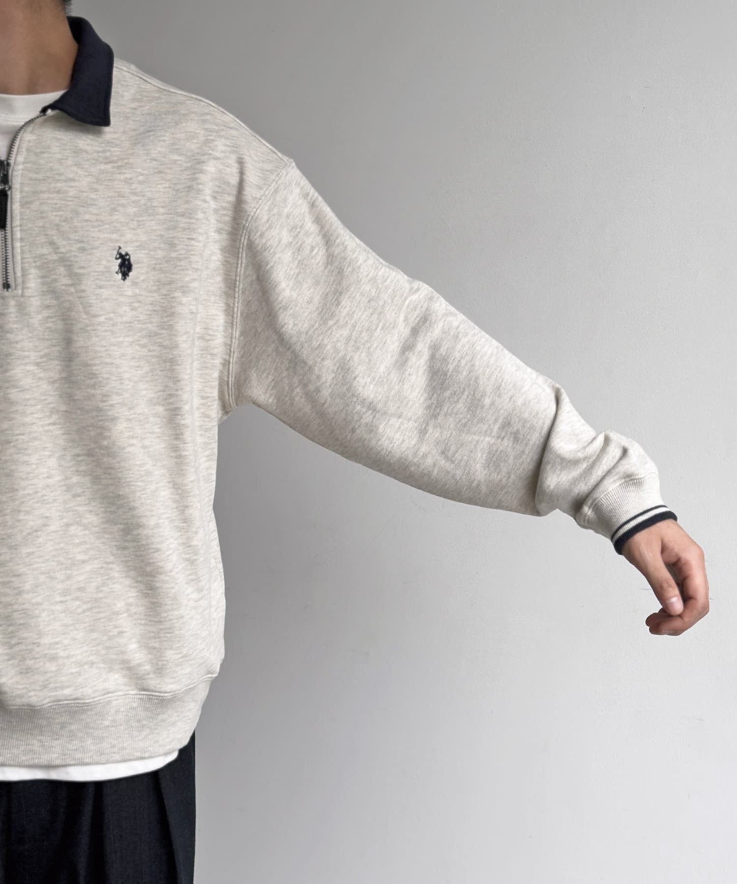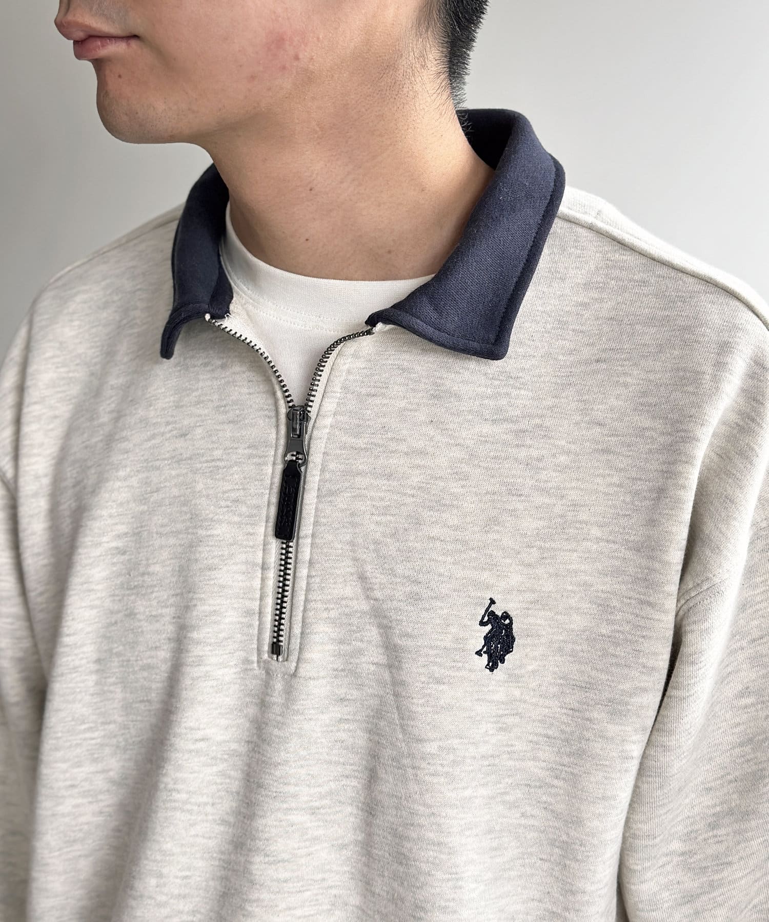 【U.S. POLO ASSN.】裏毛襟ハーフジッププルオーバー