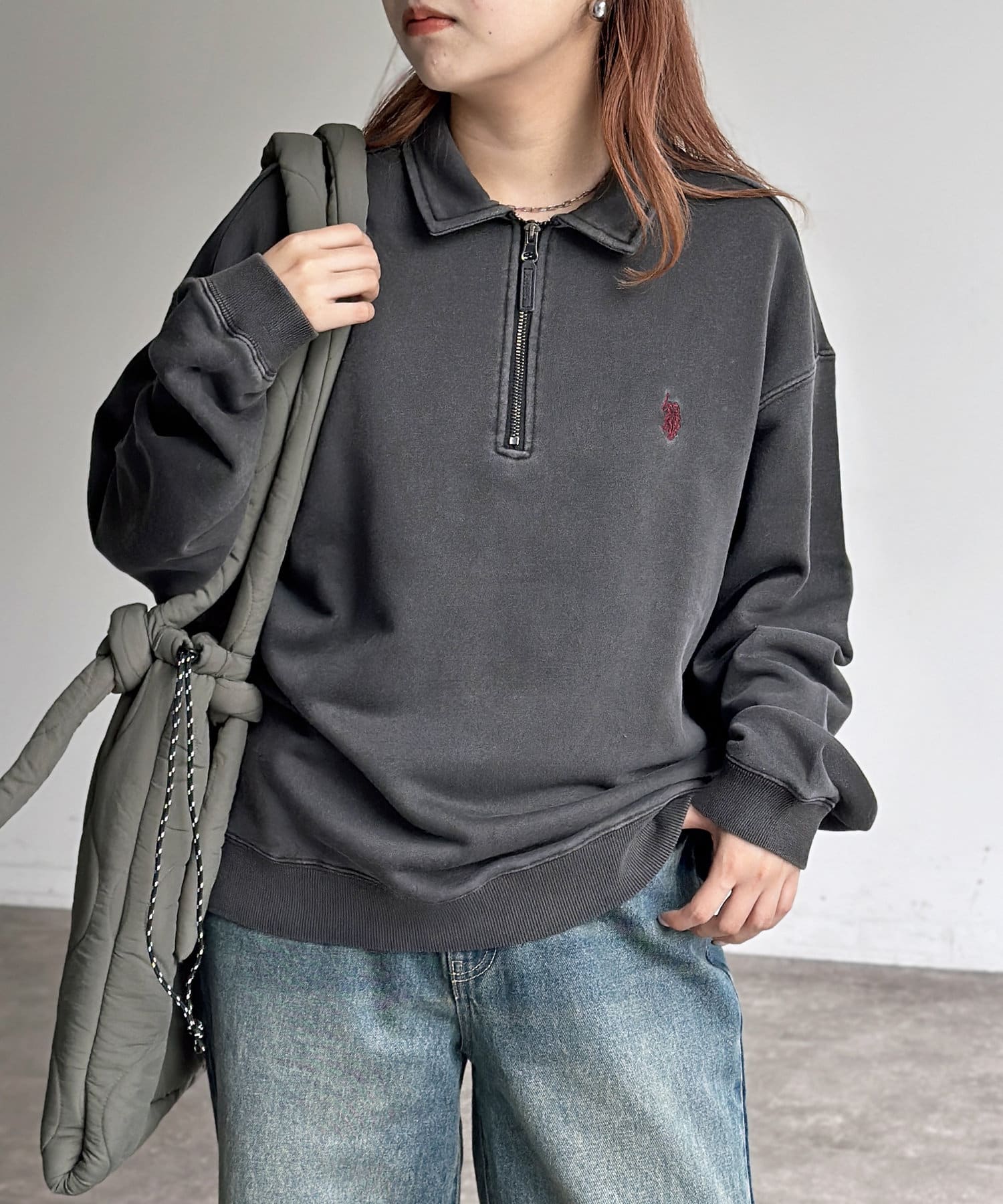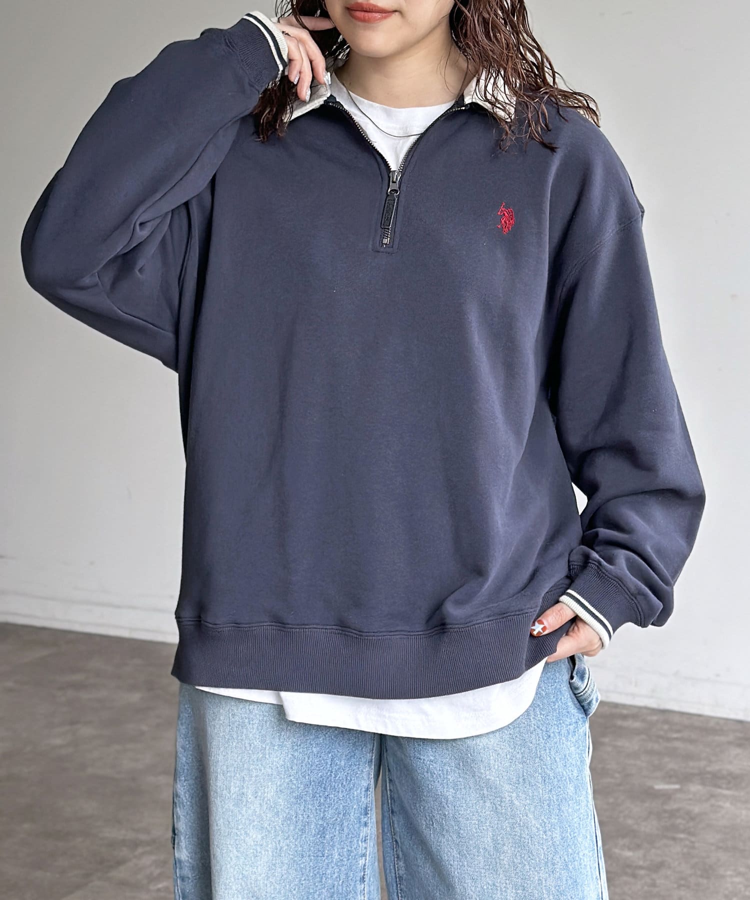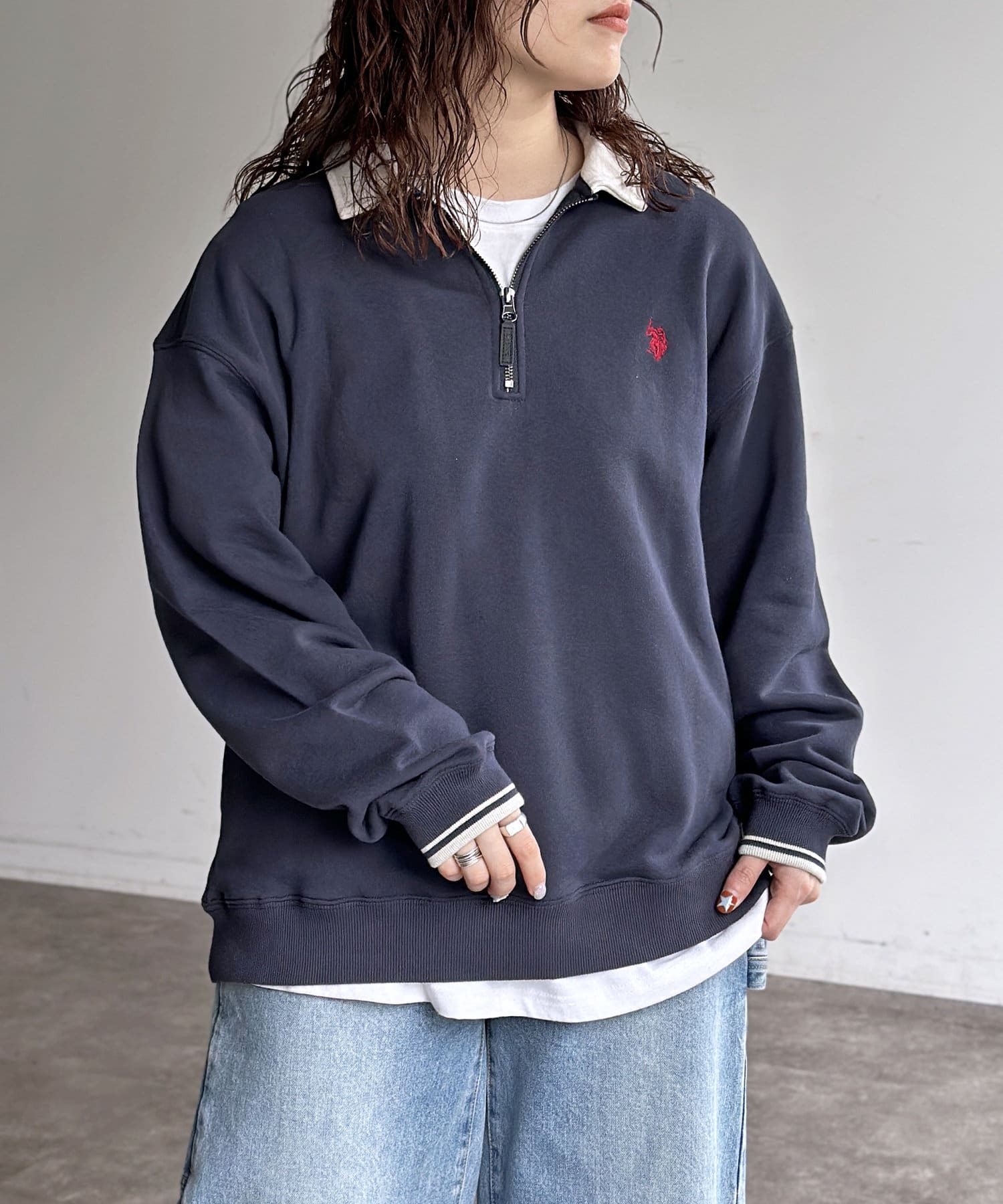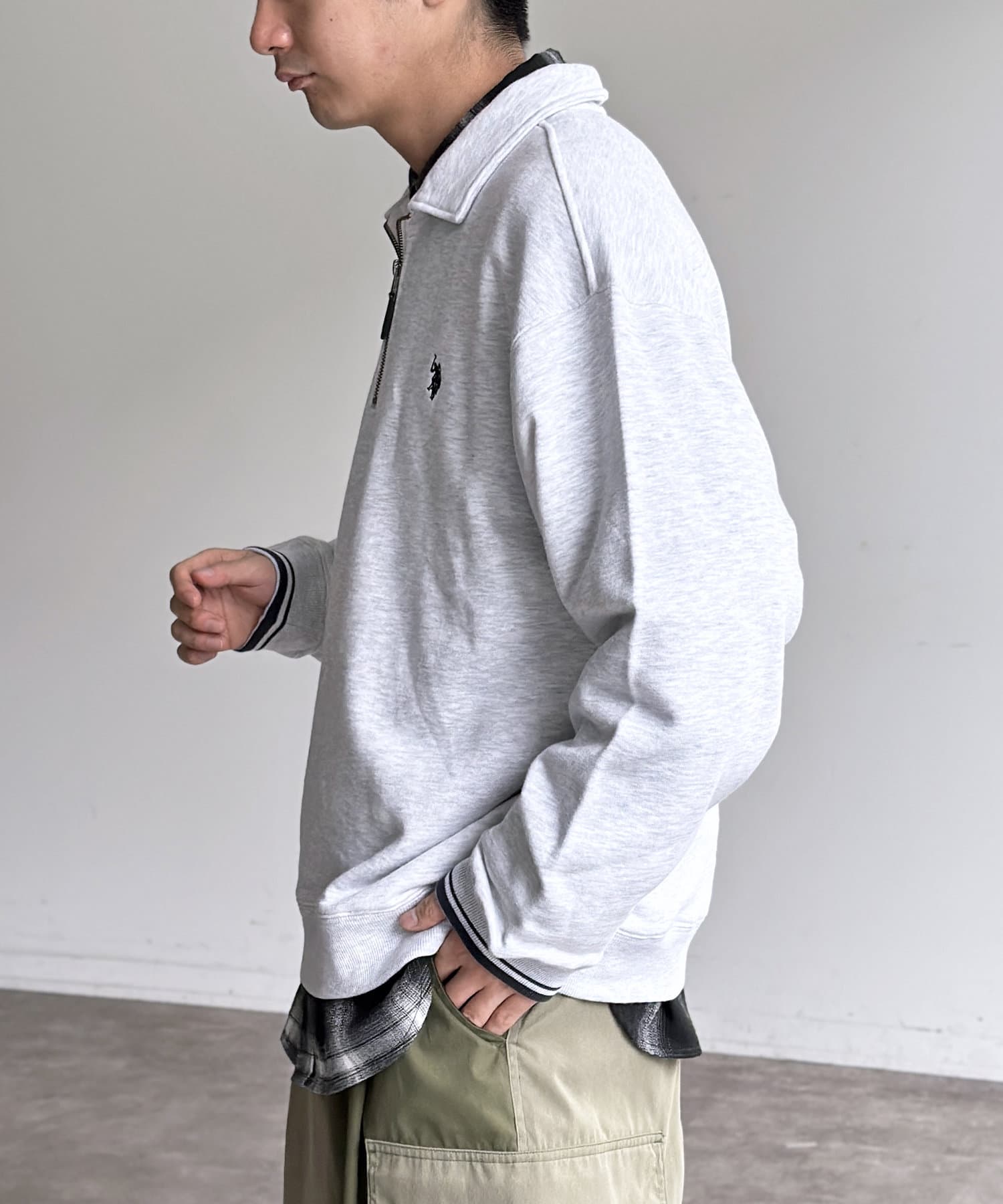 【U.S. POLO ASSN.】裏毛襟ハーフジッププルオーバー