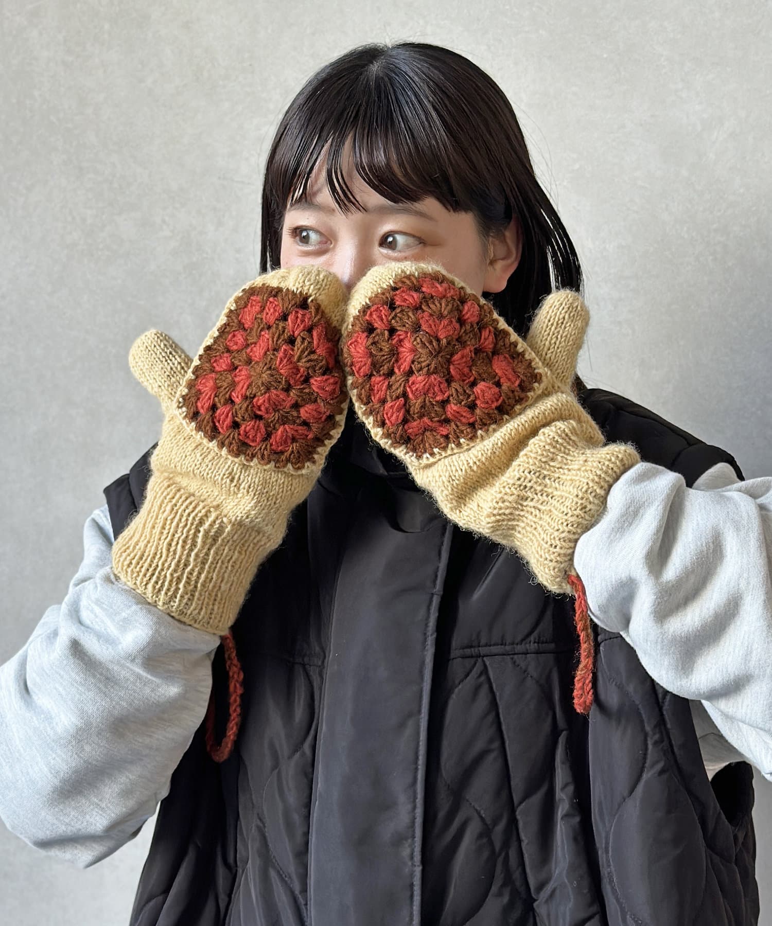 CPCMの定番柄、クロシェ編みのぬくぬく手袋