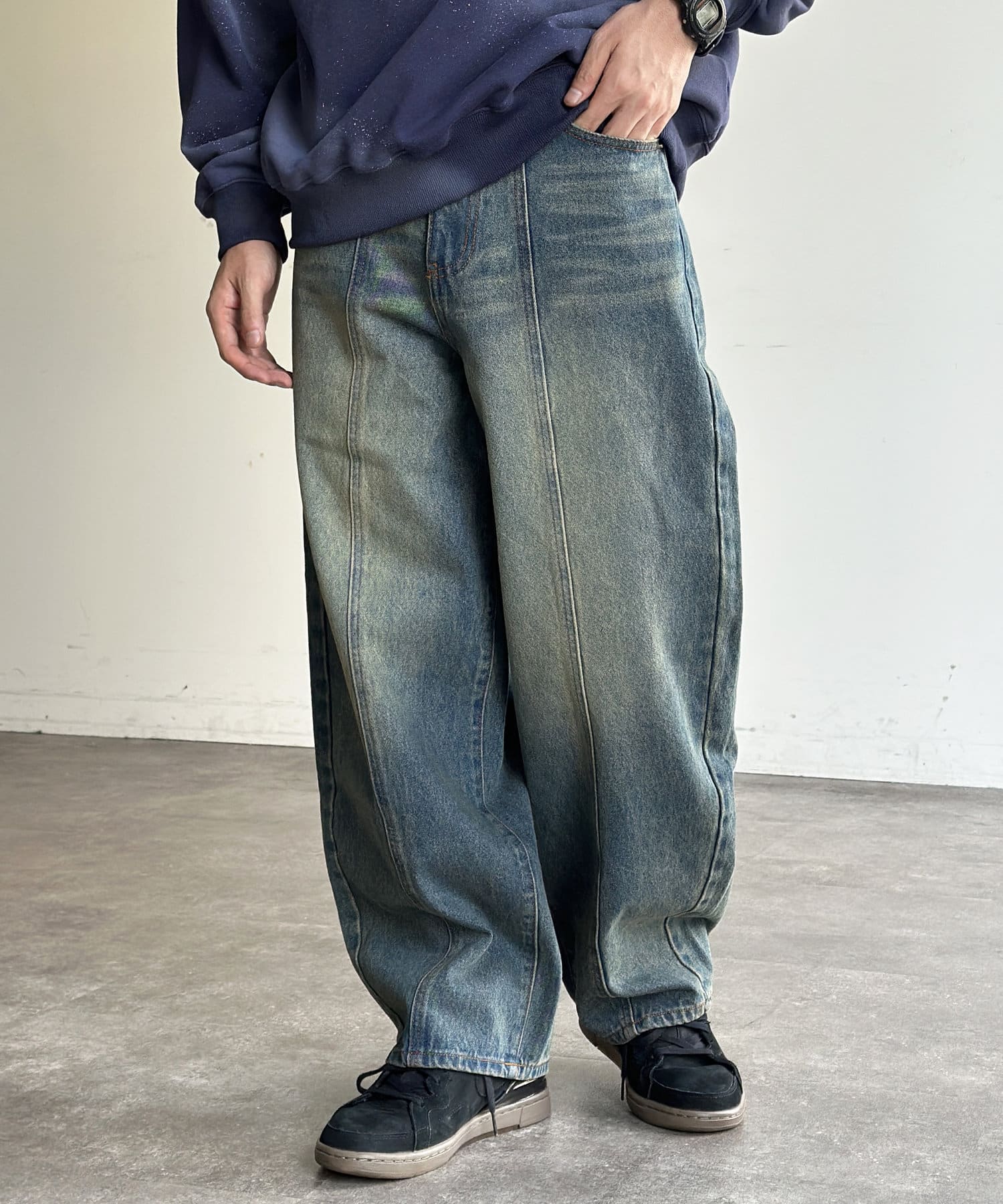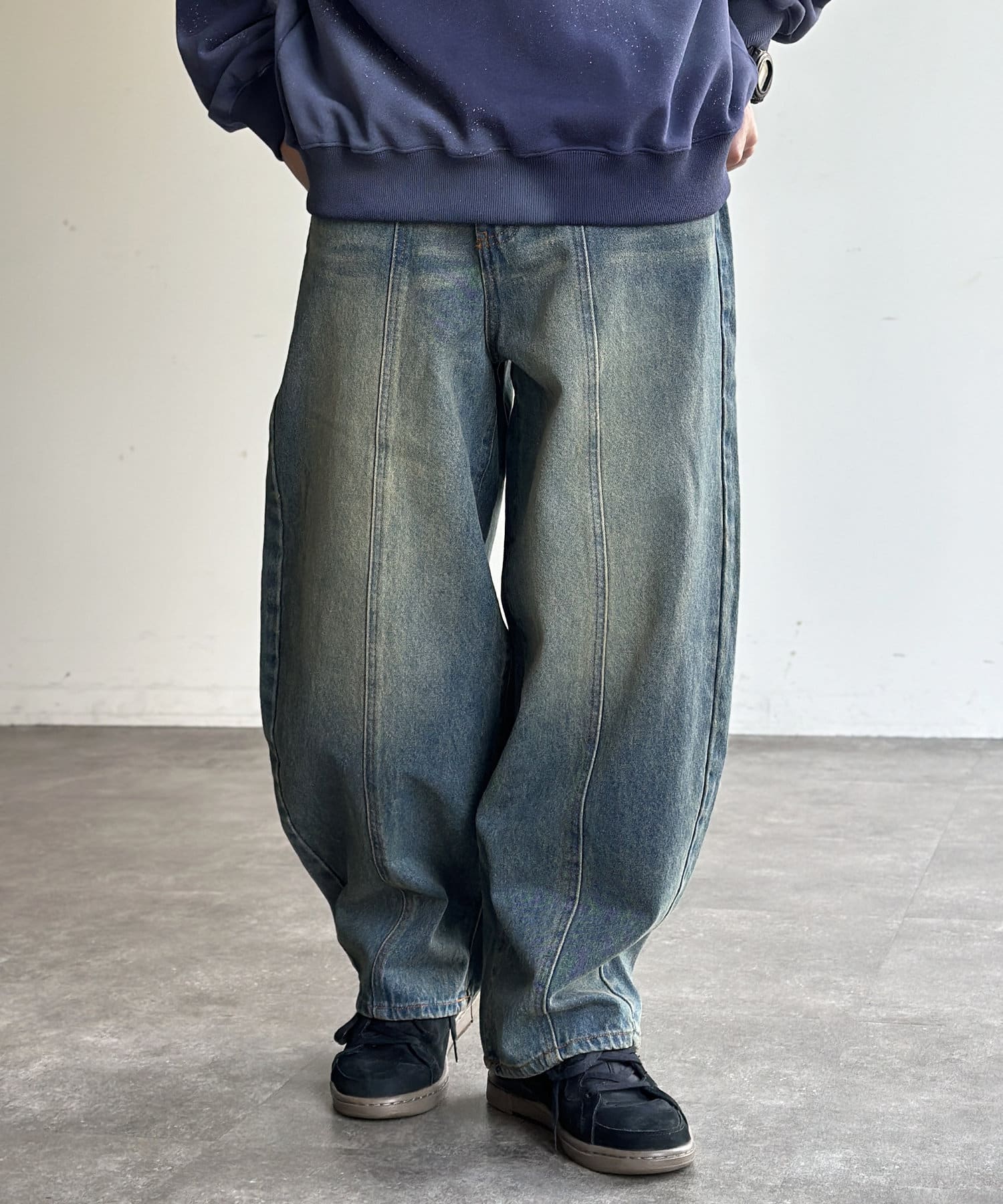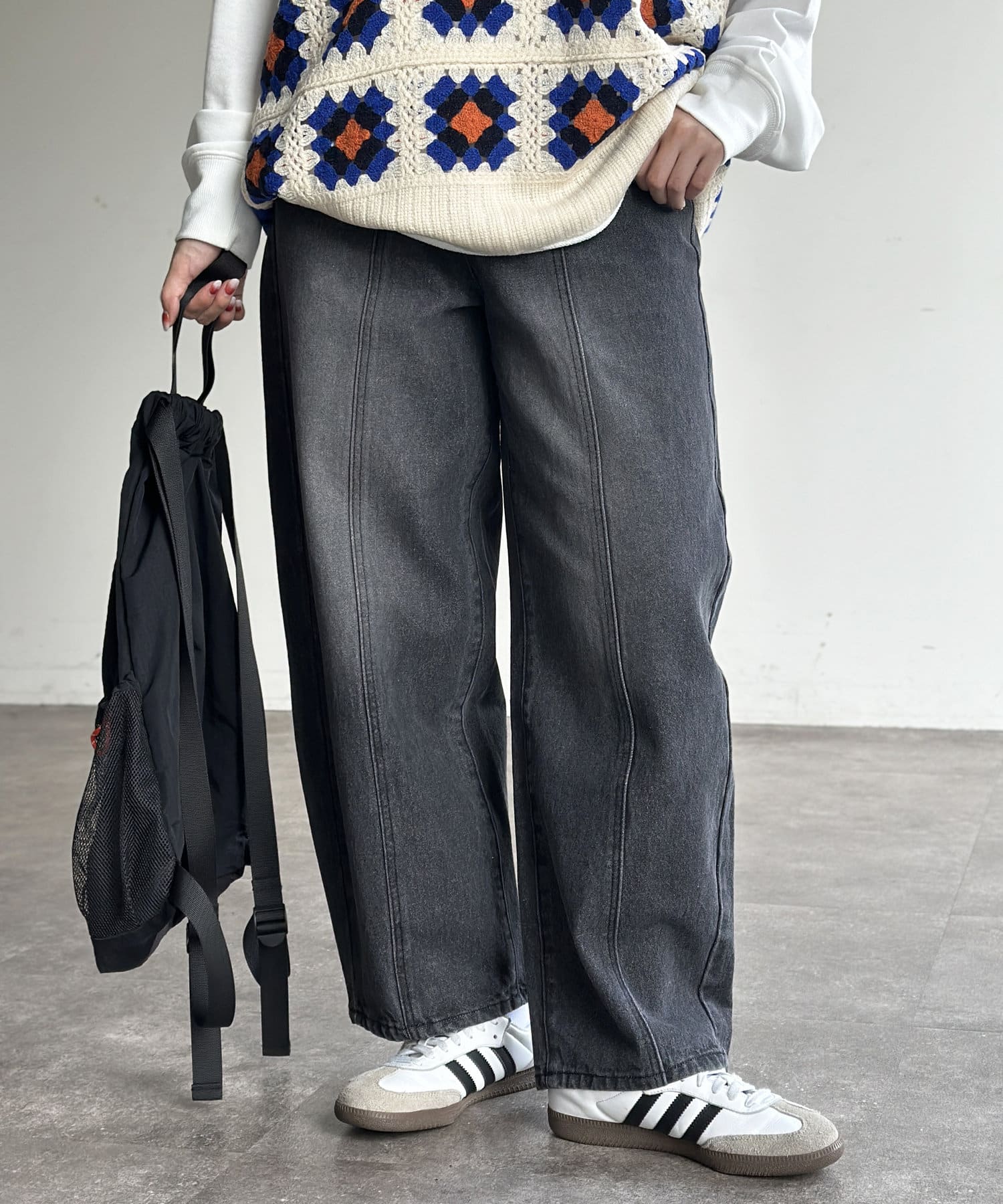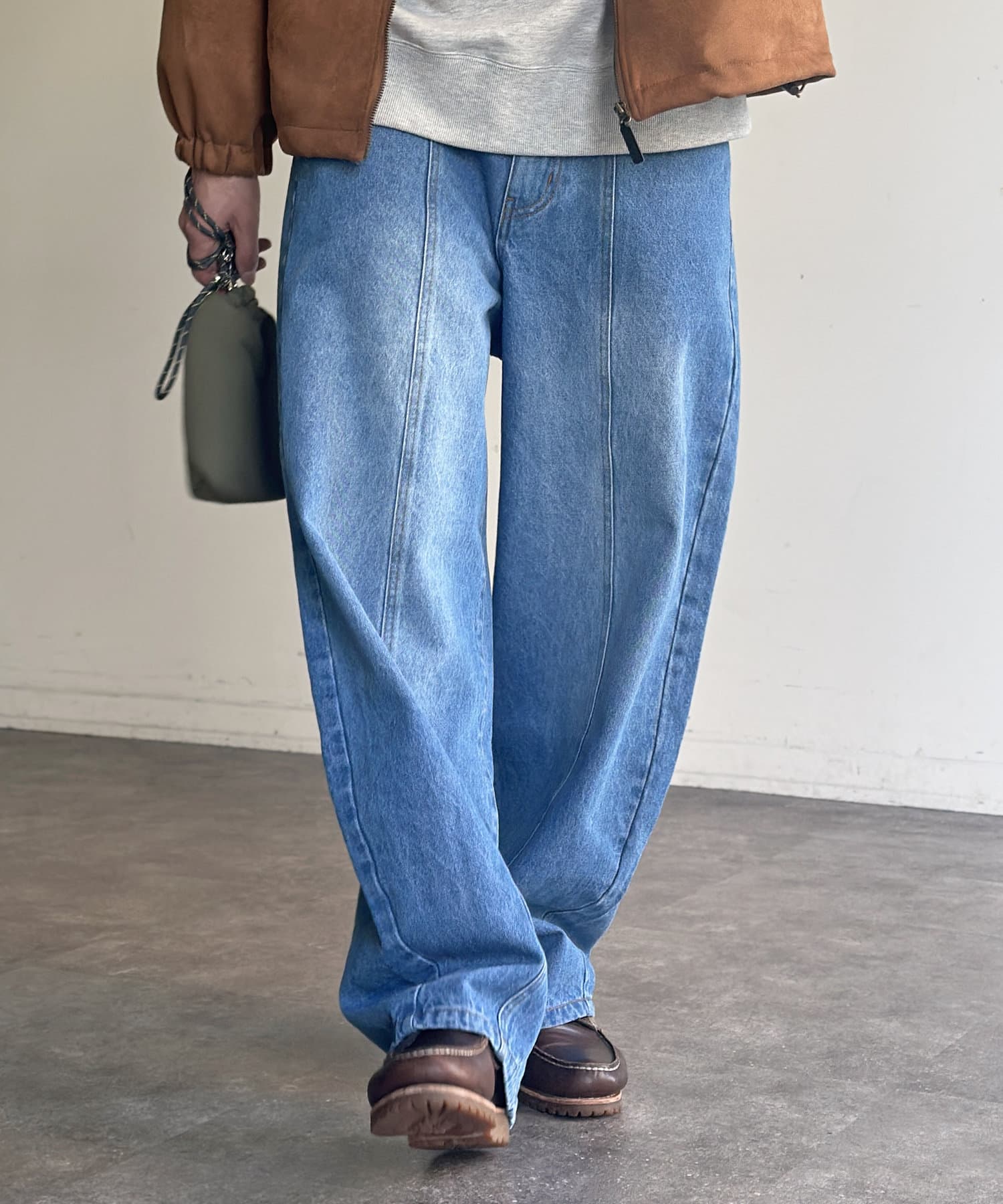 センターシームとカーブシルエットがポイントのデニムパンツ