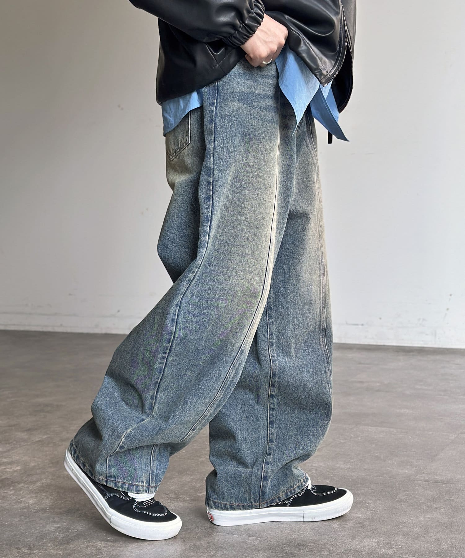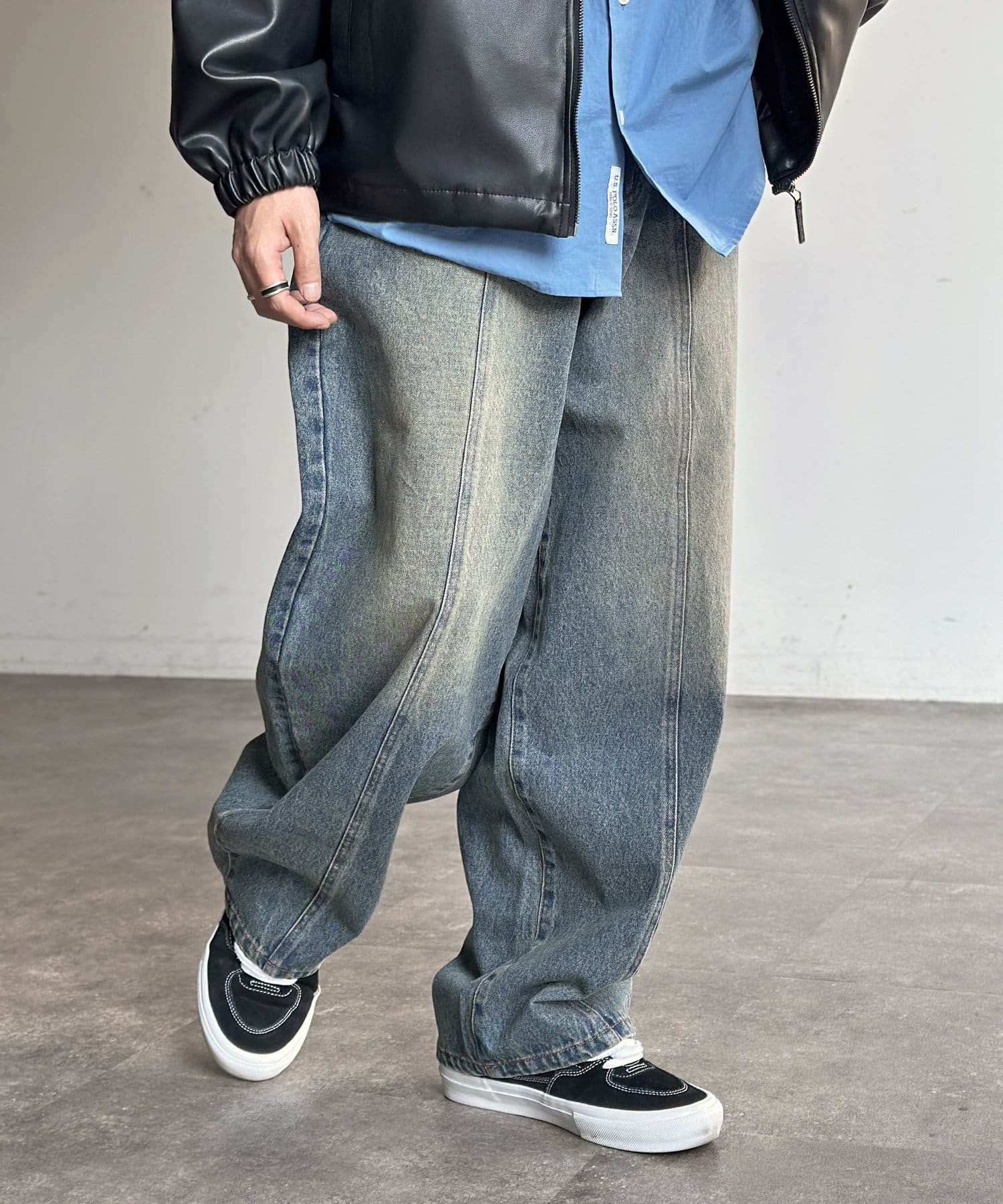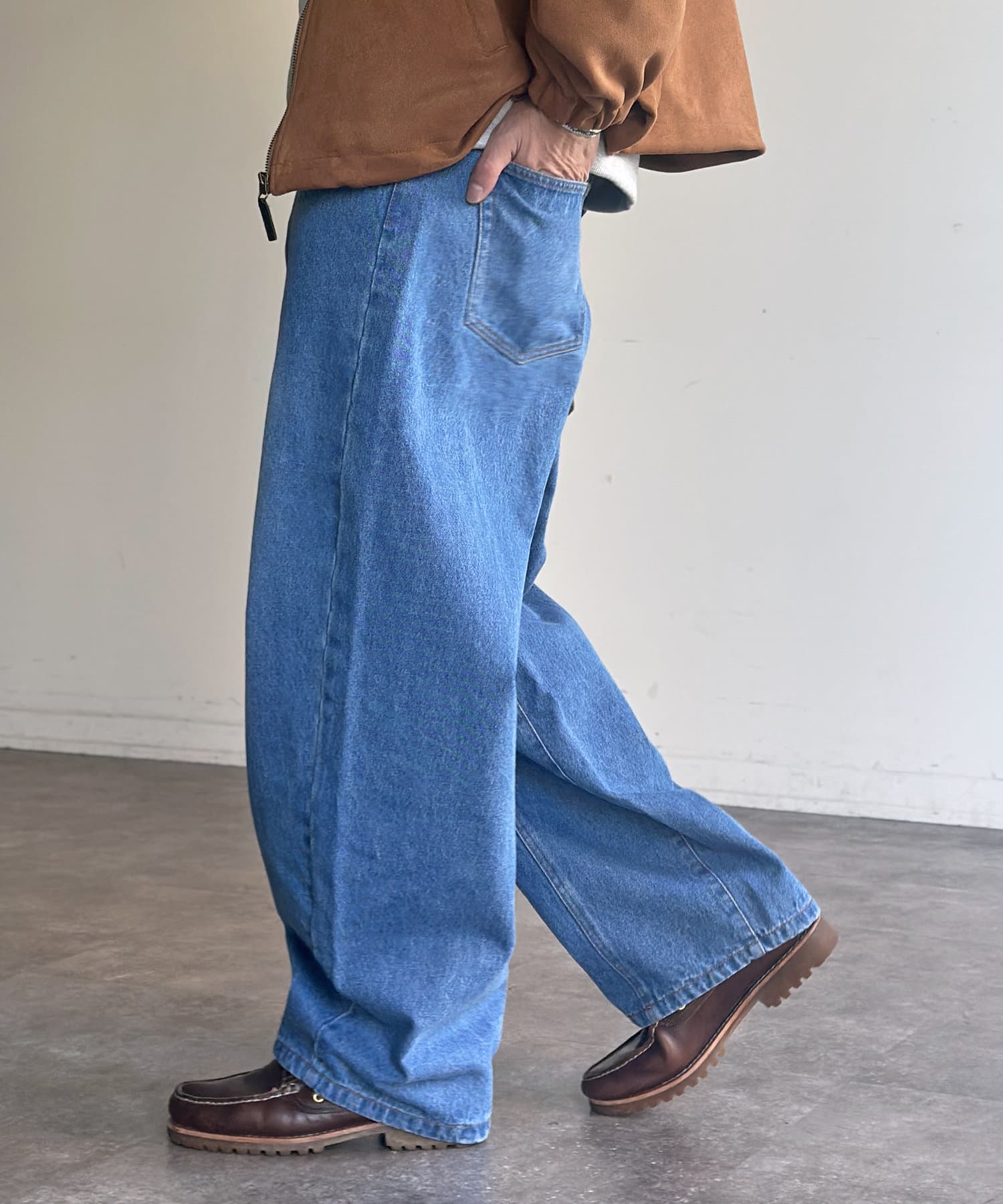センターシームとカーブシルエットがポイントのデニムパンツ