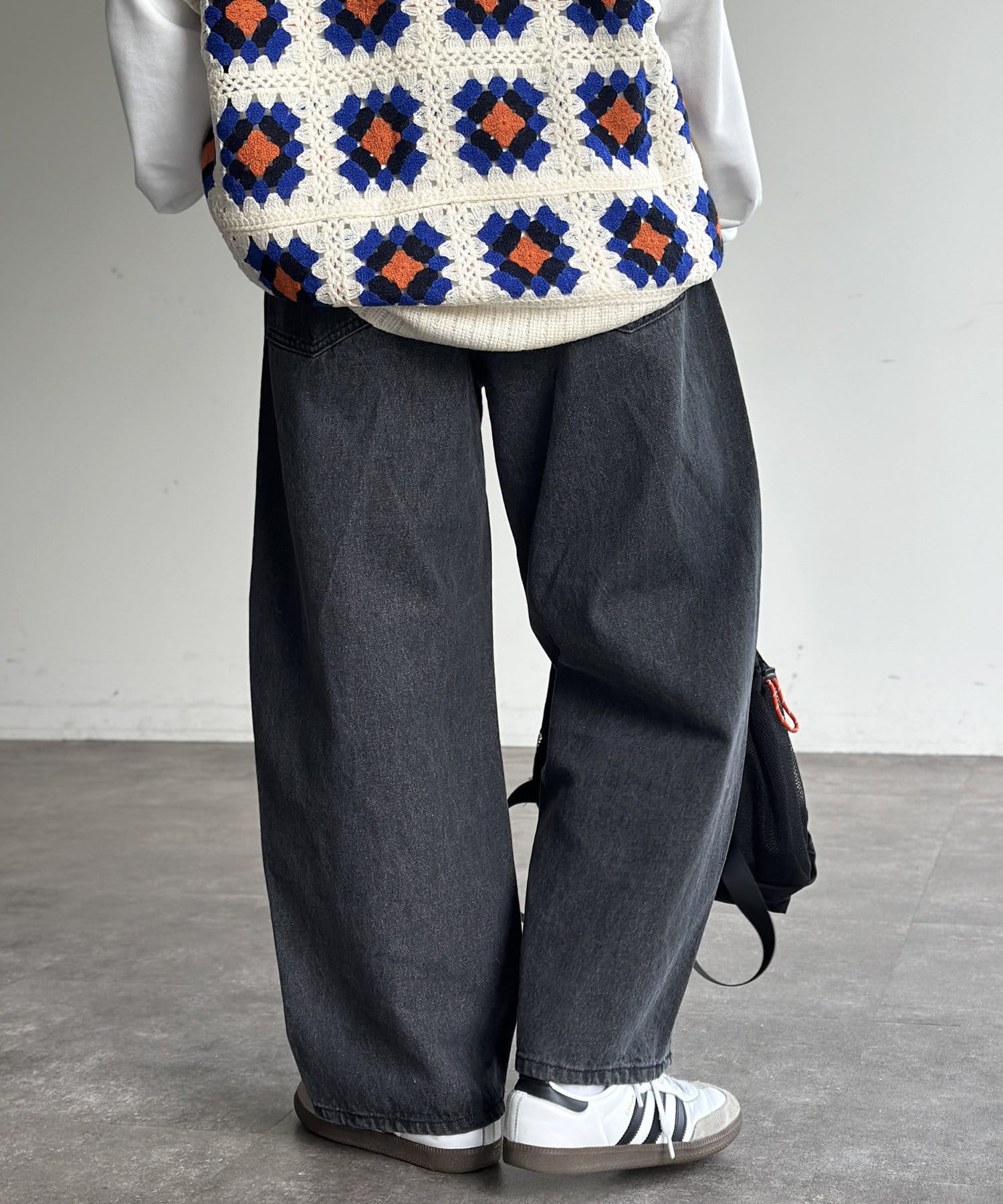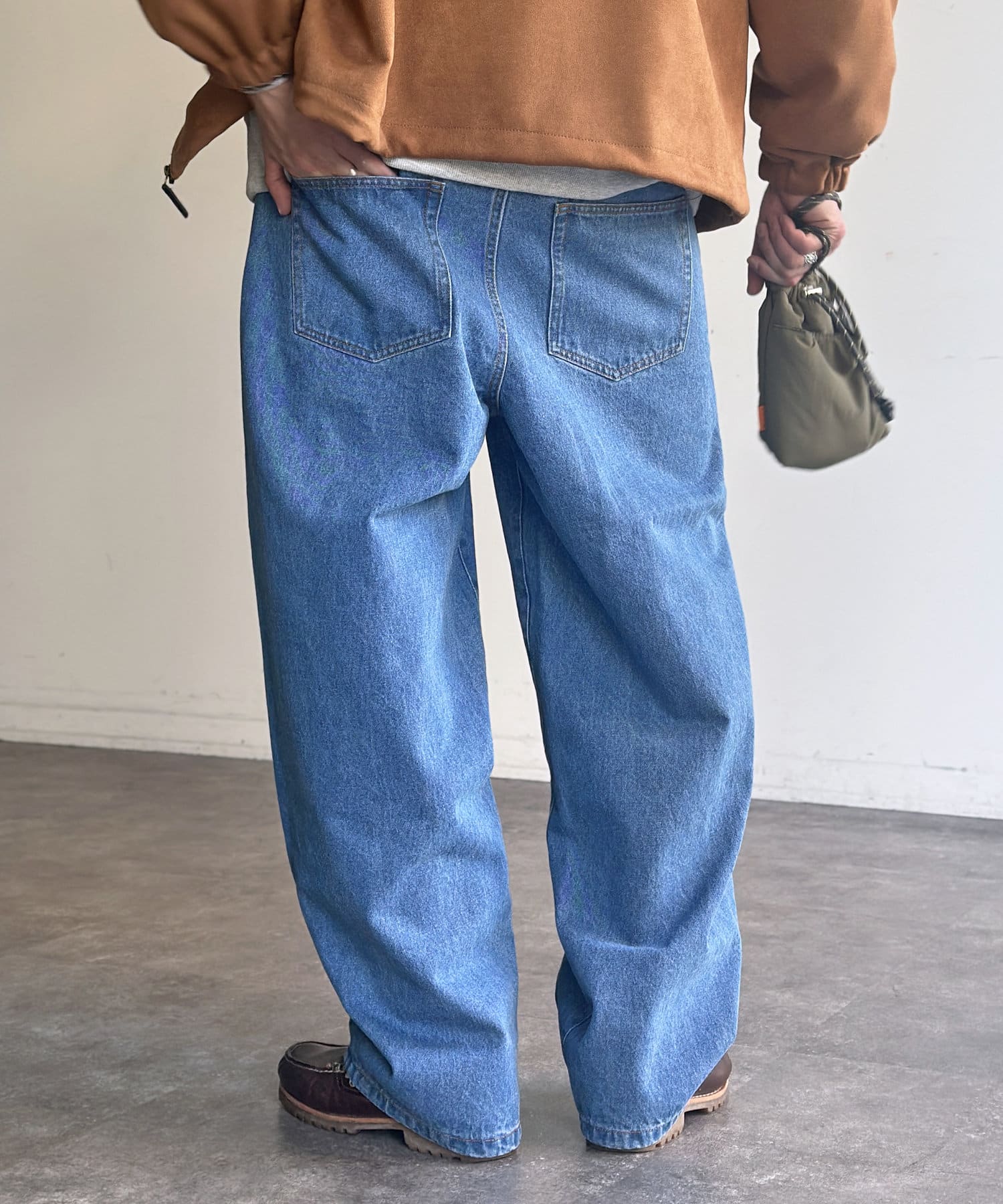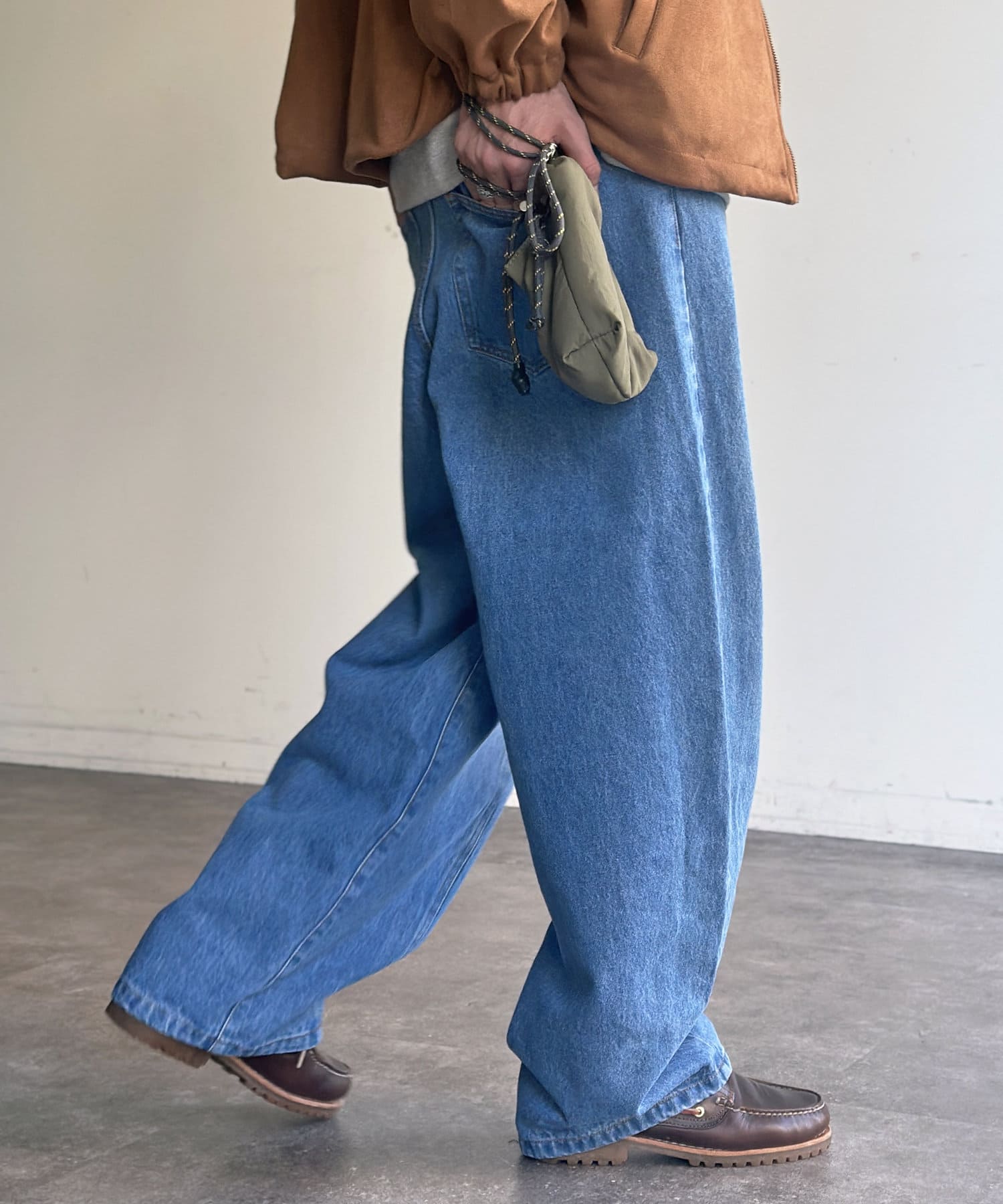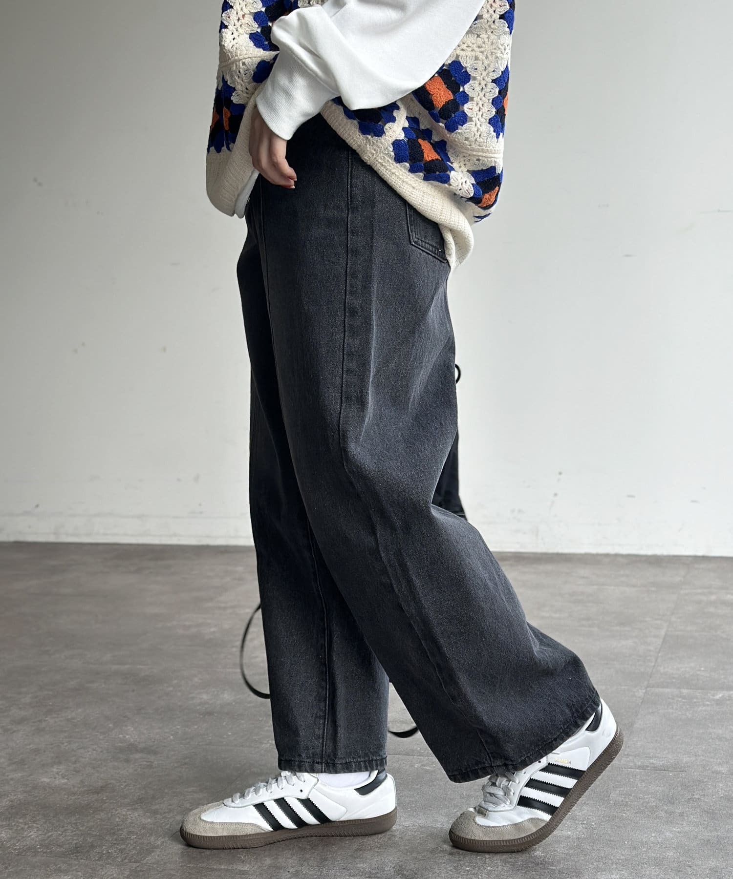 センターシームとカーブシルエットがポイントのデニムパンツ