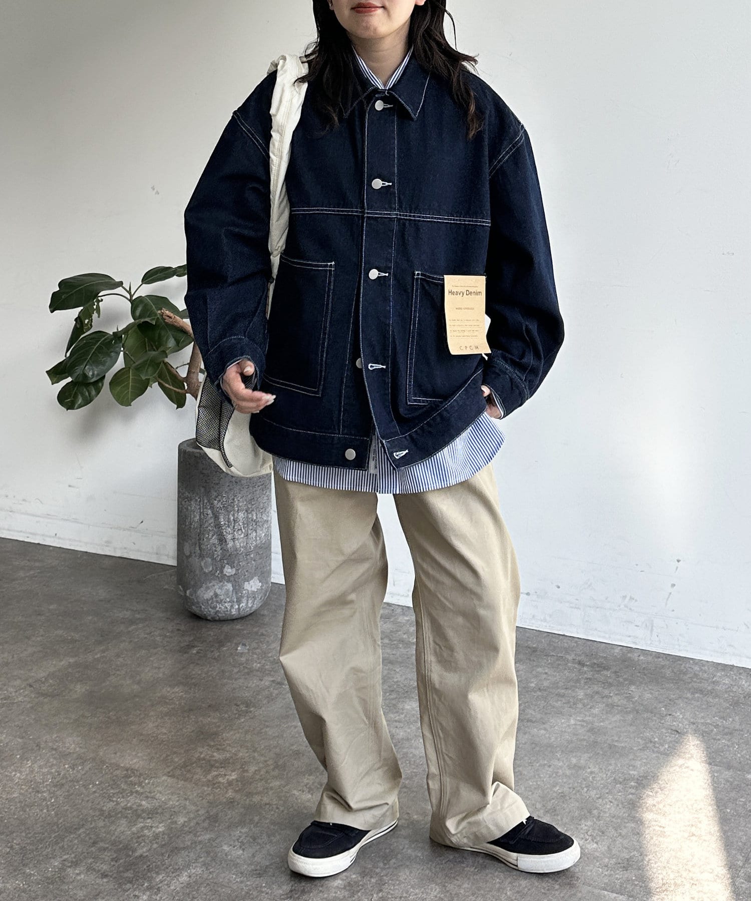 デニムの質感も良く、短丈で着てもスタイル良く決まるアイテムだと思います。