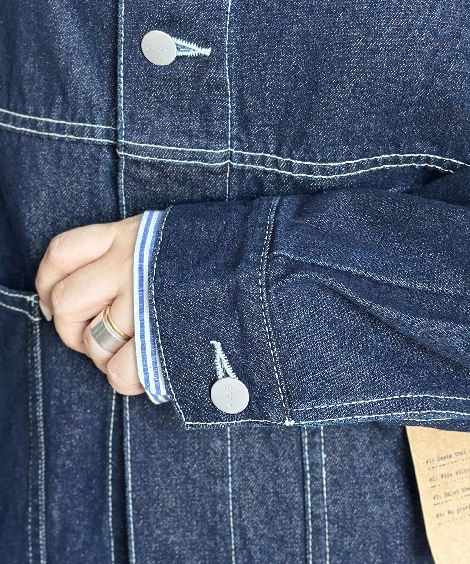 袖にゆとりがあるので、中にニットを着ても全く問題ありません!CPCMと書かれたボタンもお気に入りです。
