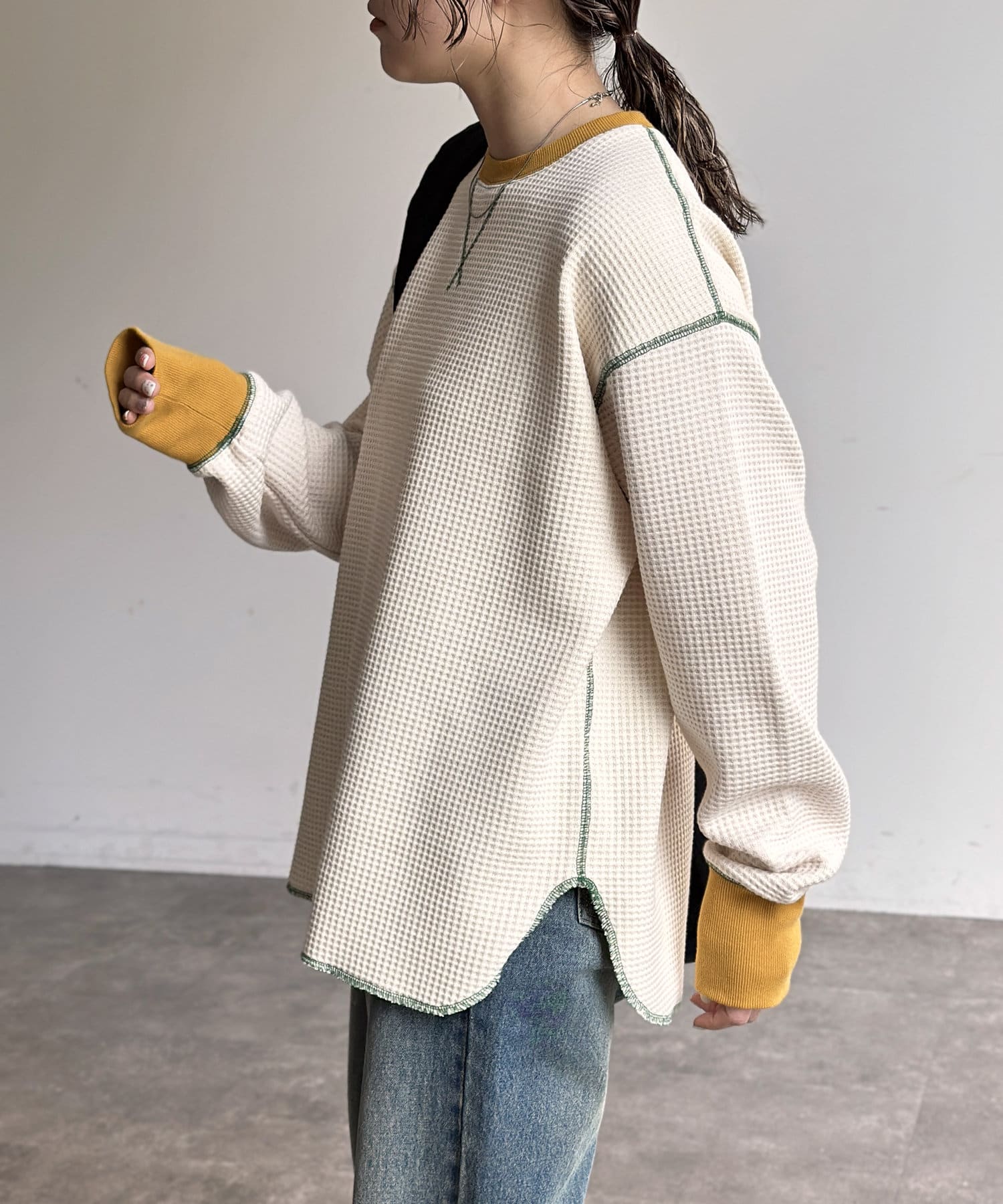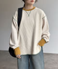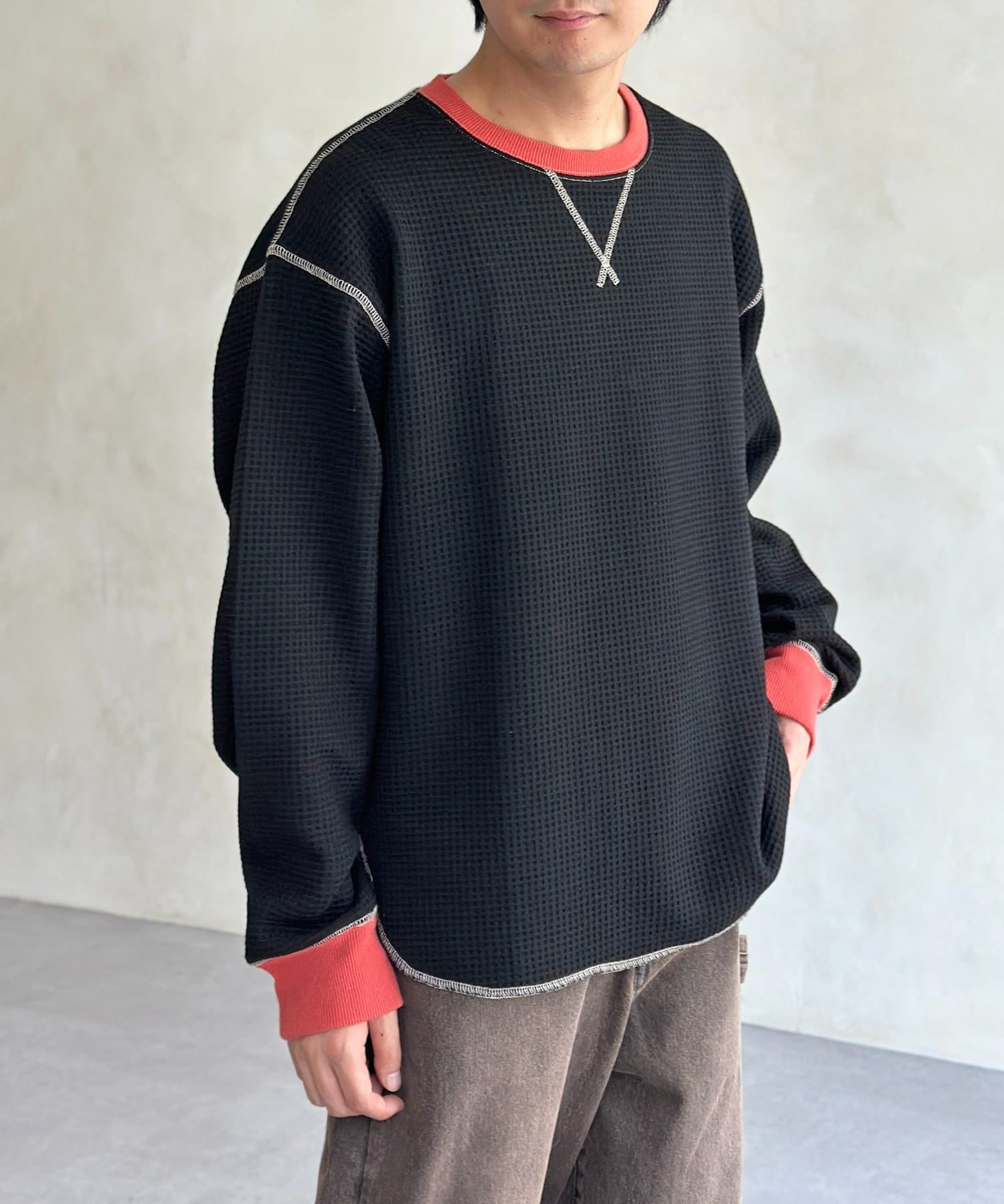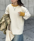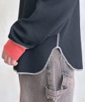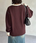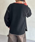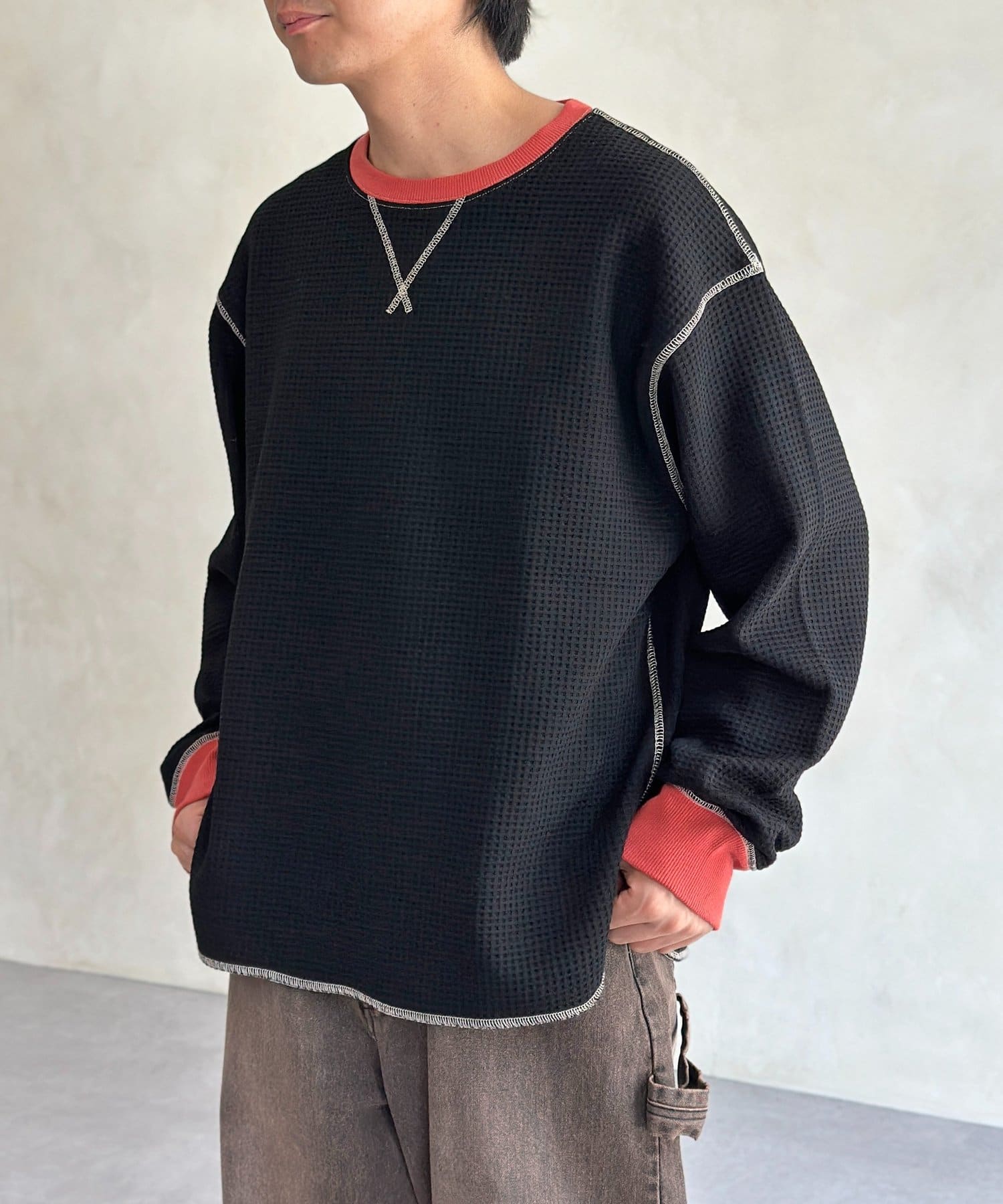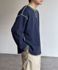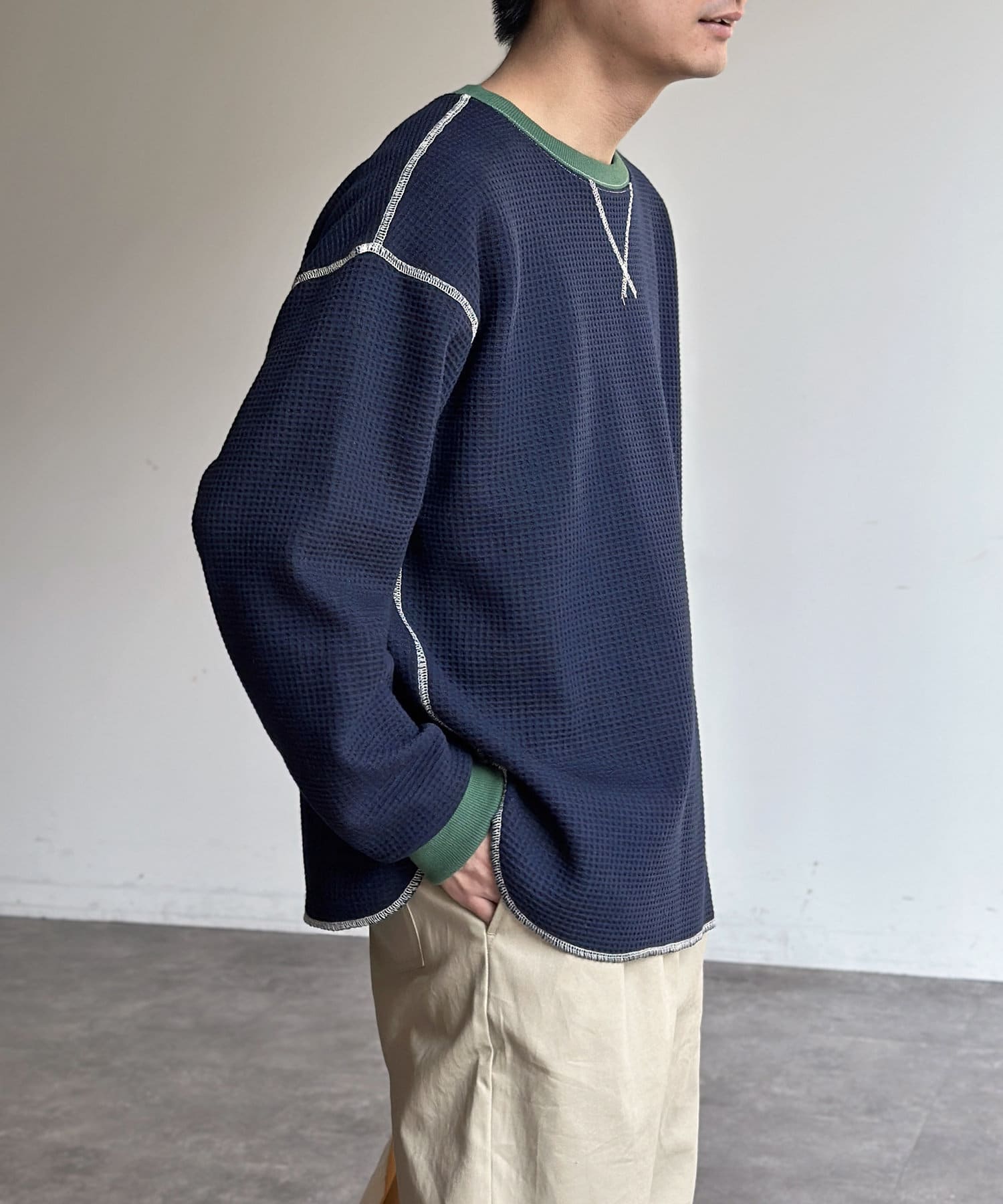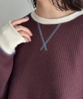 リブ配色ステッチワッフルプルオーバー