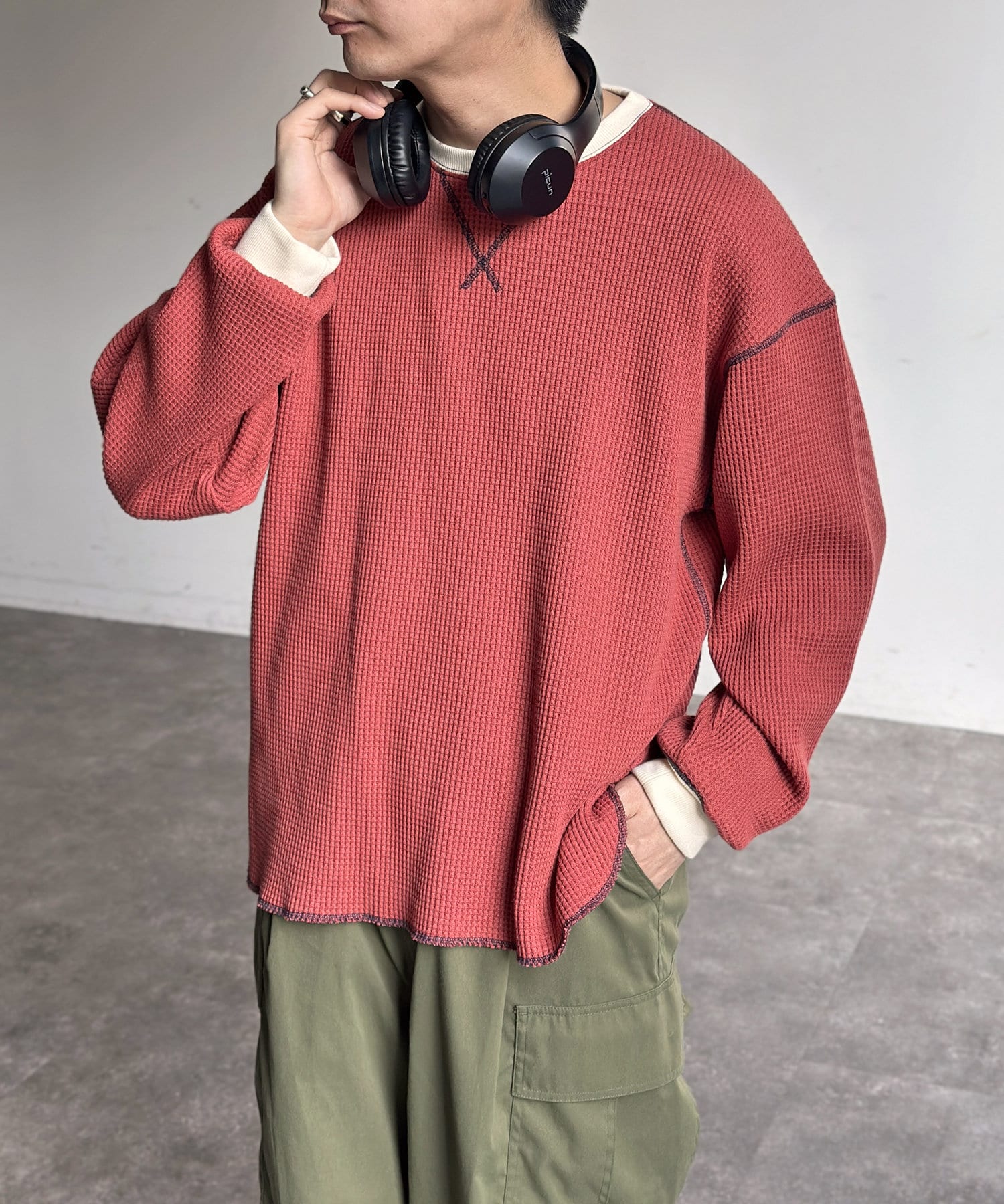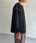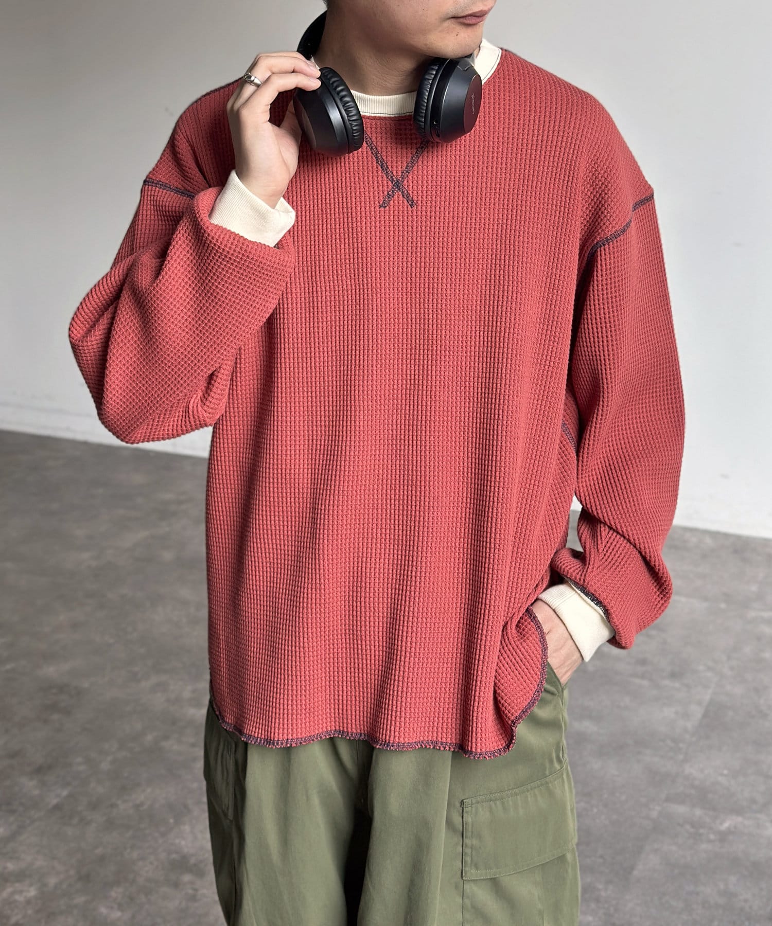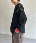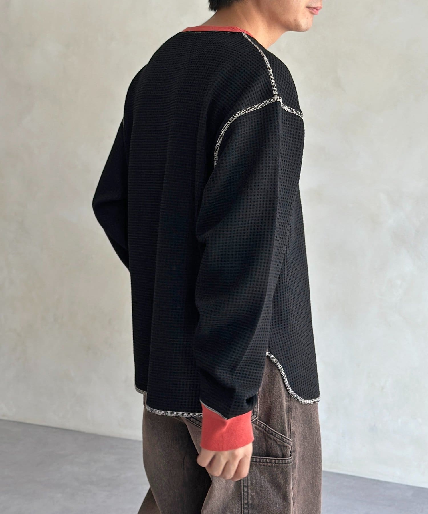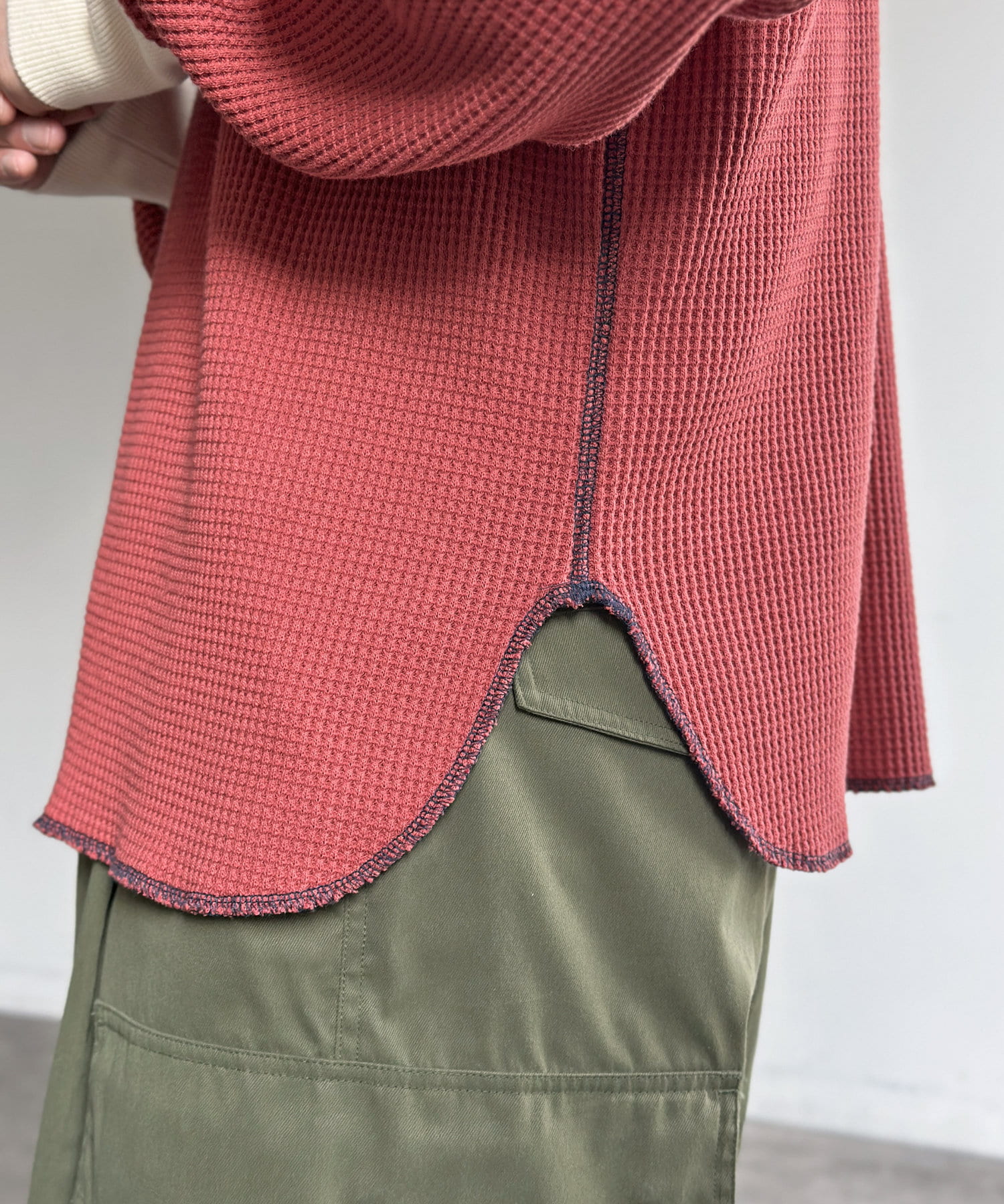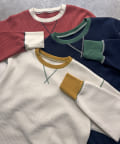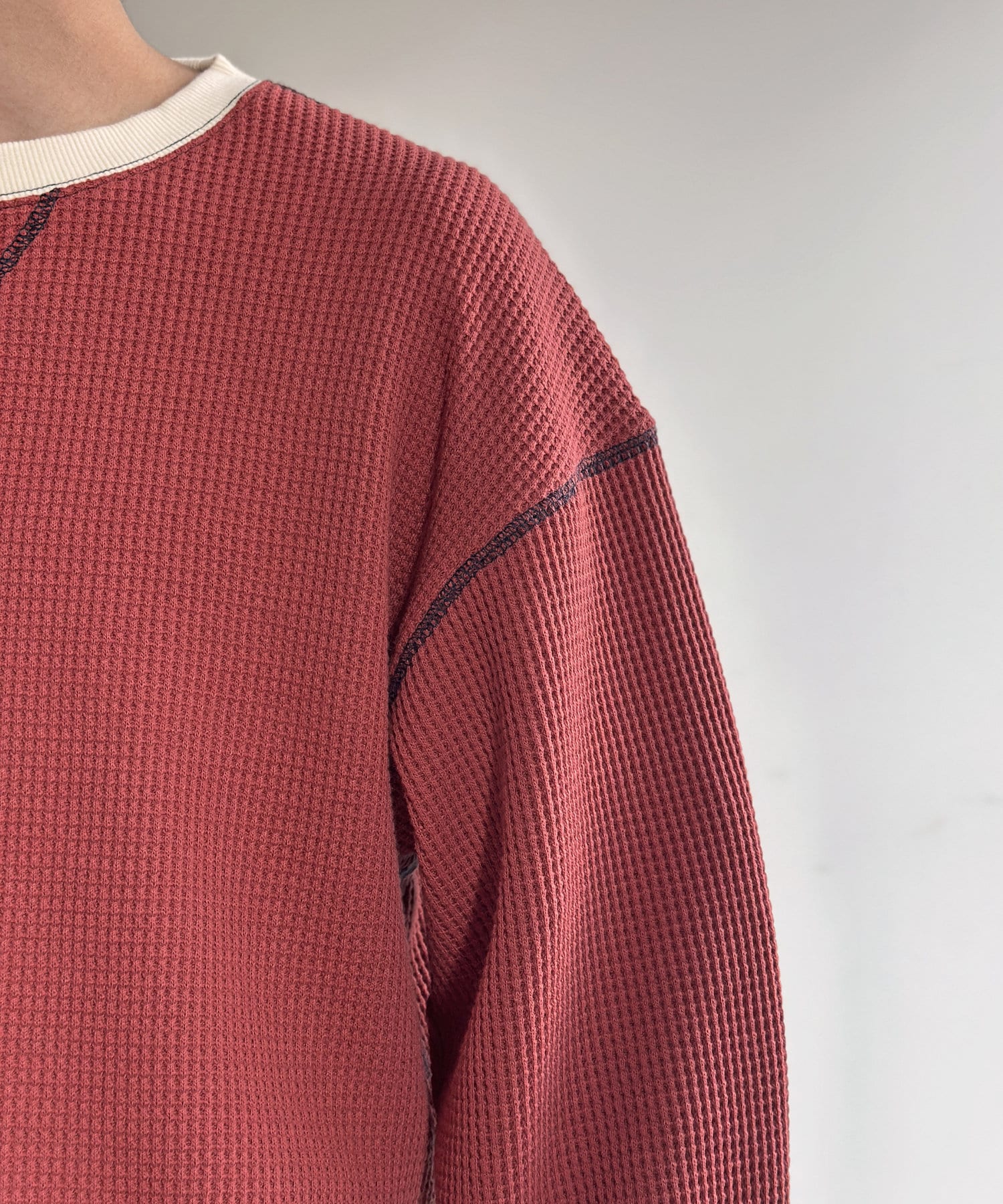 リブ配色ステッチワッフルプルオーバー