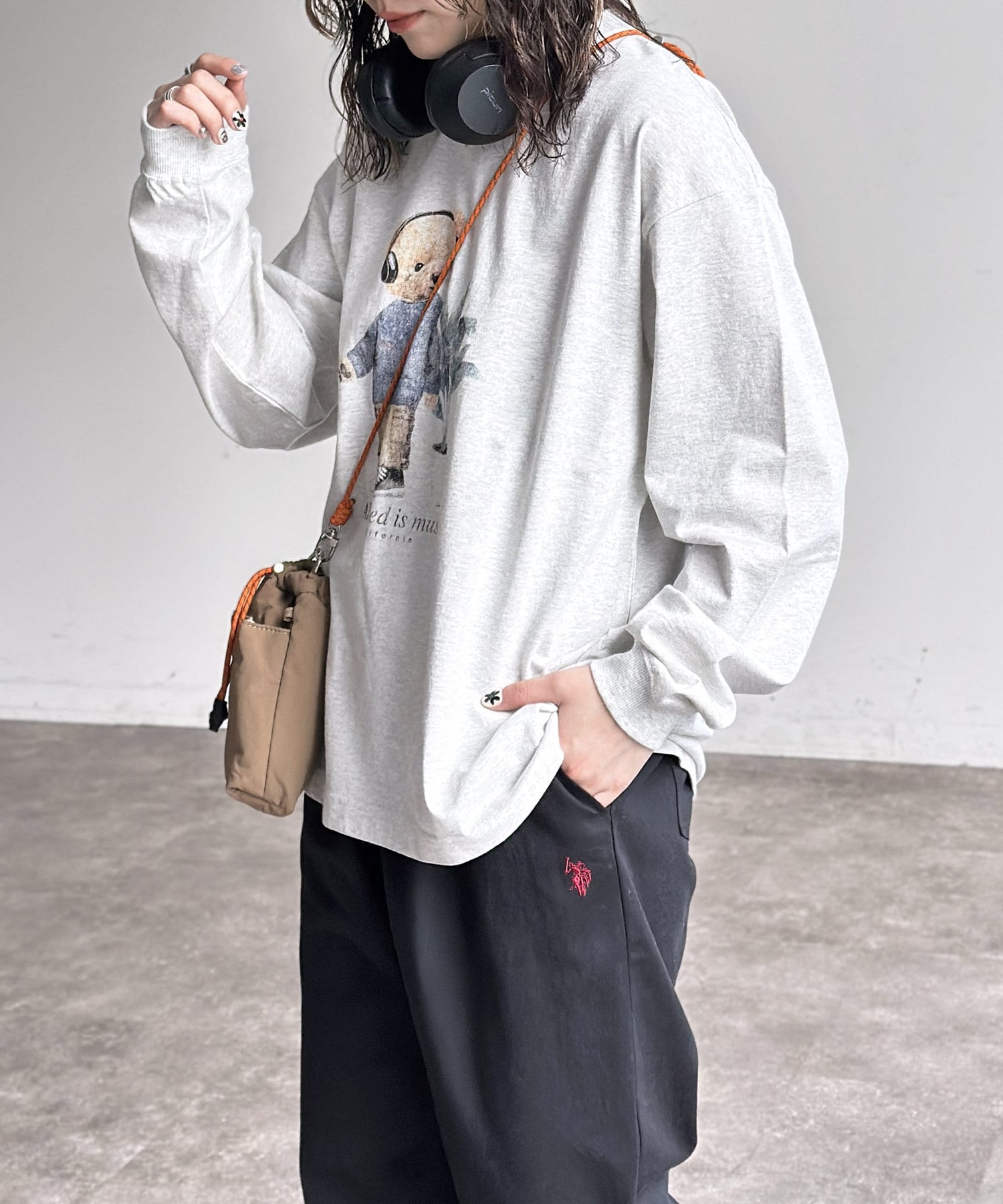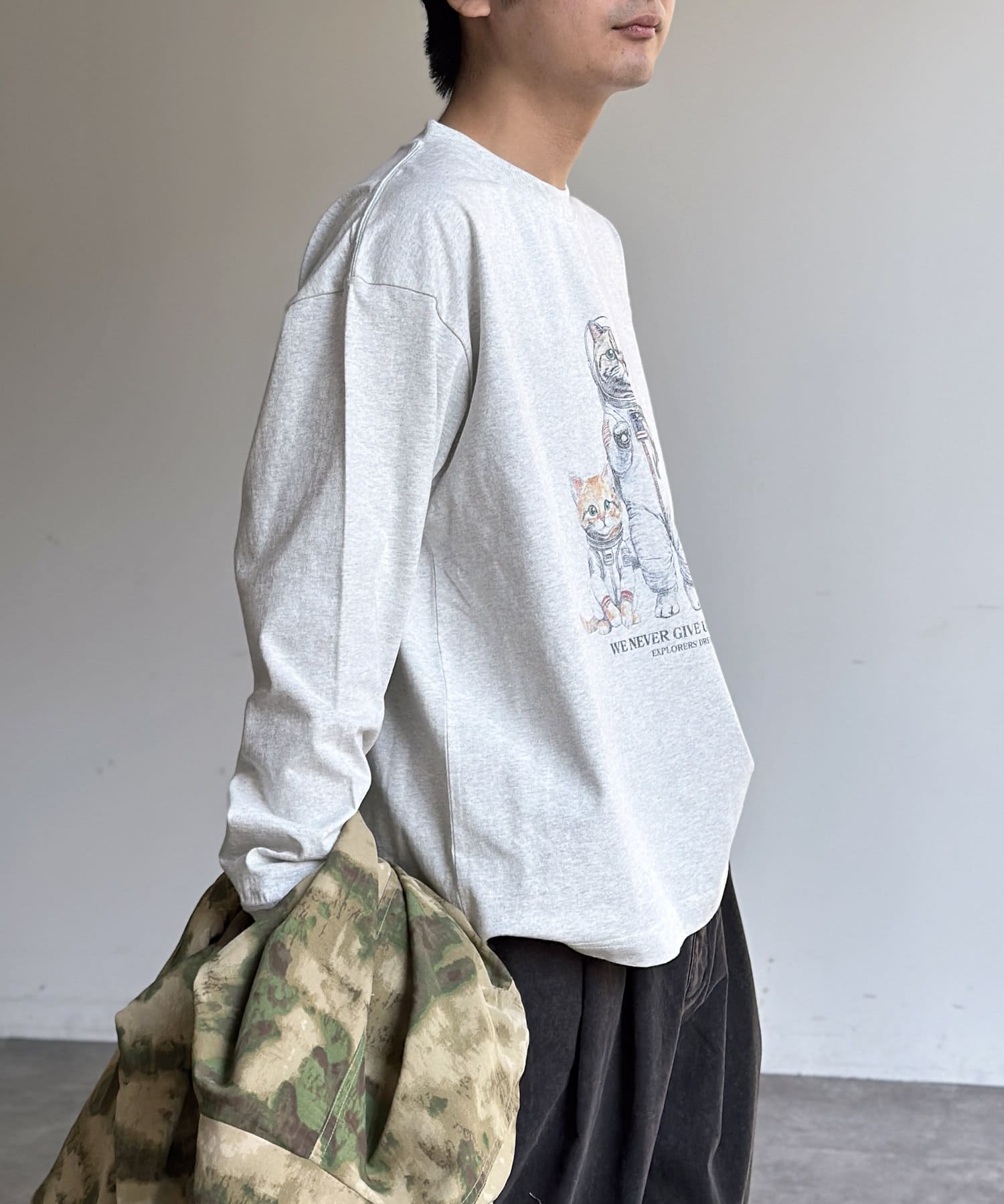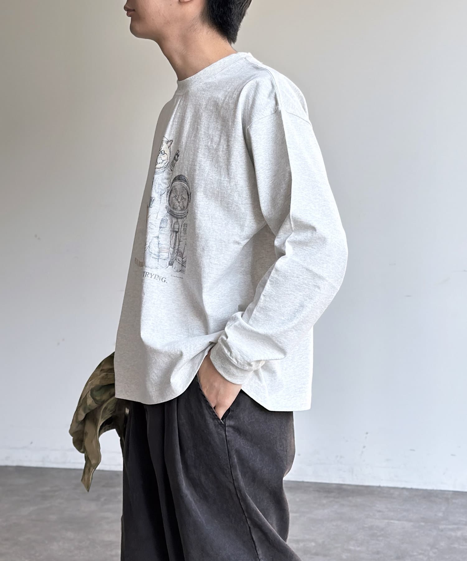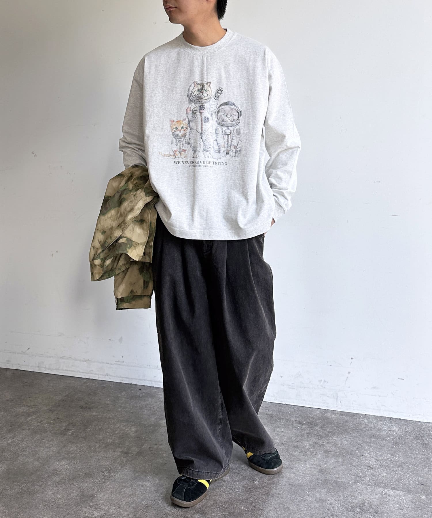 ・プリントにかすれ加工を施し古着ライクな風合いに◎