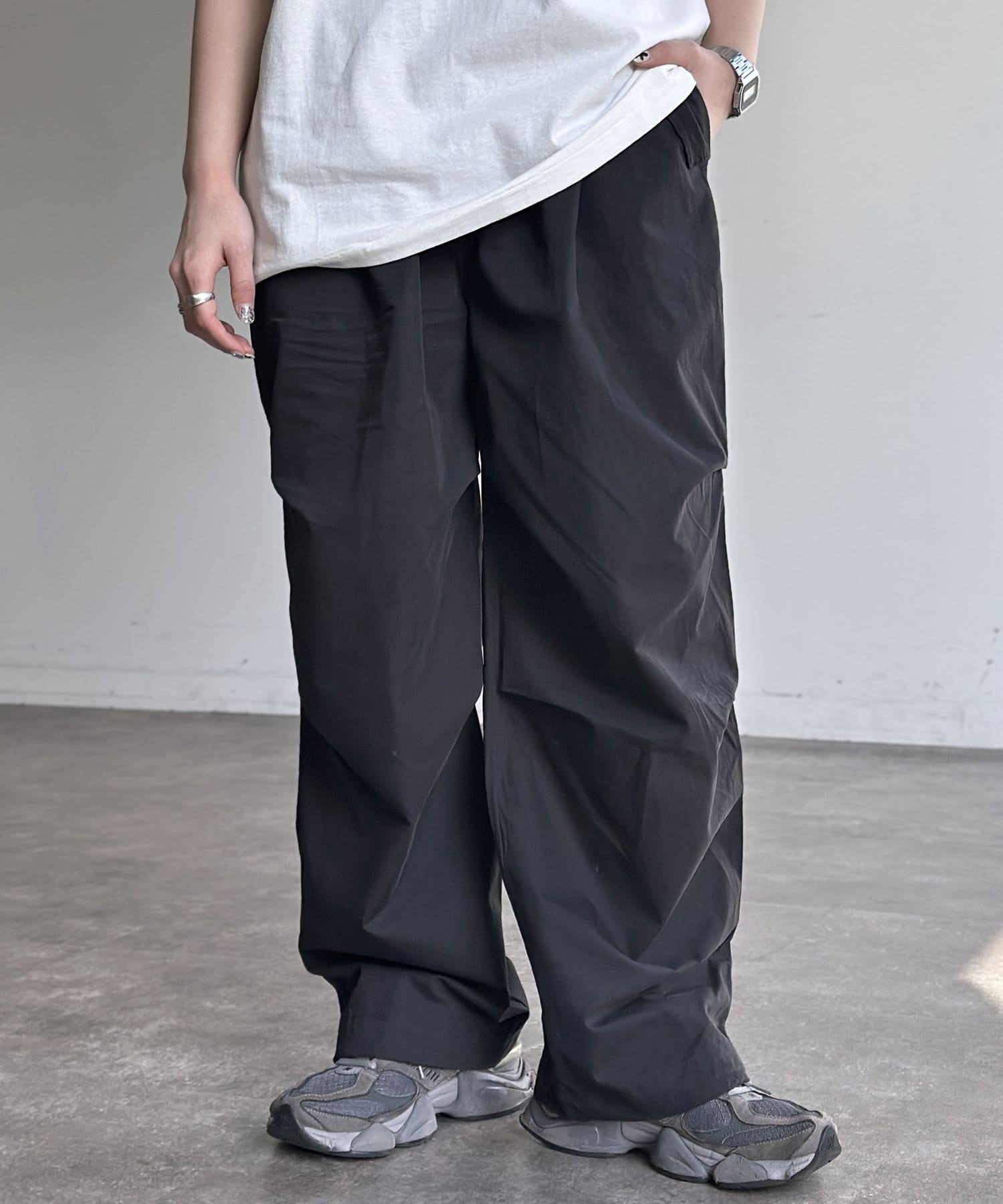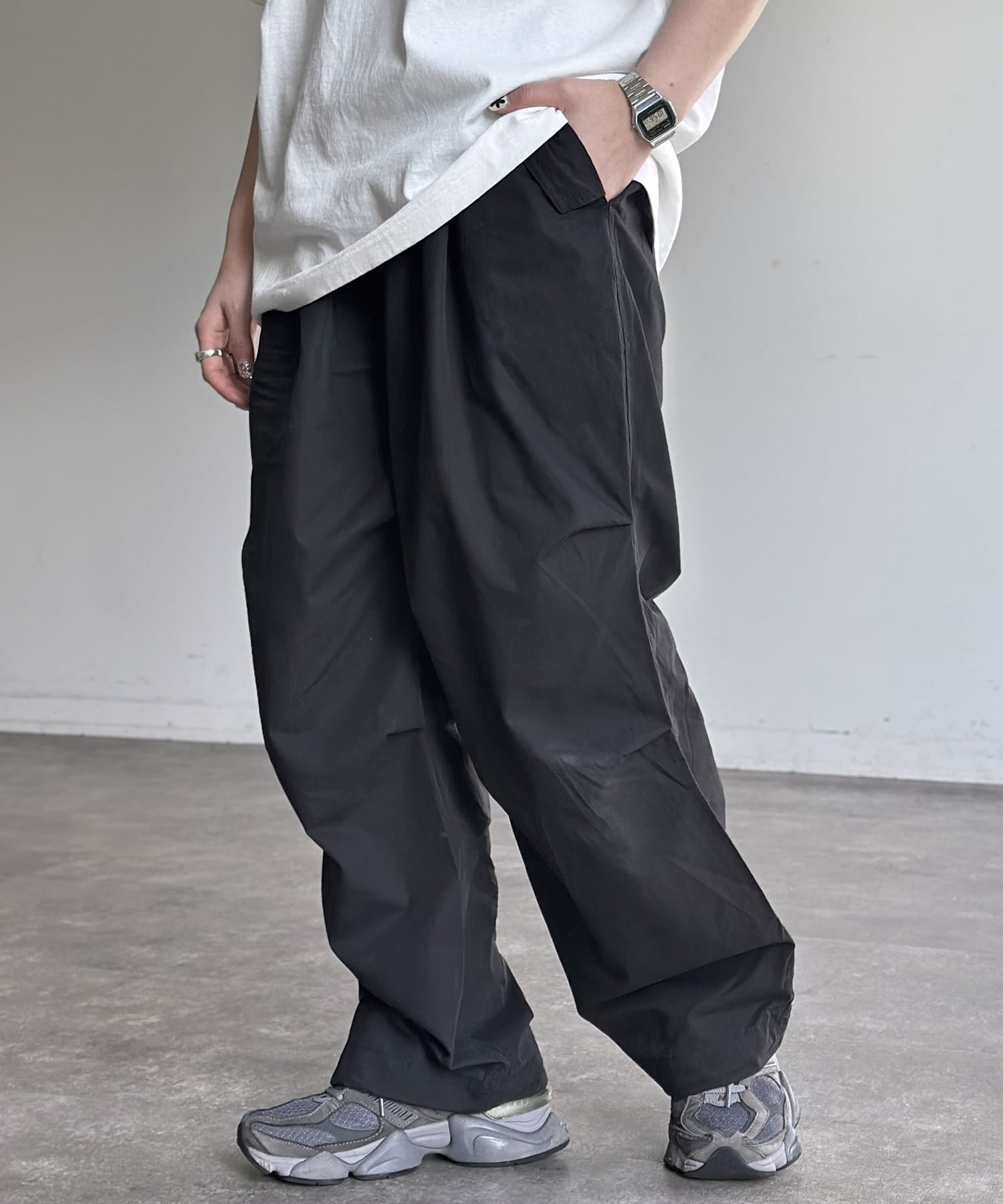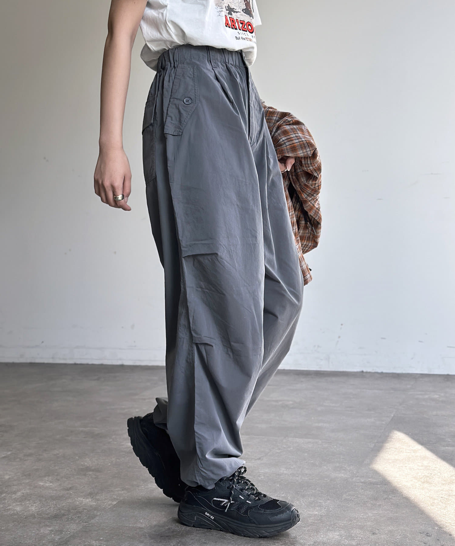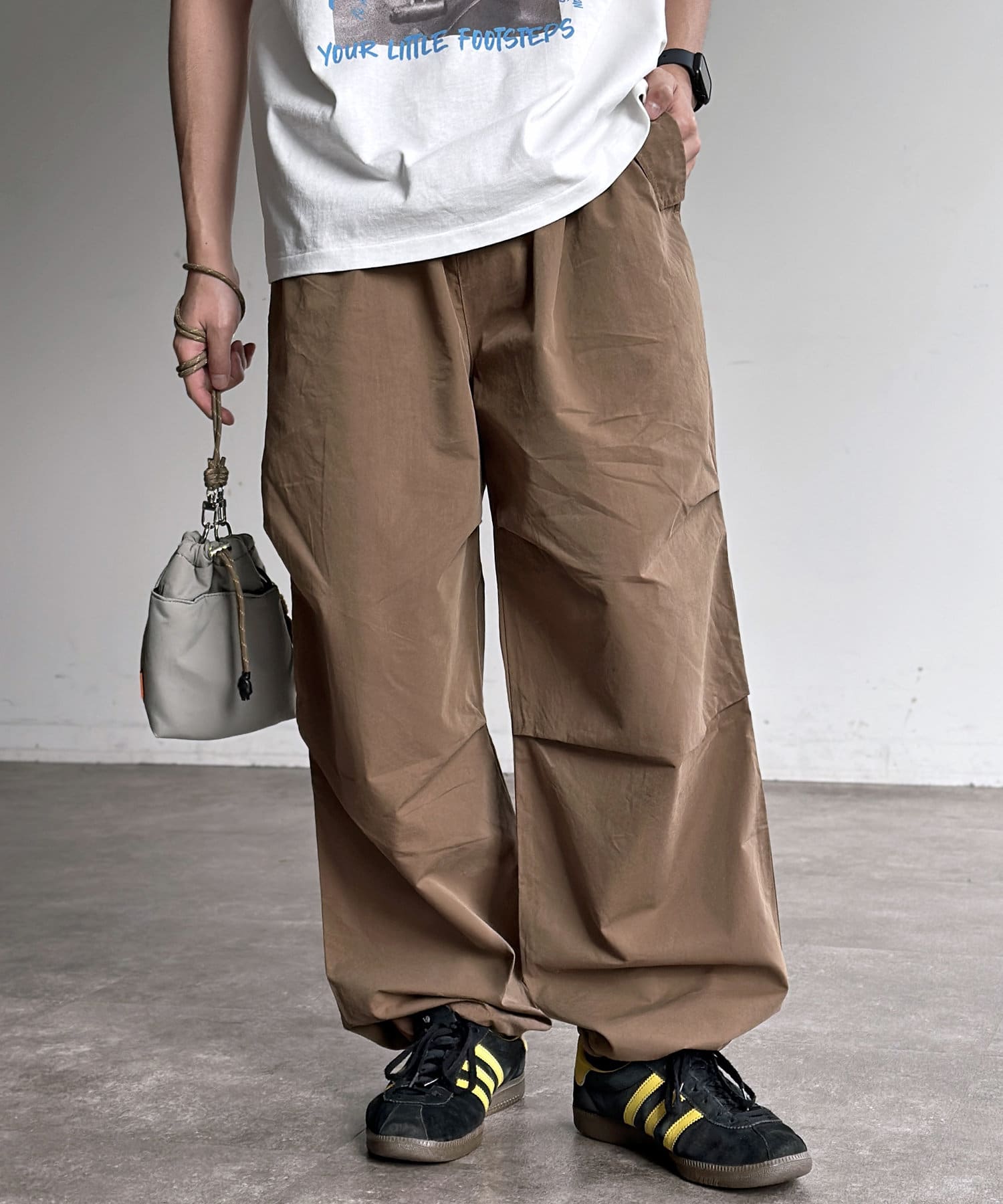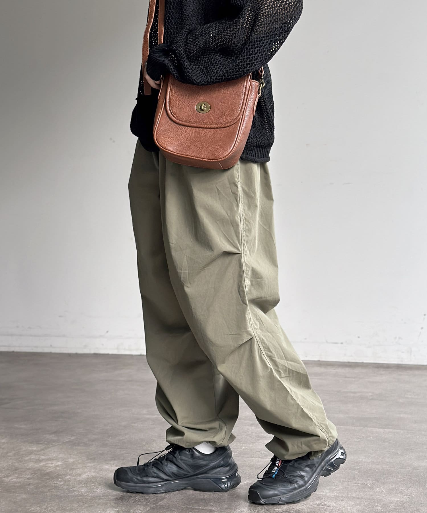 ・丈夫な綿ナイロンの素材とニータックで絶妙なルーズシルエットに