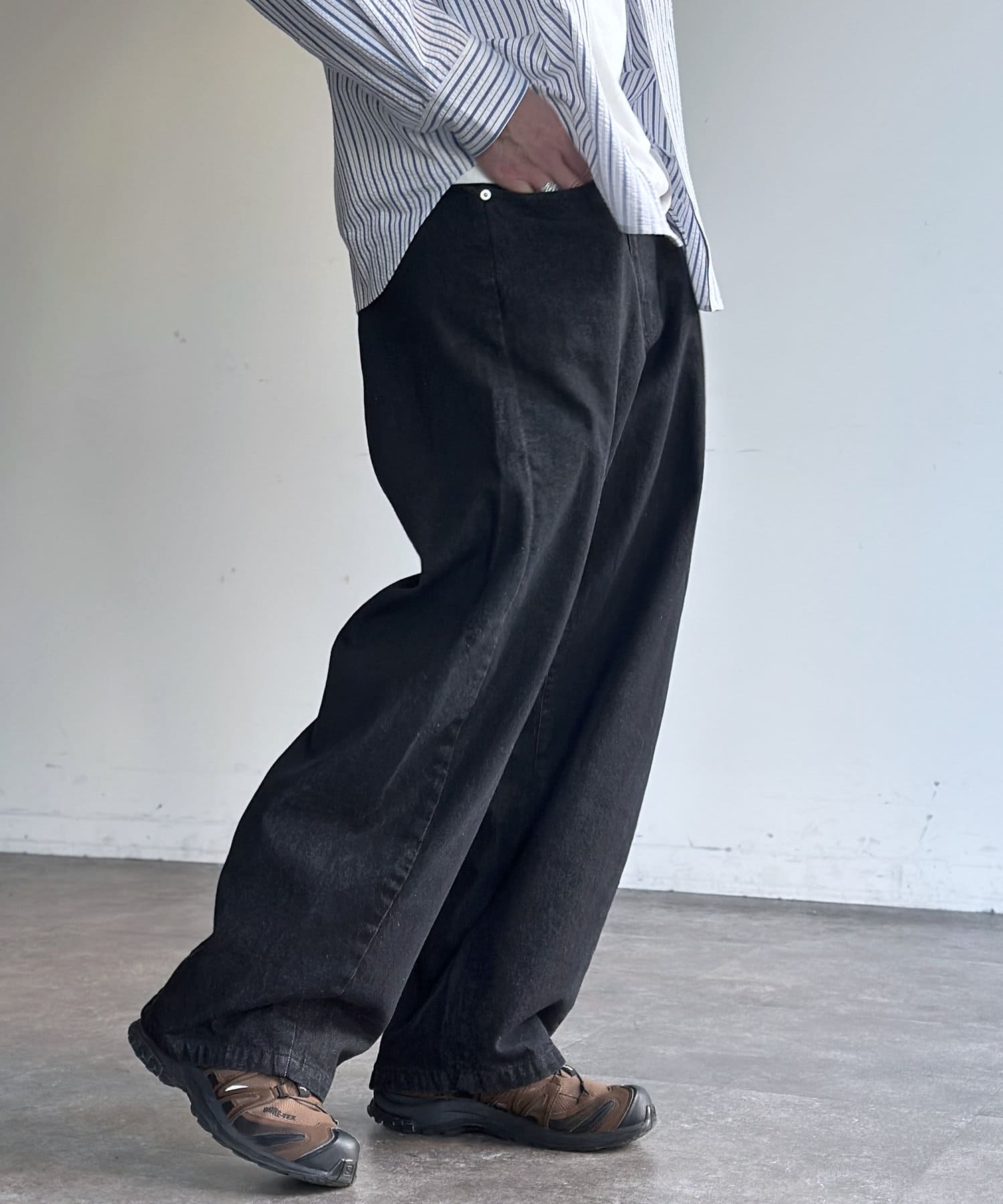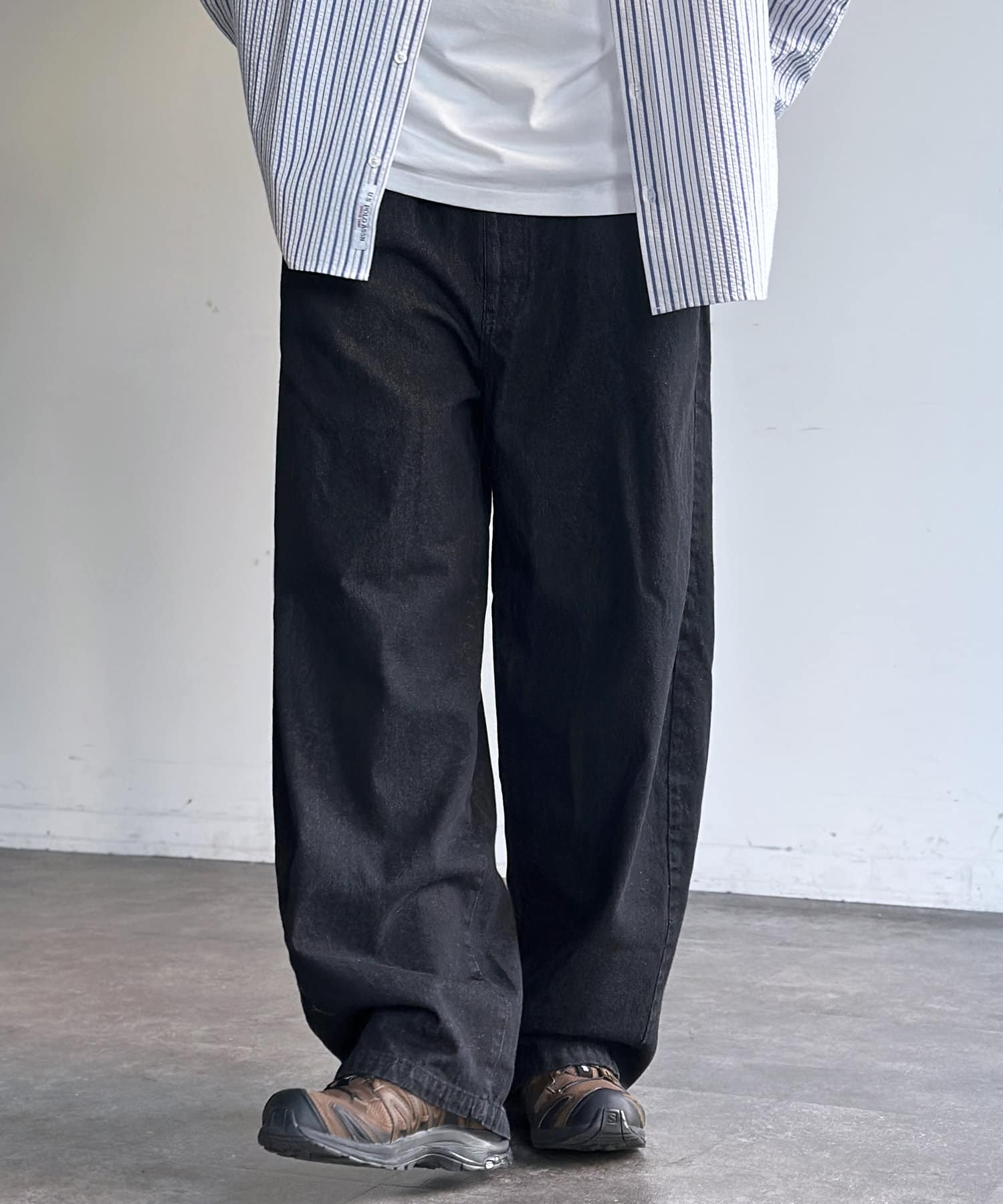 ワイドで抜け感のでるシルエットが魅力のデニムイージーパンツ