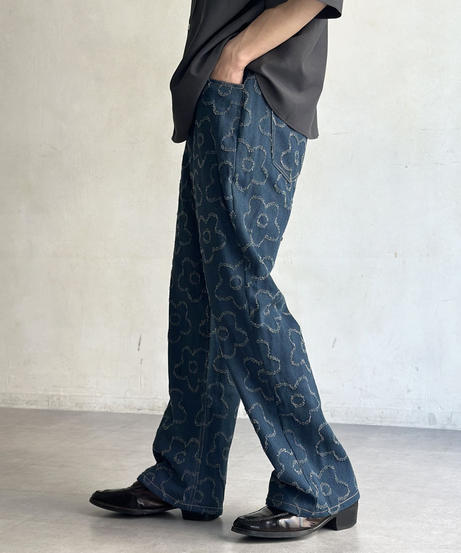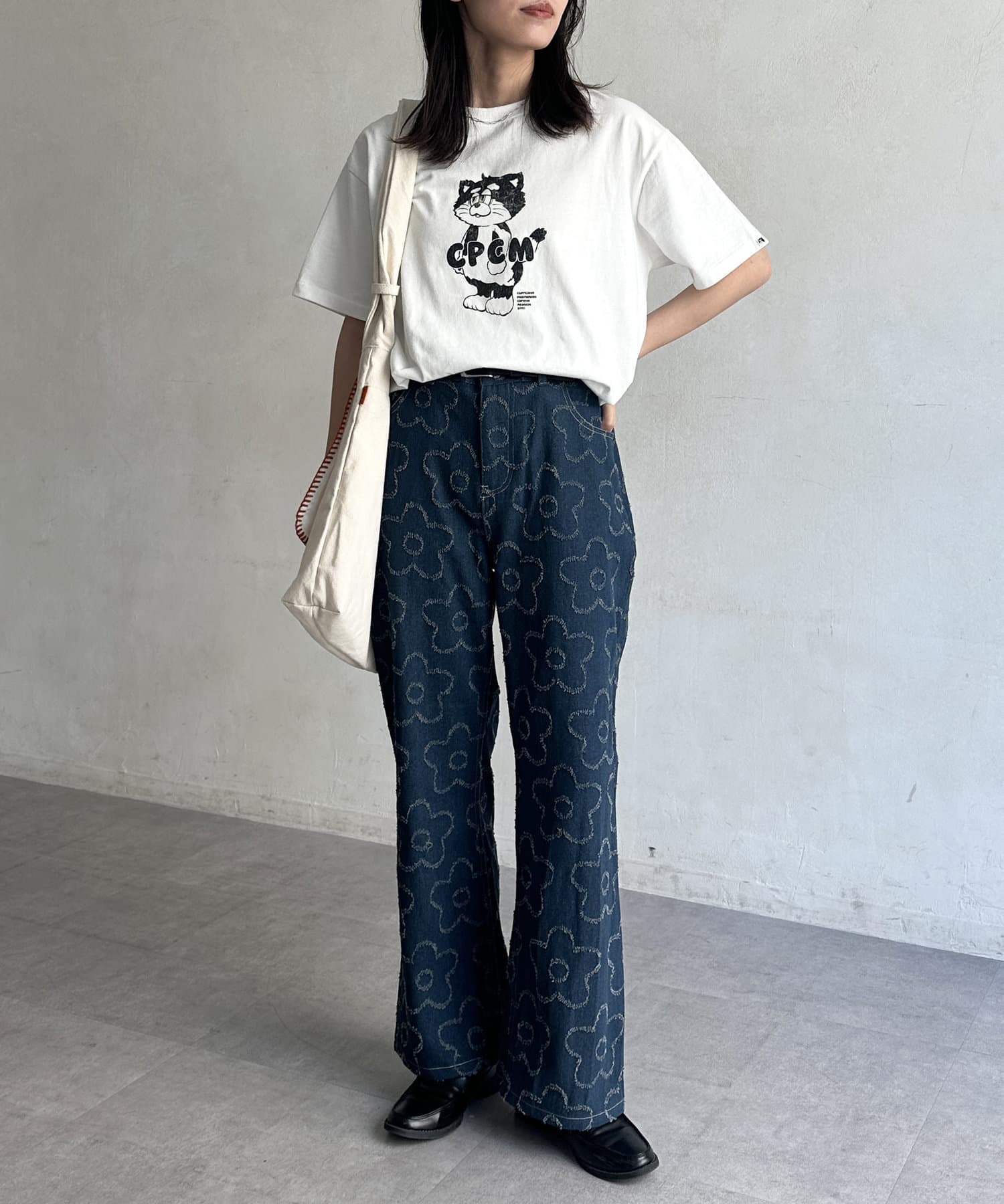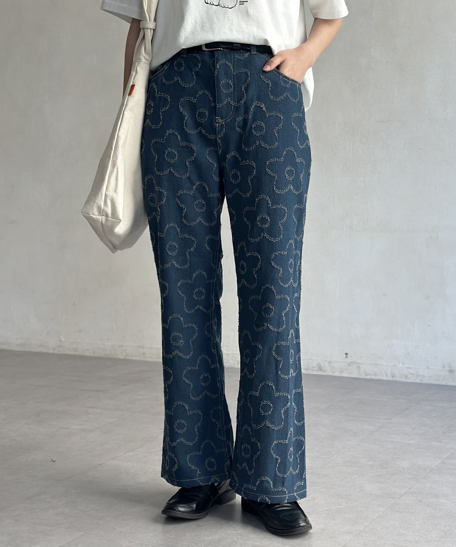 CPCM(シーピーシーエム) フラワーフレアデニムパンツ