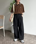 スラックスで合わせたキレイめカジュアルな着こなしも◎