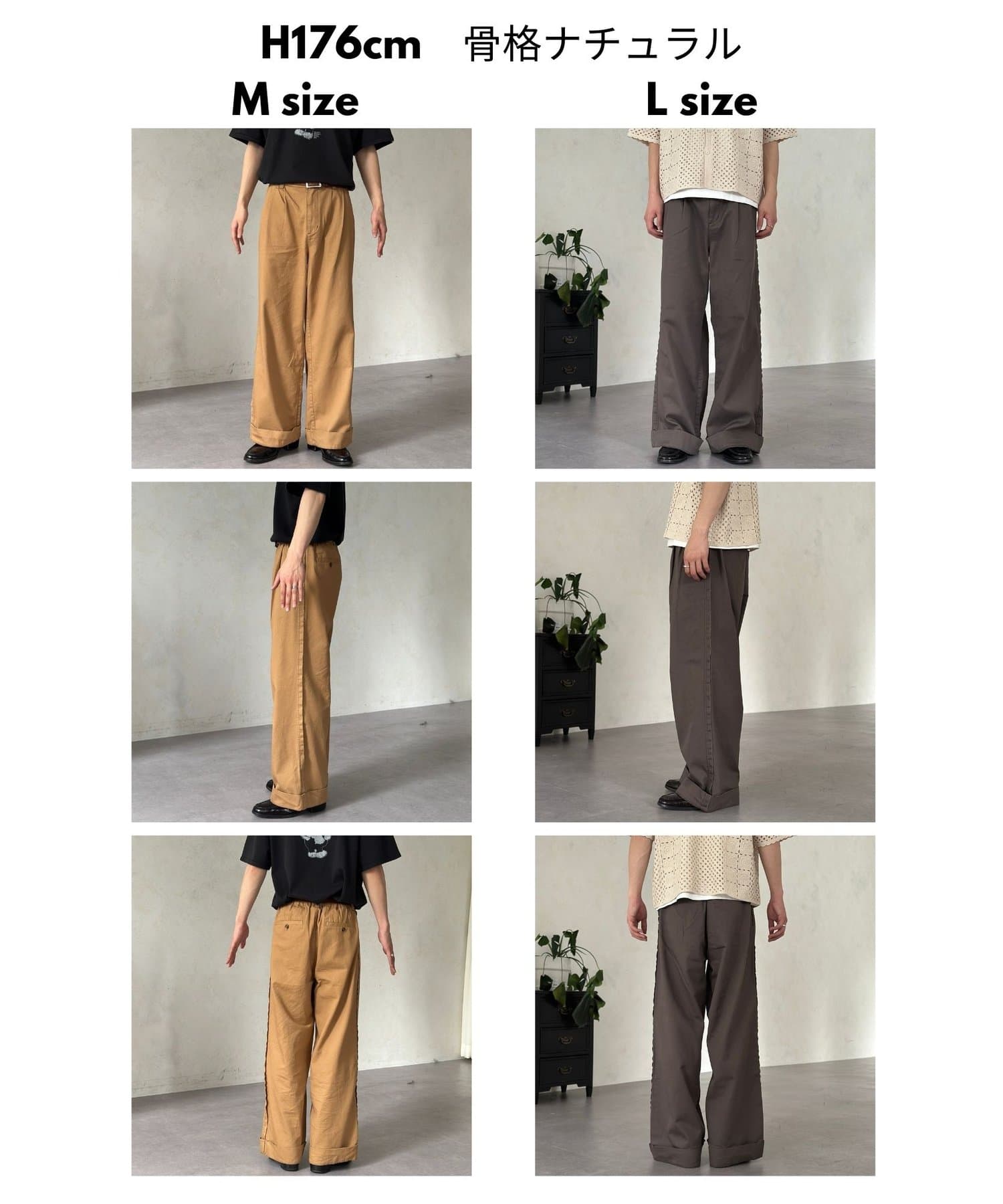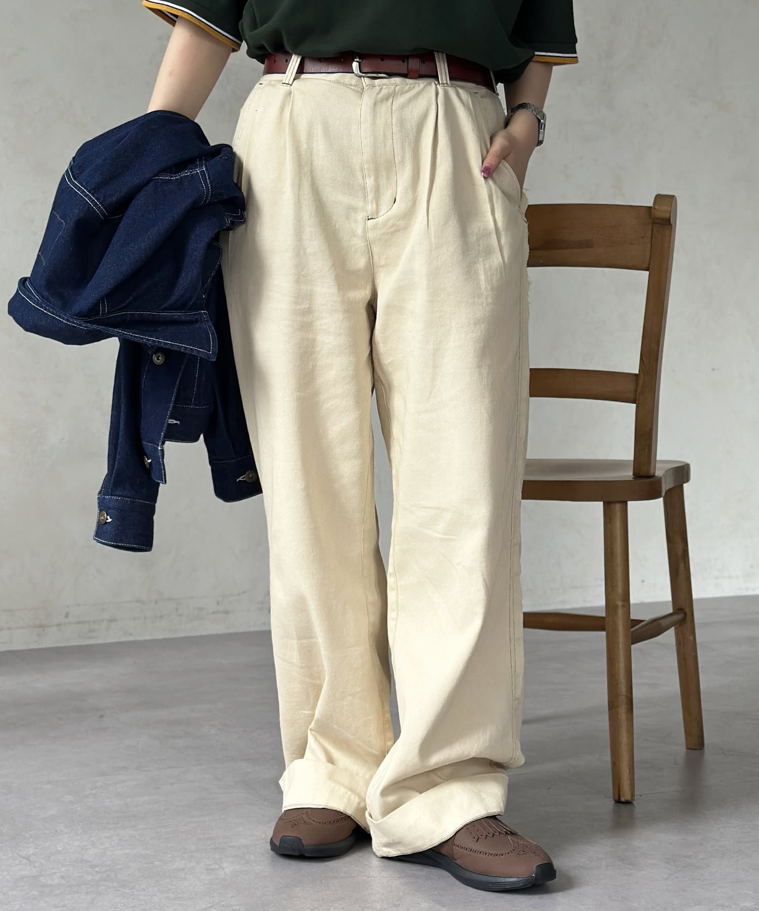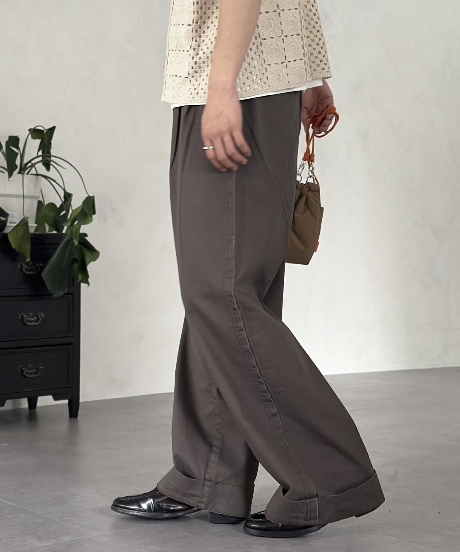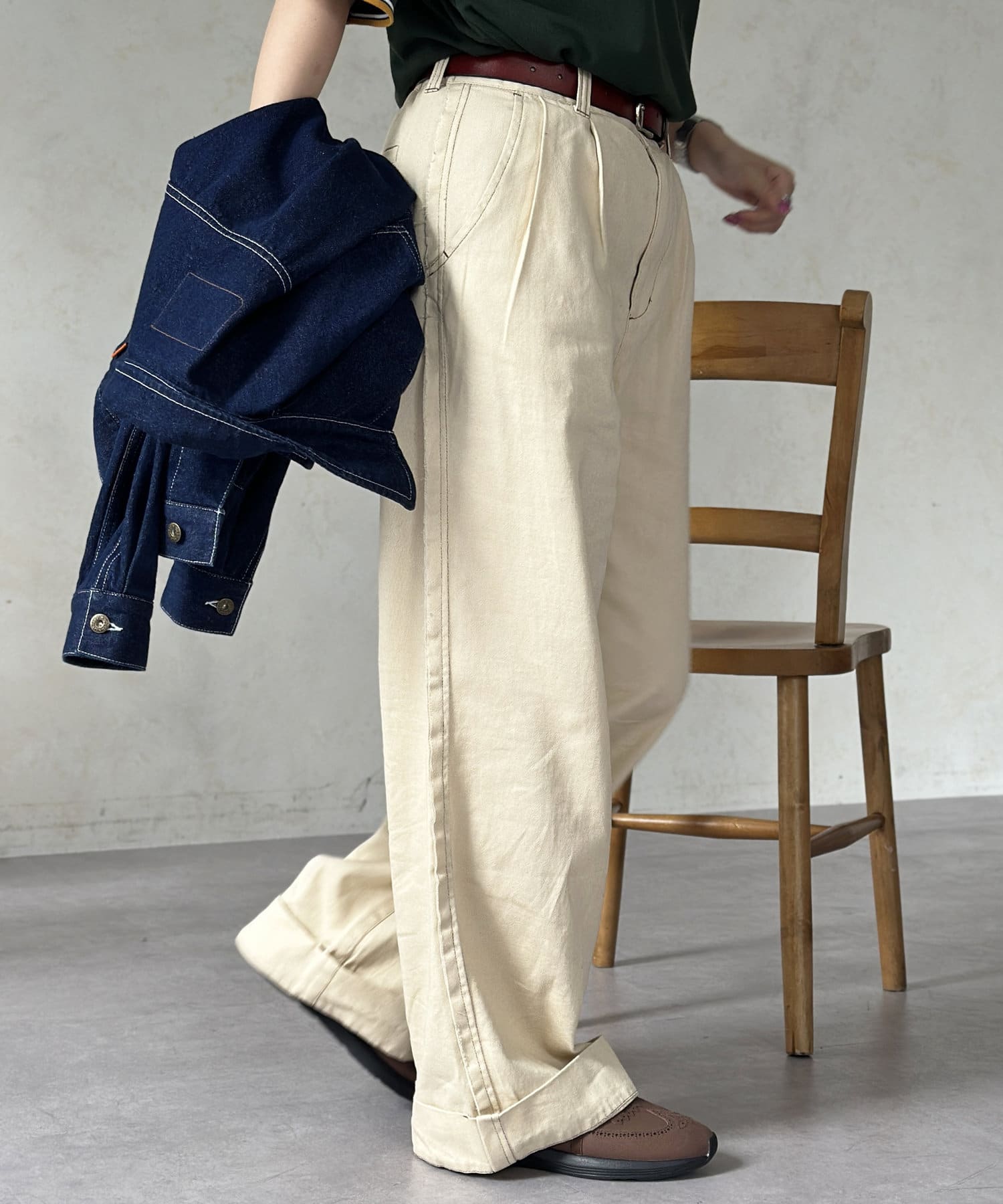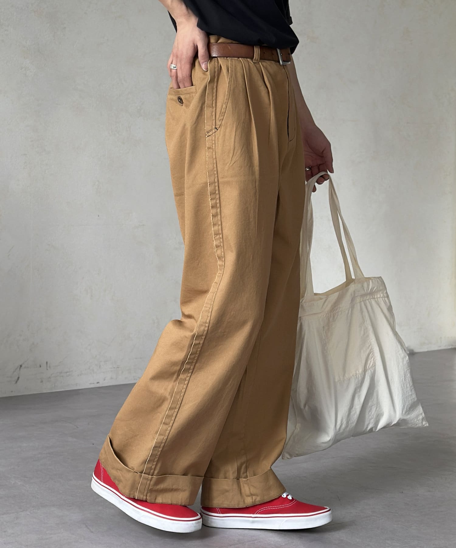 着回し力抜群!ロールアップが施された、美シルエットのワイドチノパンツ