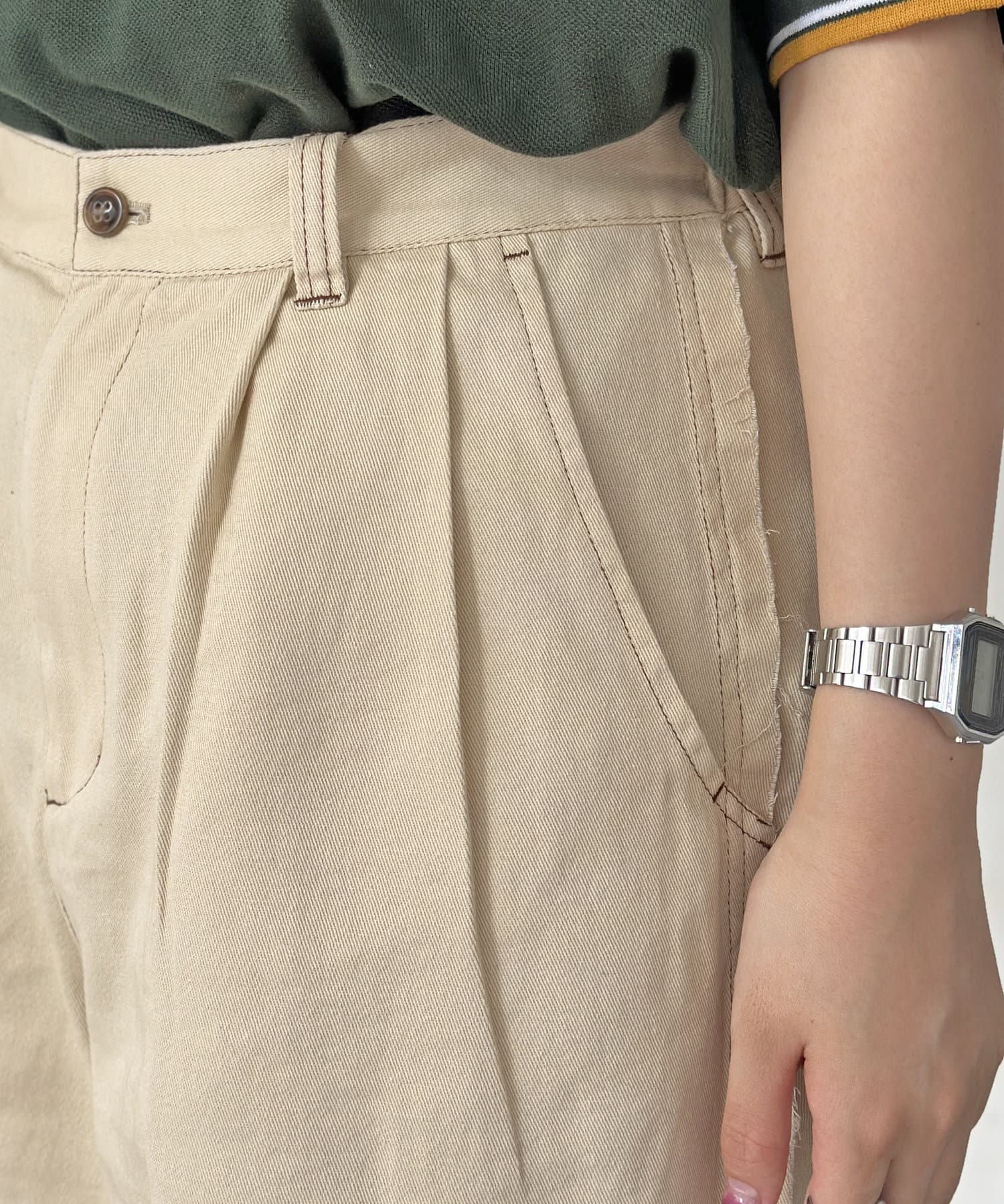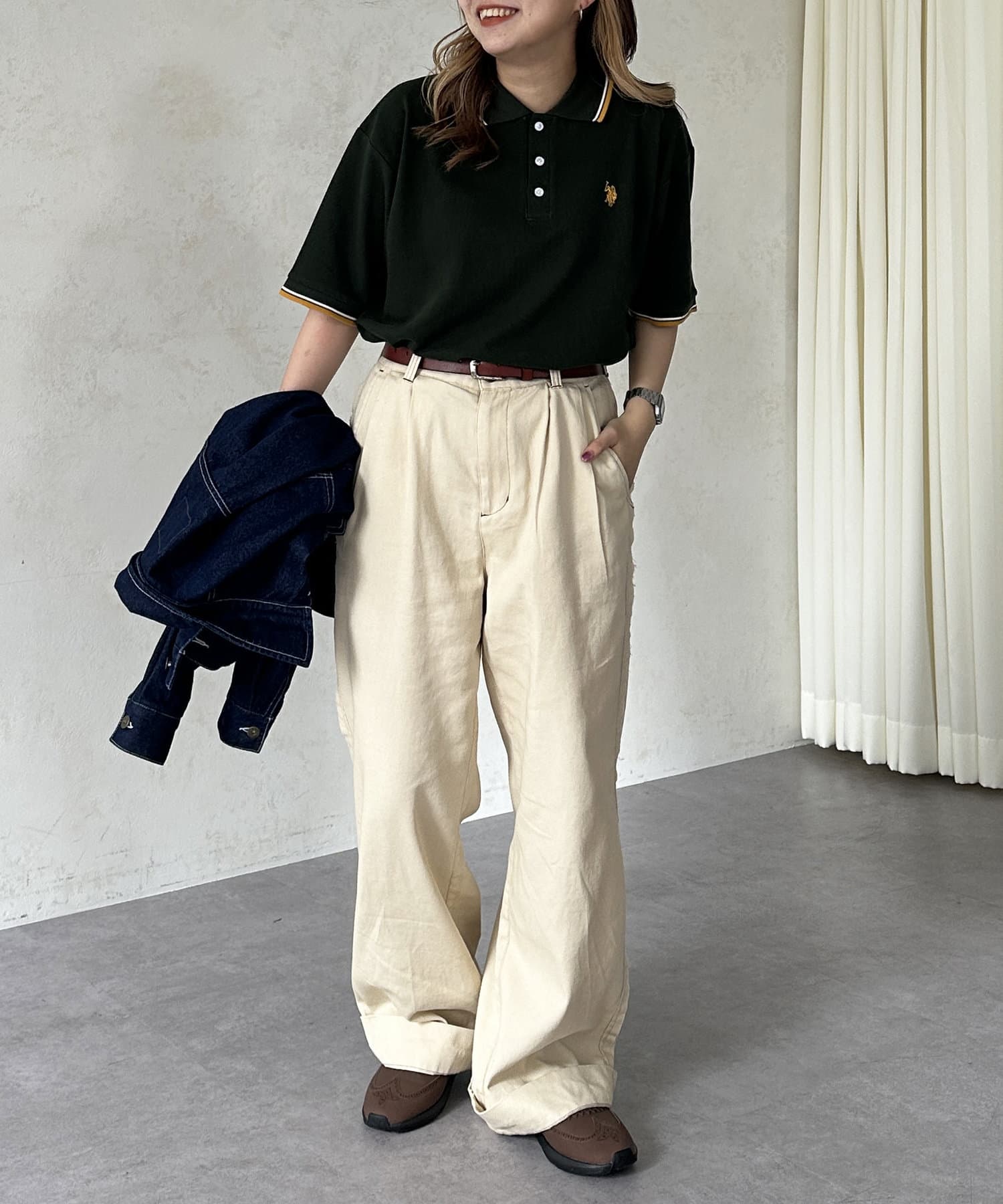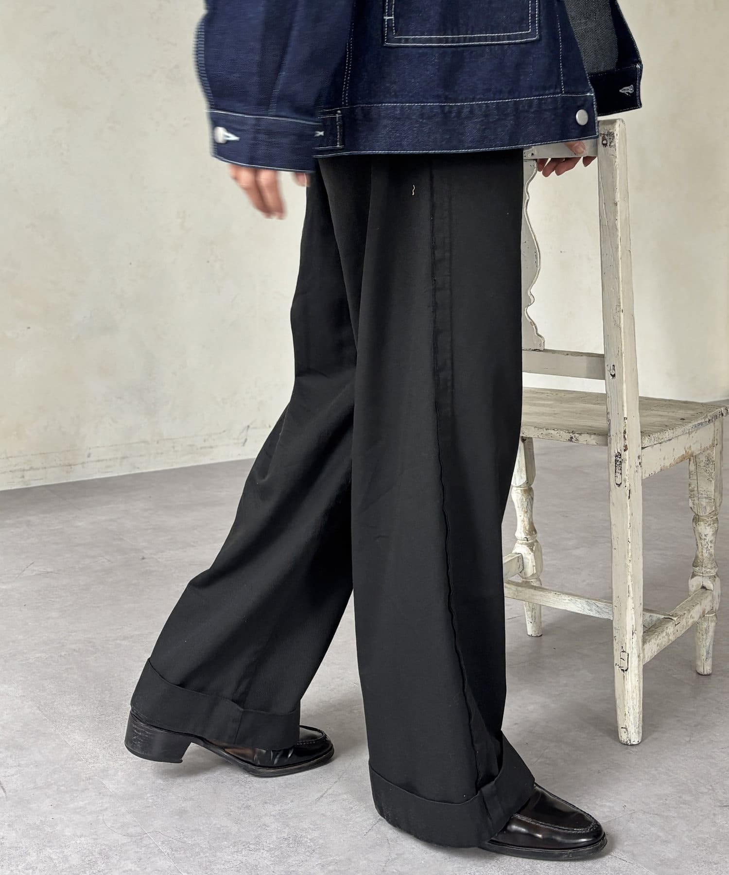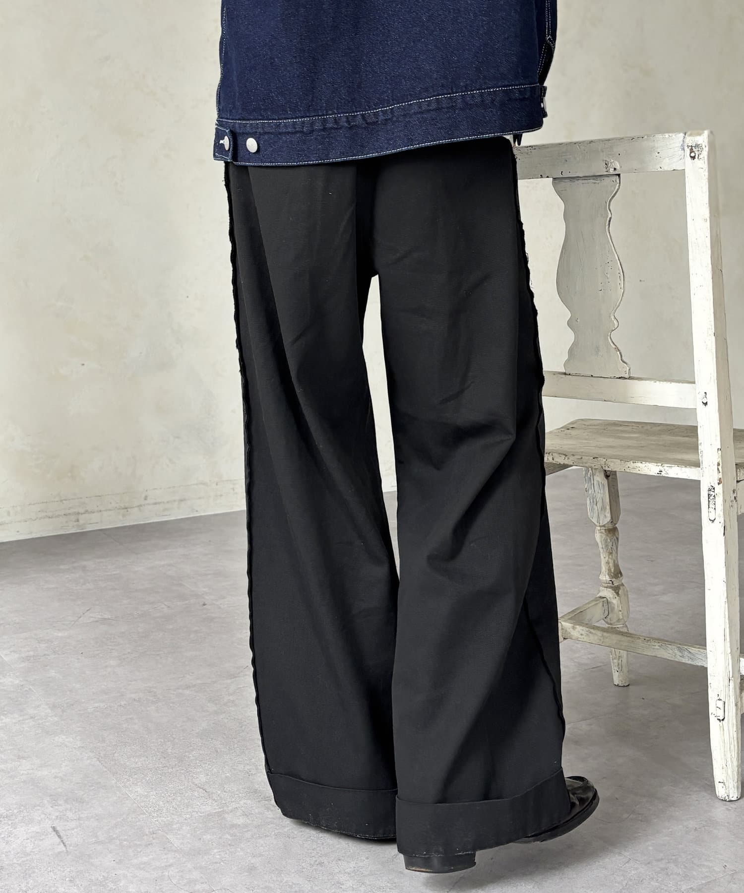 着回し力抜群!ロールアップが施された、美シルエットのワイドチノパンツ
