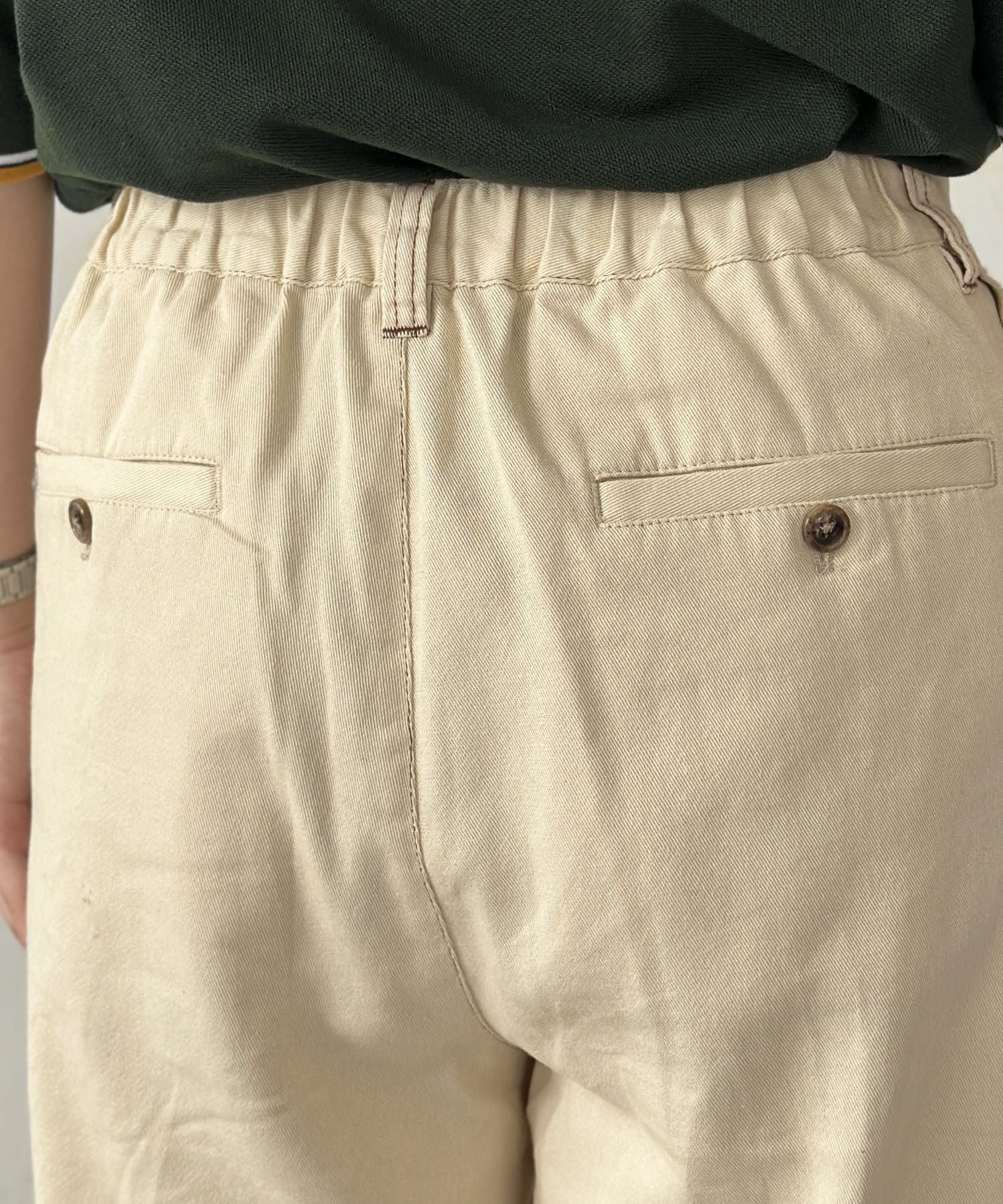・バックウエストはゴム仕様。ベルトループも有り、様々なコーディネートが可能◎