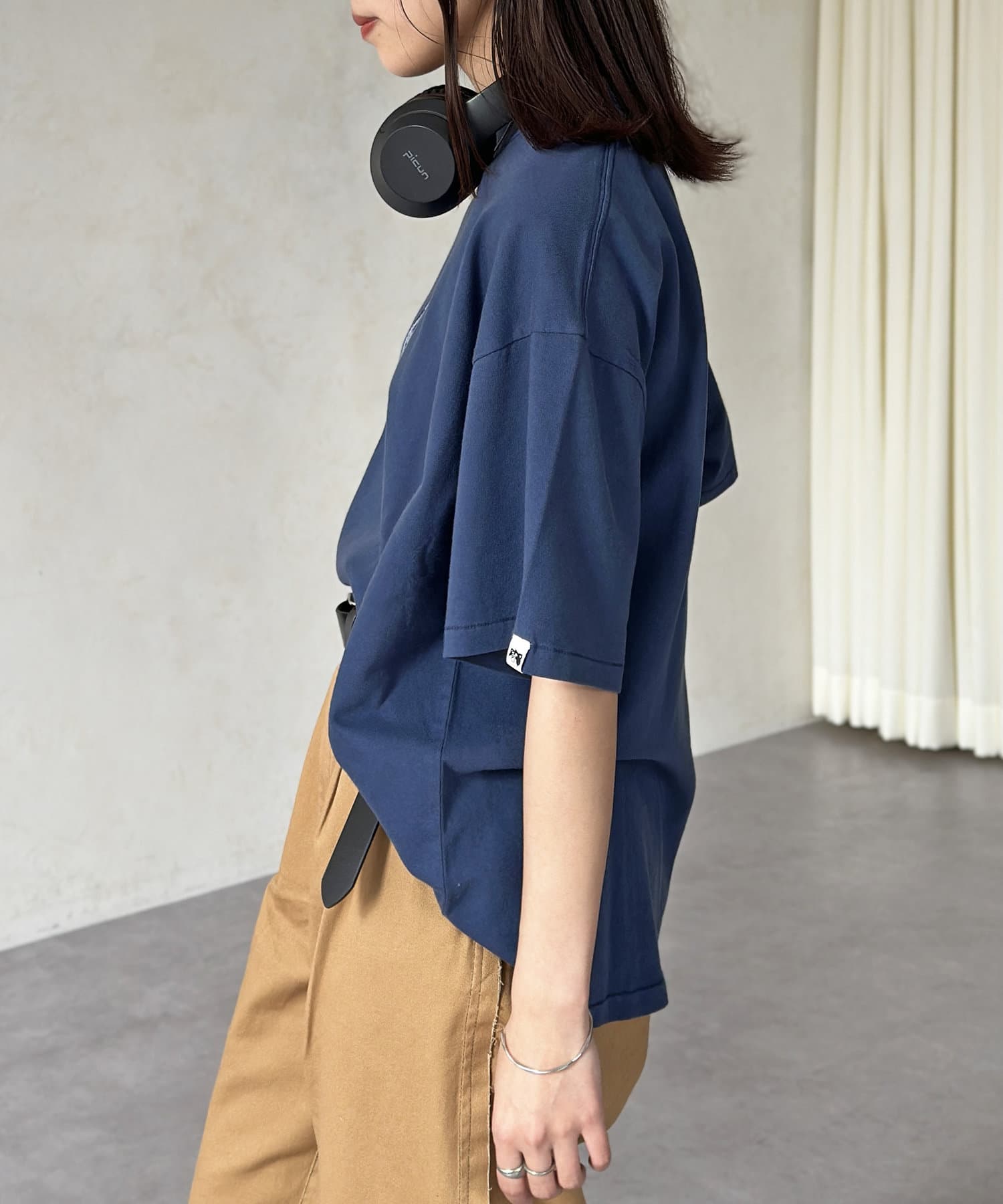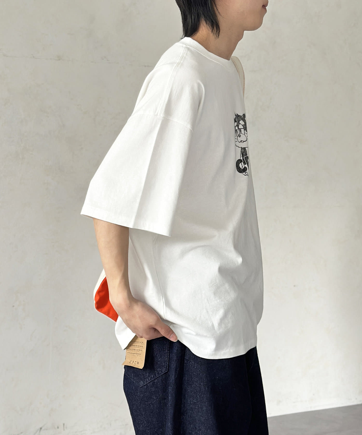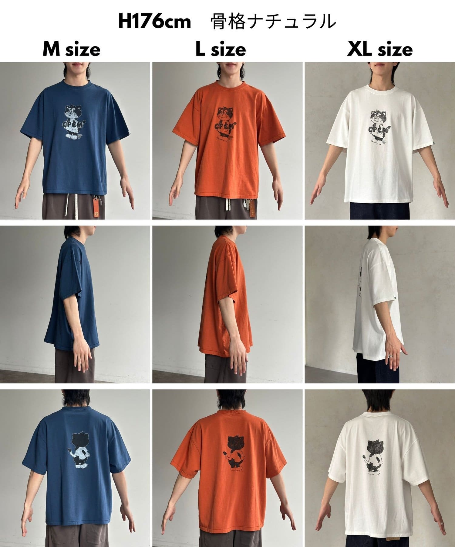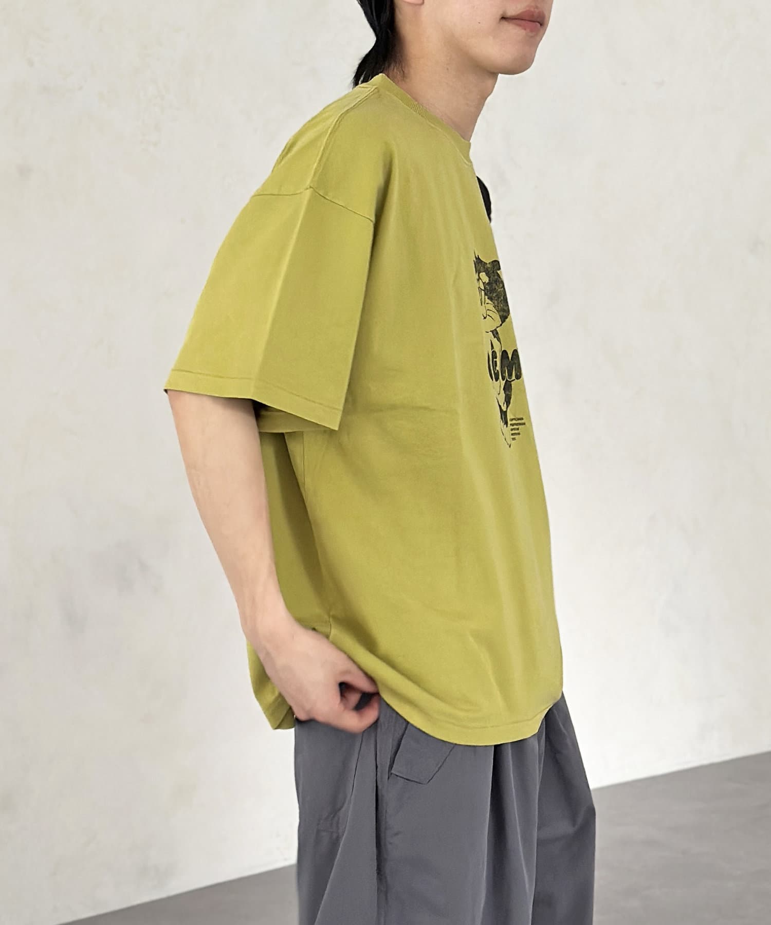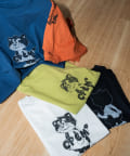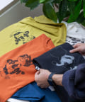 ブラック、ネイビー、オレンジ、ライムグリーンなどのカラーTは古着ライクな風合いが出るように、ピグメント加工を施しています。