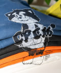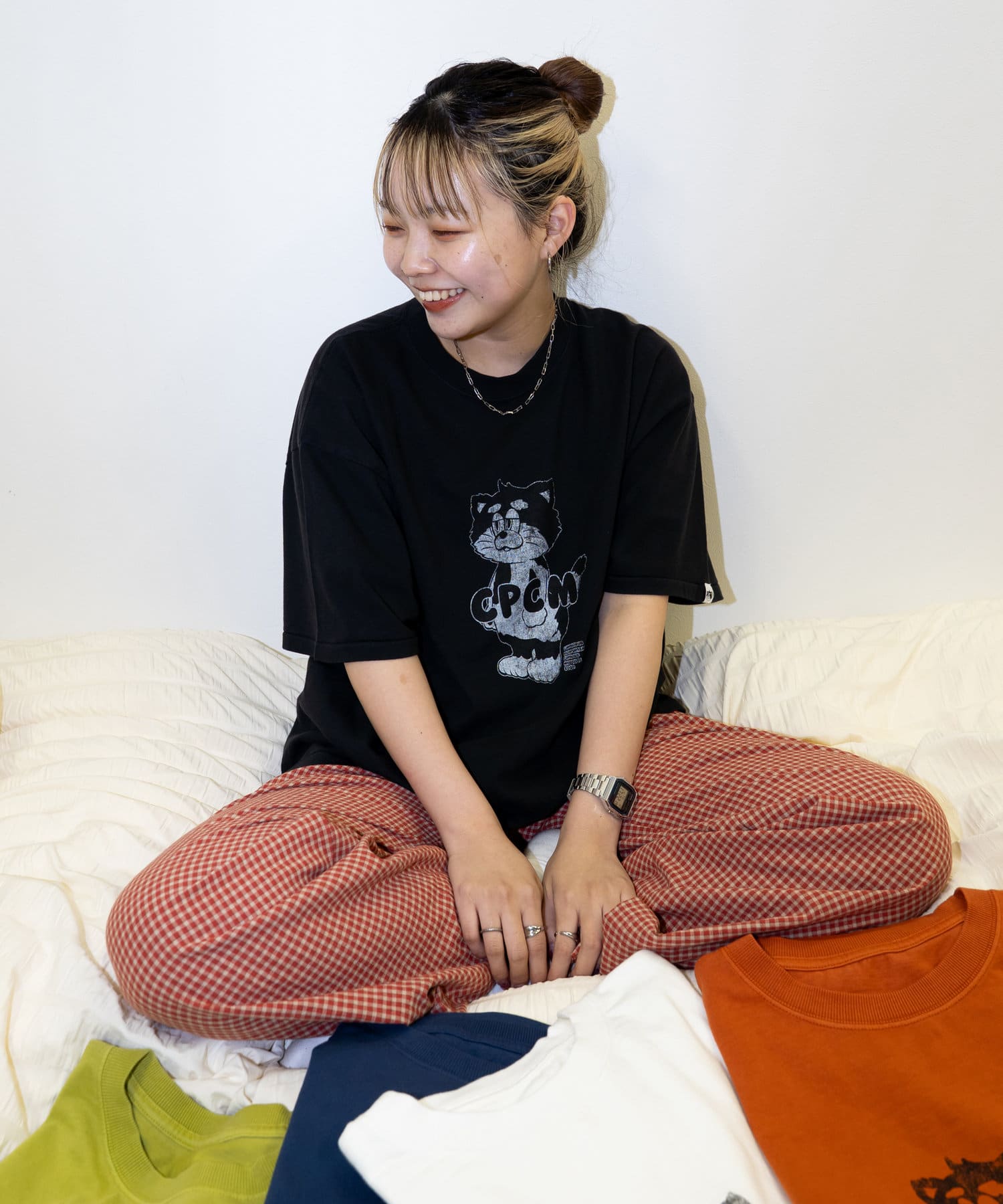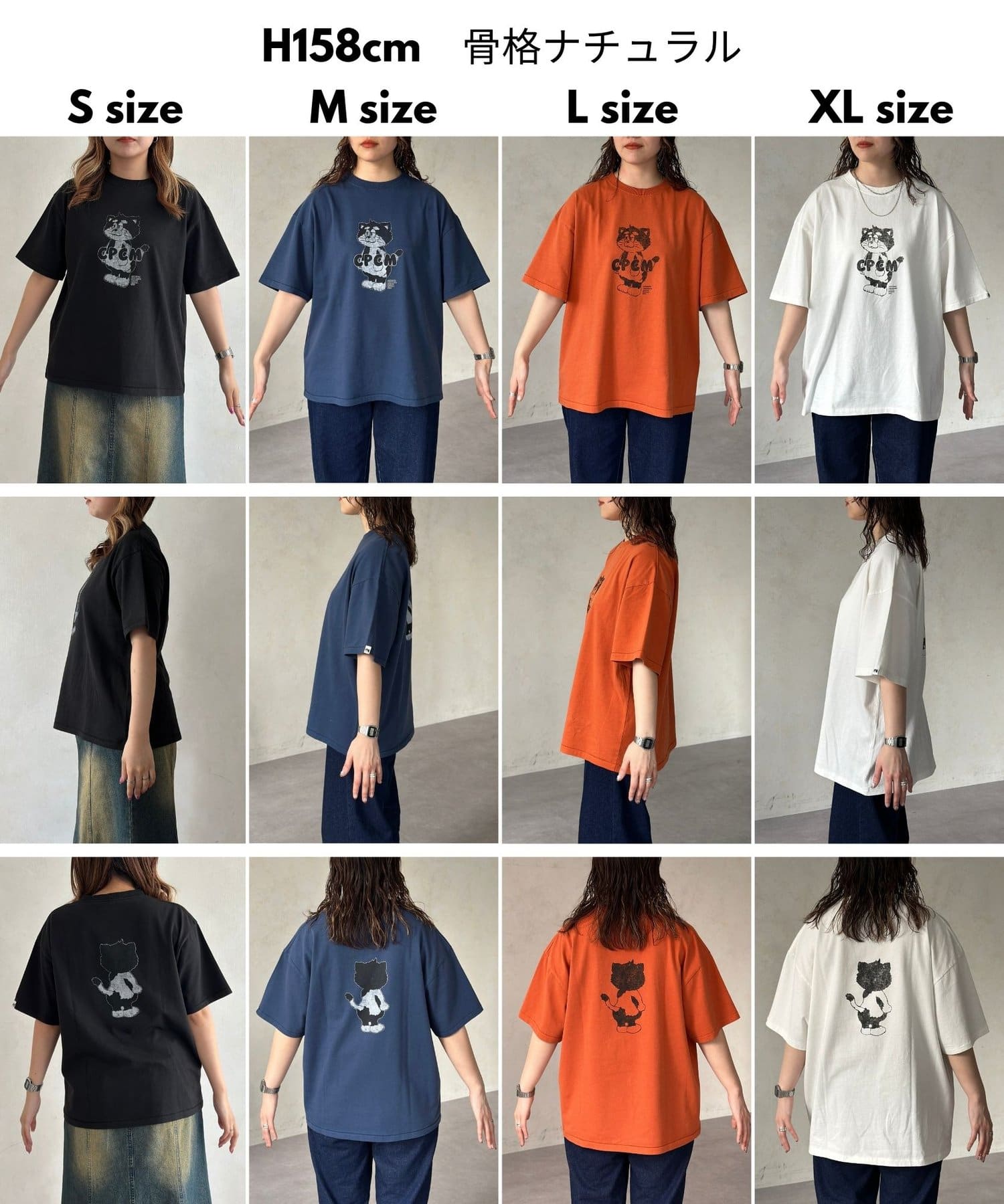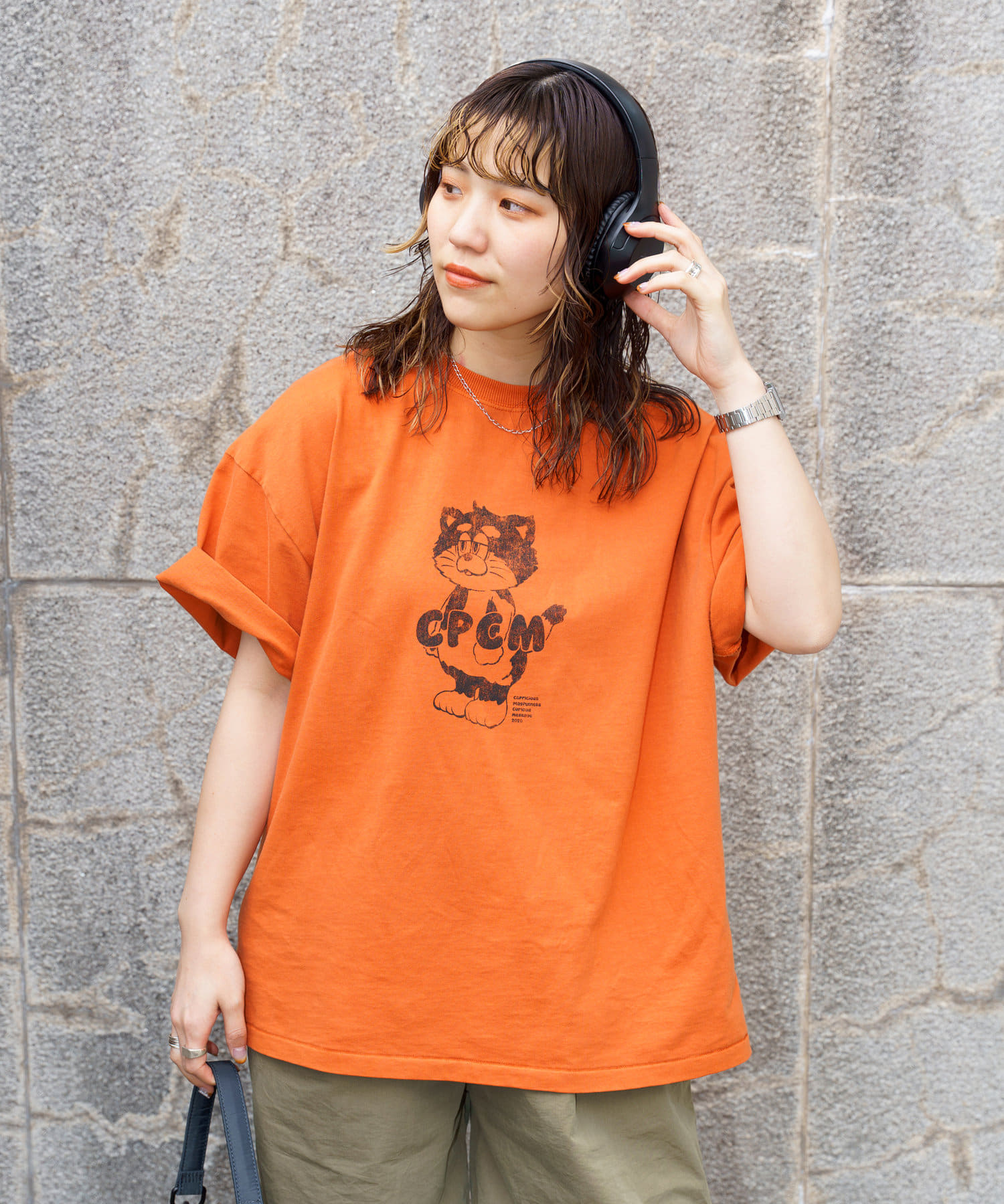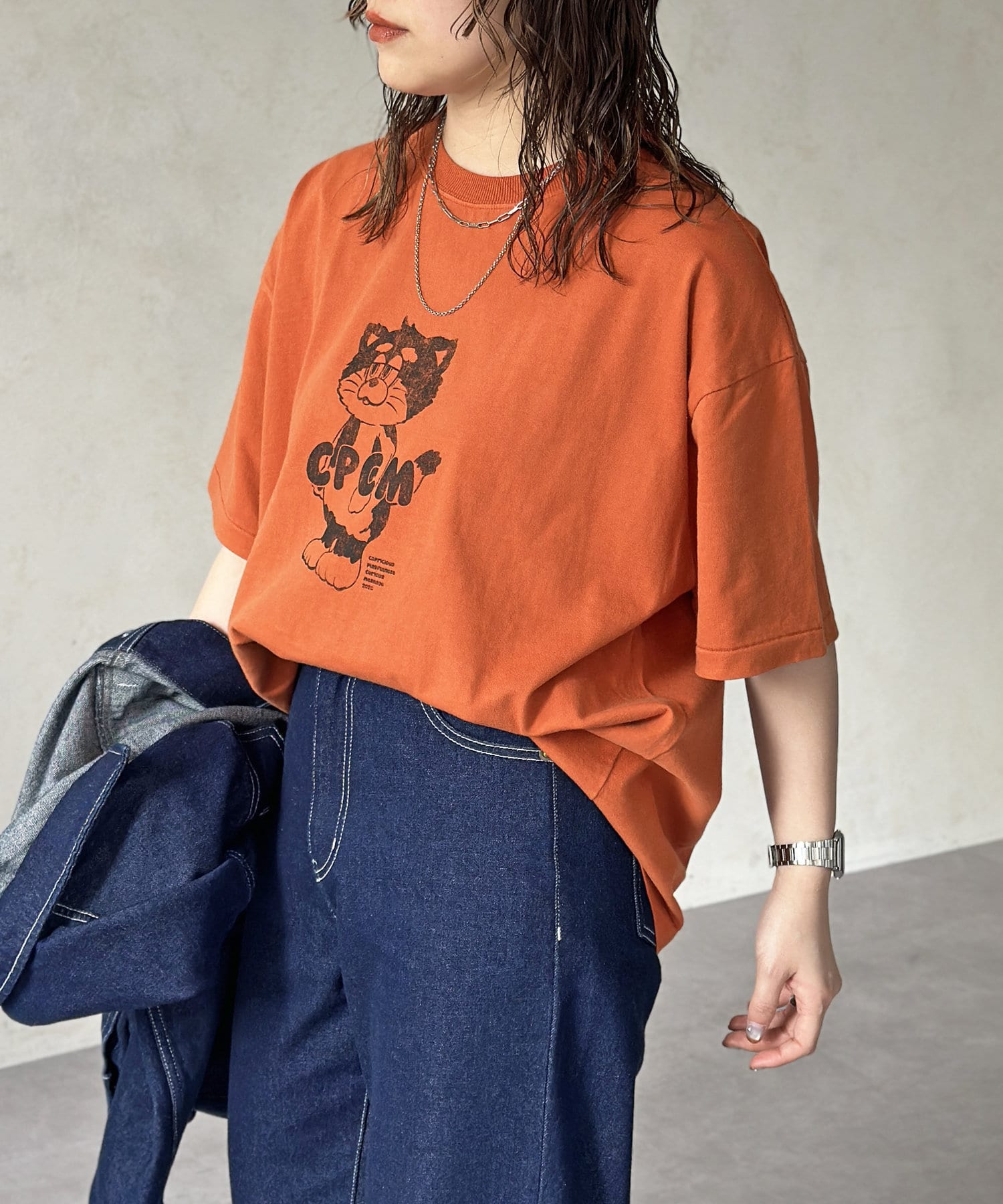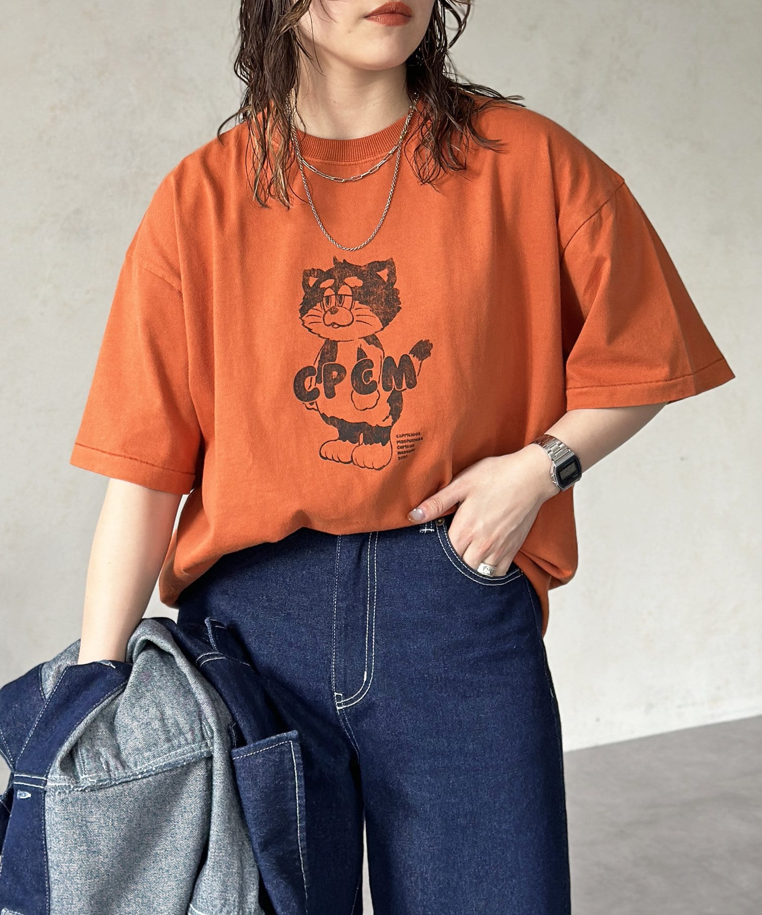 ブラック、ネイビー、オレンジ、ライムグリーンなどのカラーTは古着ライクな風合いが出るように、ピグメント加工を施しています。