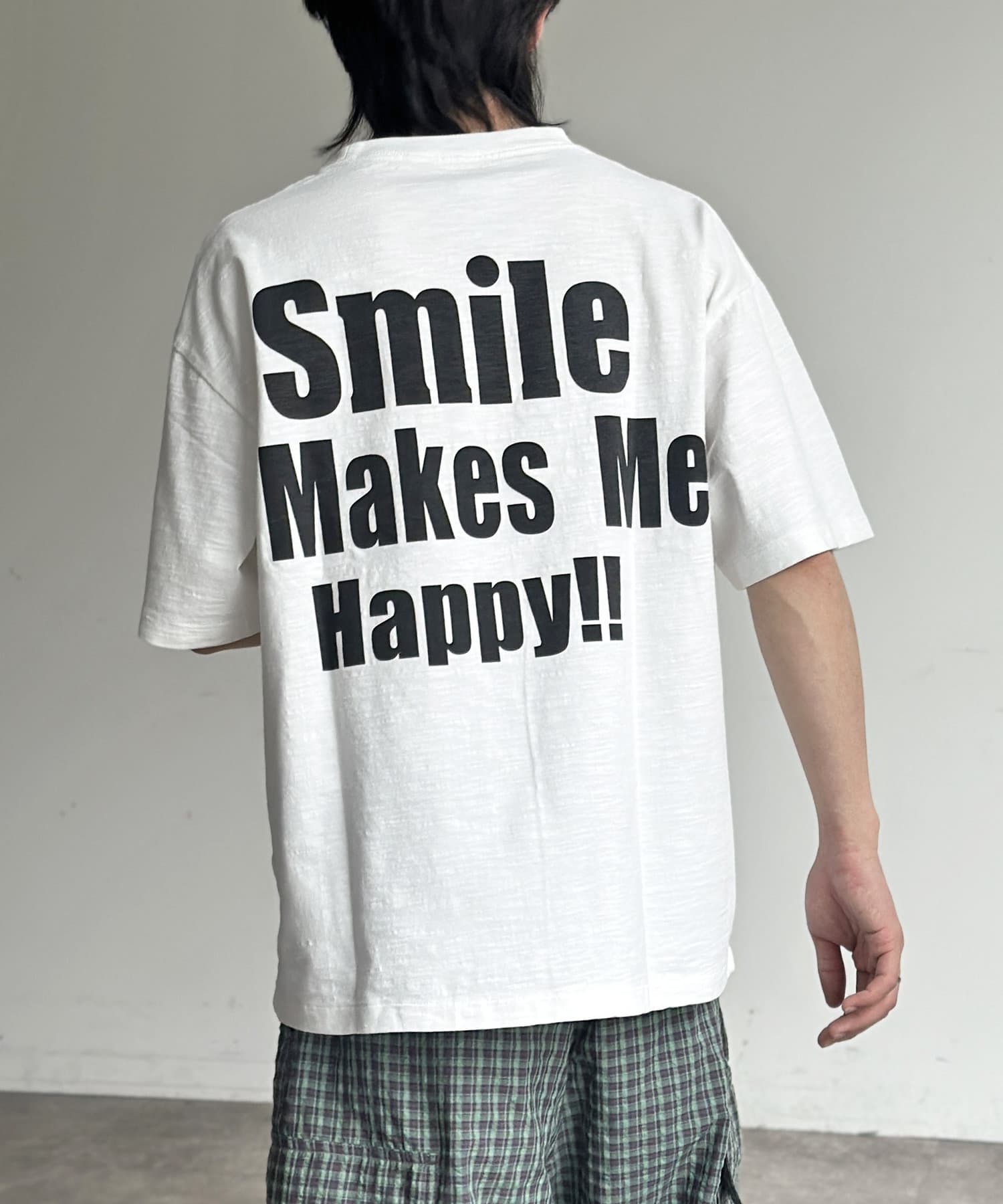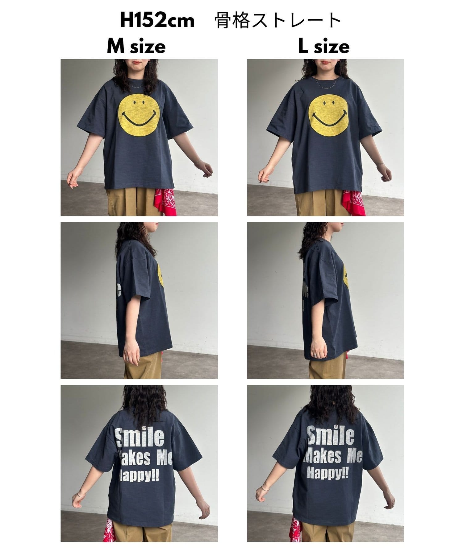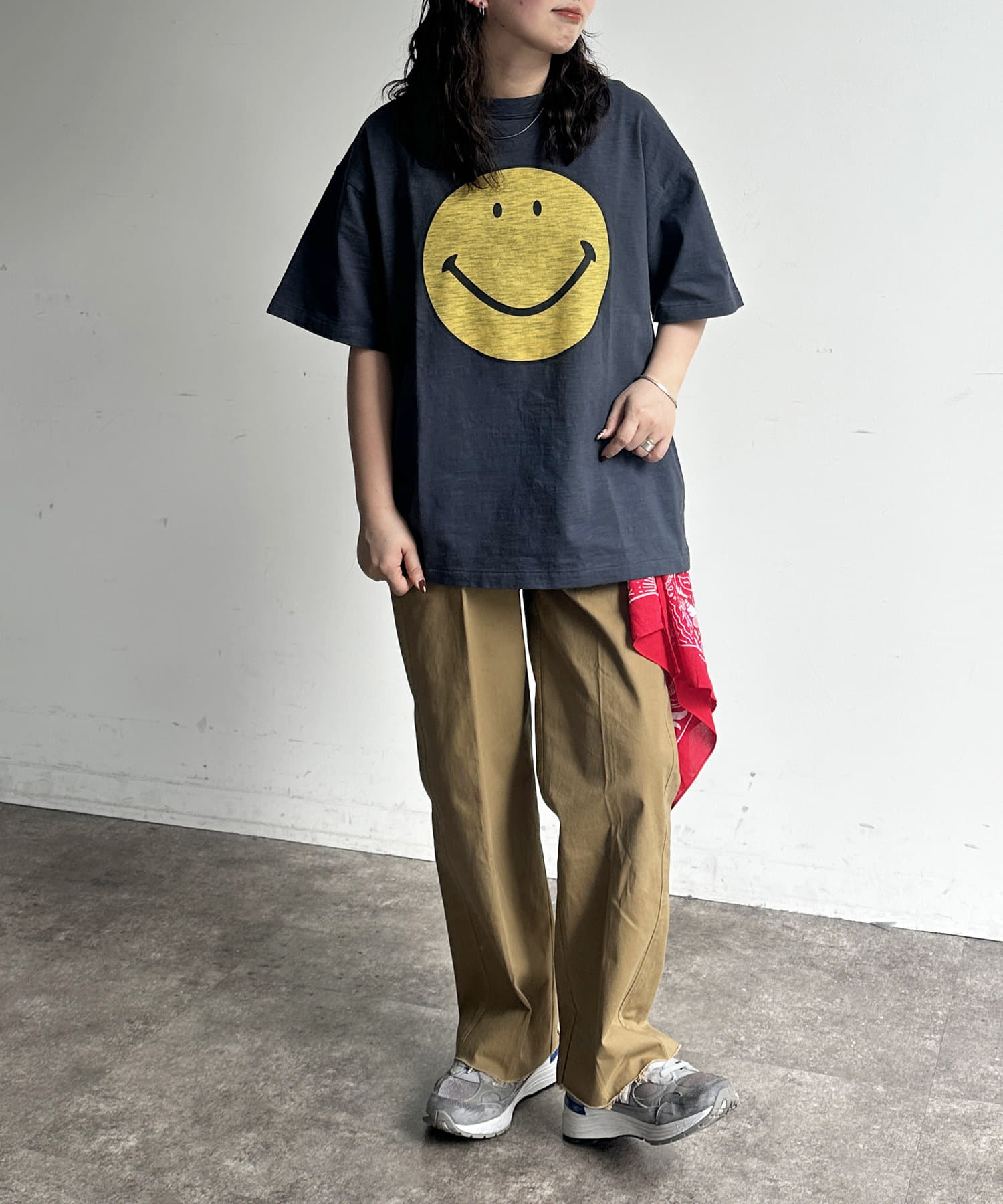 暑い季節も快適に過ごせます。大きめなサイズのスマイリーが、コーディネートのアクセントになってくれる一枚です。