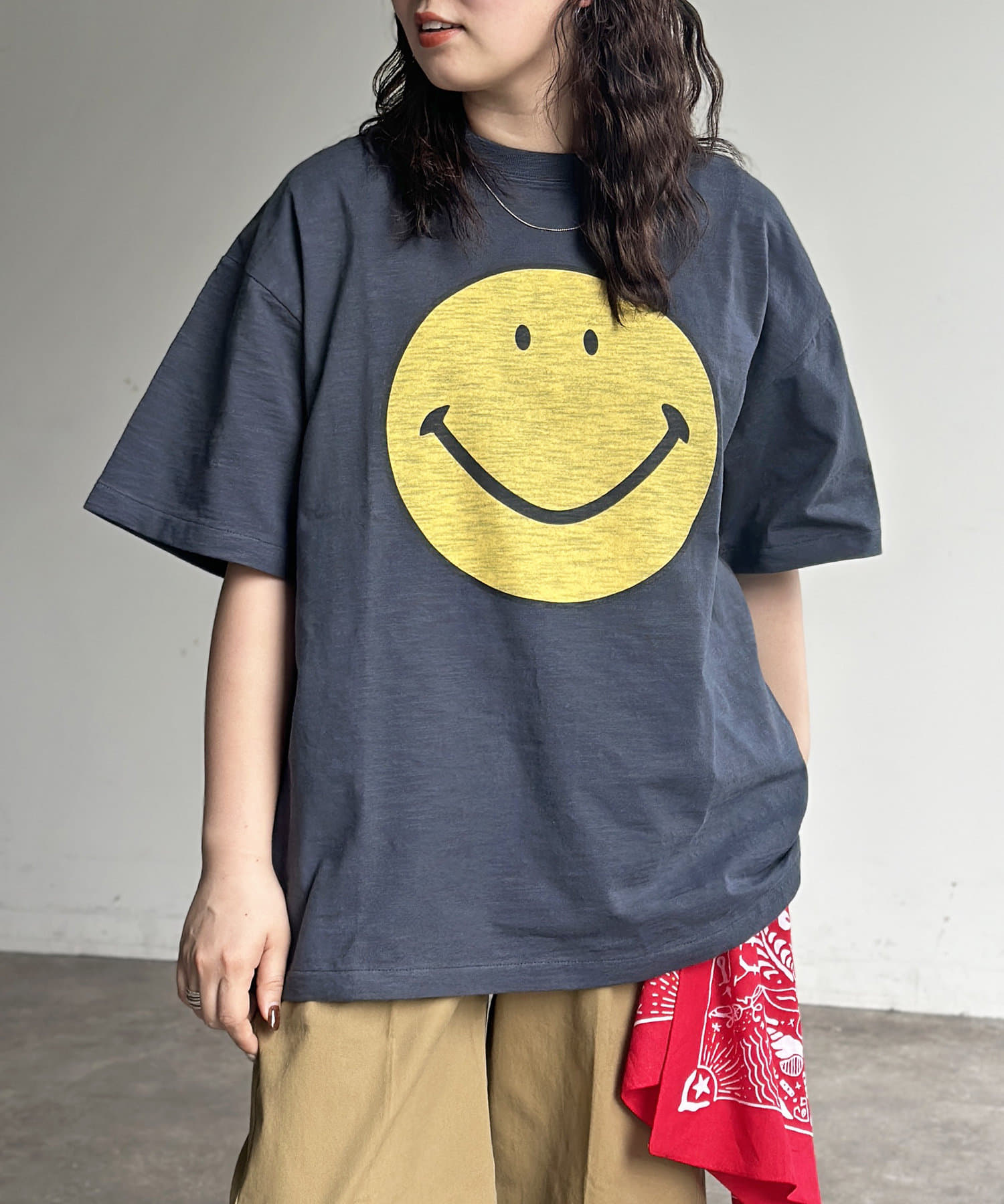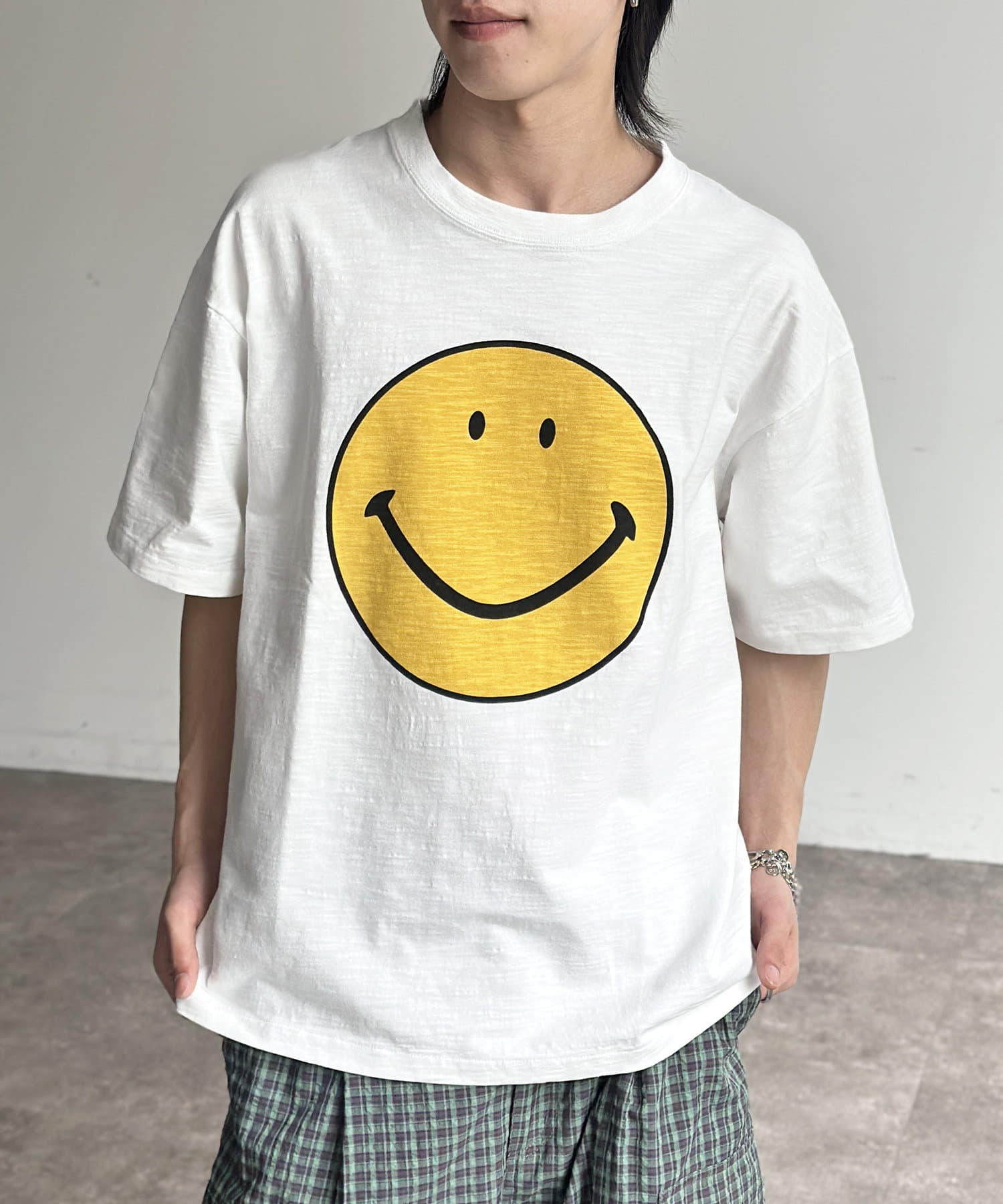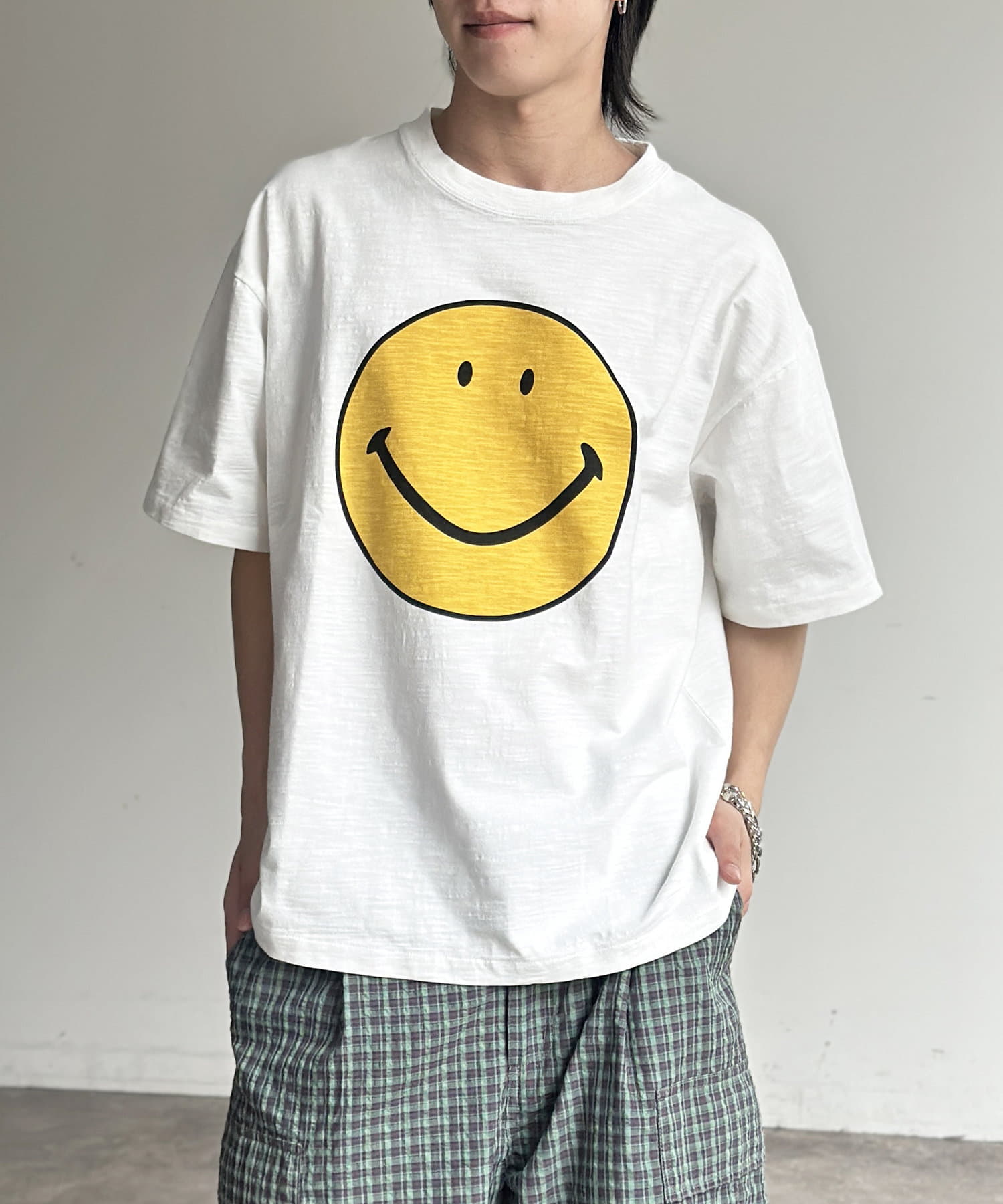 スマイリーマークが存在感抜群!ヴィンテージライクなスラブTシャツ