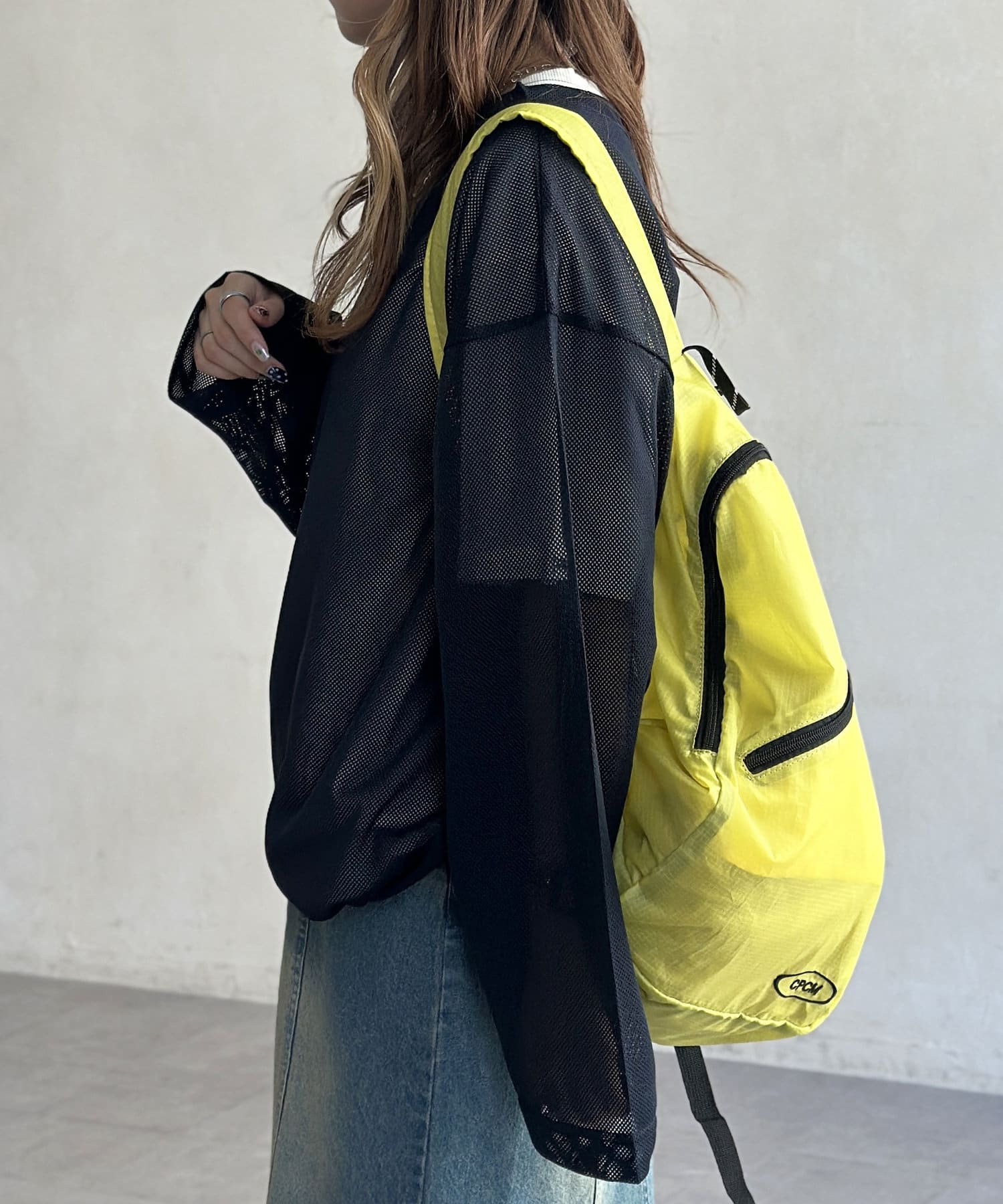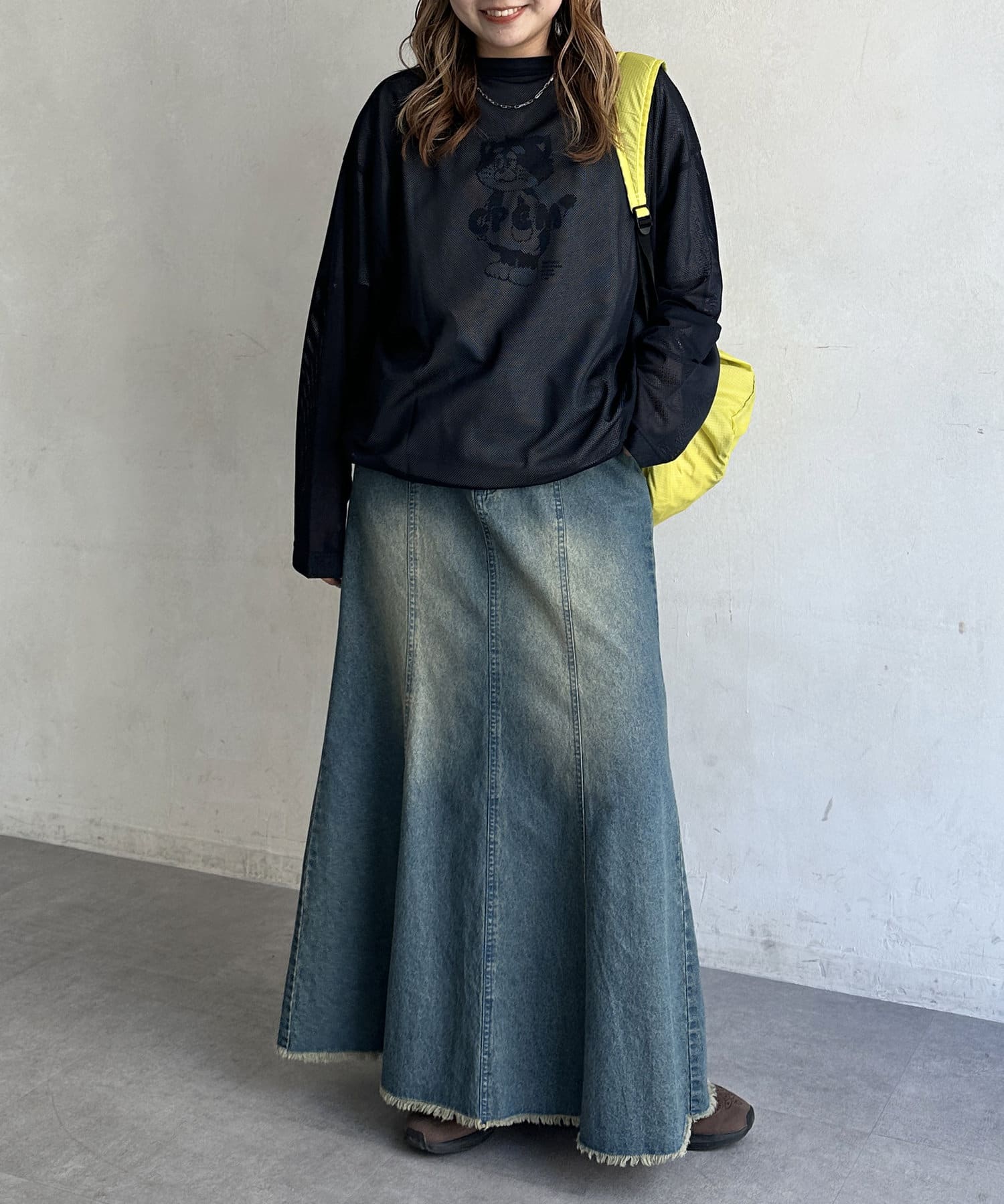 ・ワイドパンツやスカートと合わせて、ストリートテイストなスタイルに。キャップやスニーカーをプラスすれば、よりストリート感を演出できます。