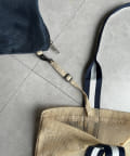 カジュアルながらも、持ち手のラインテープがアクセントになり、コーディネートをぐっと引き締めます。