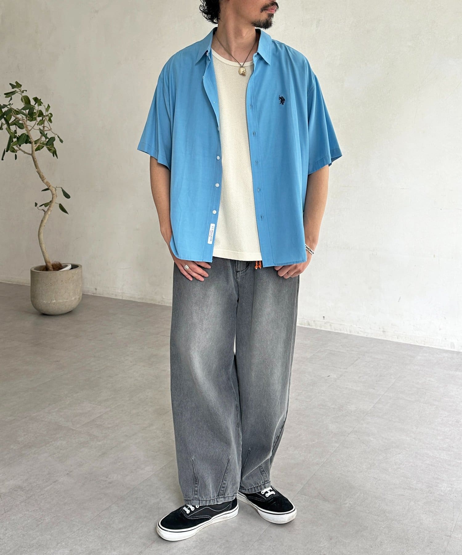 ・オーバーサイズのシャツを羽織って、こなれ感を演出