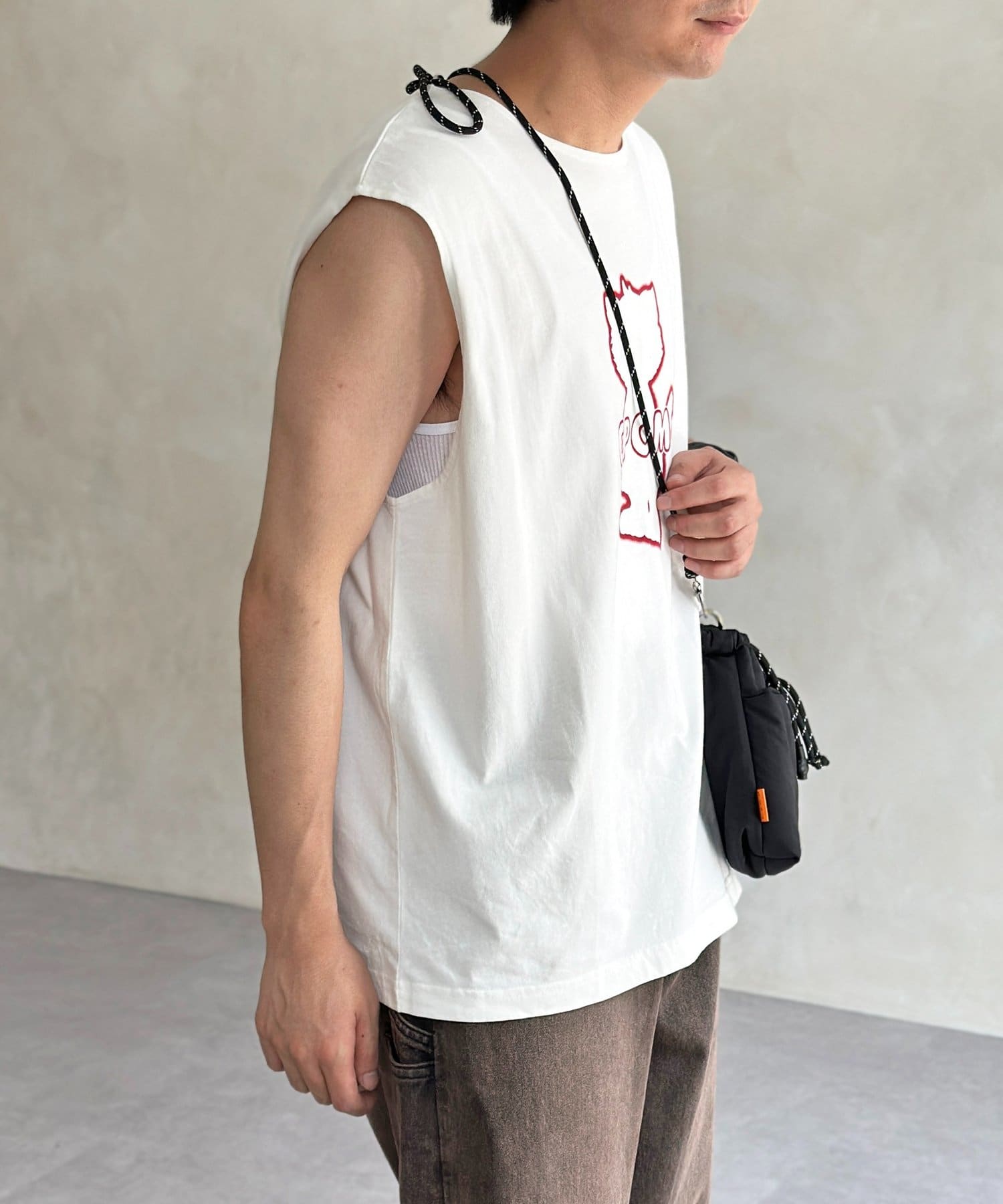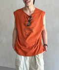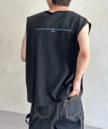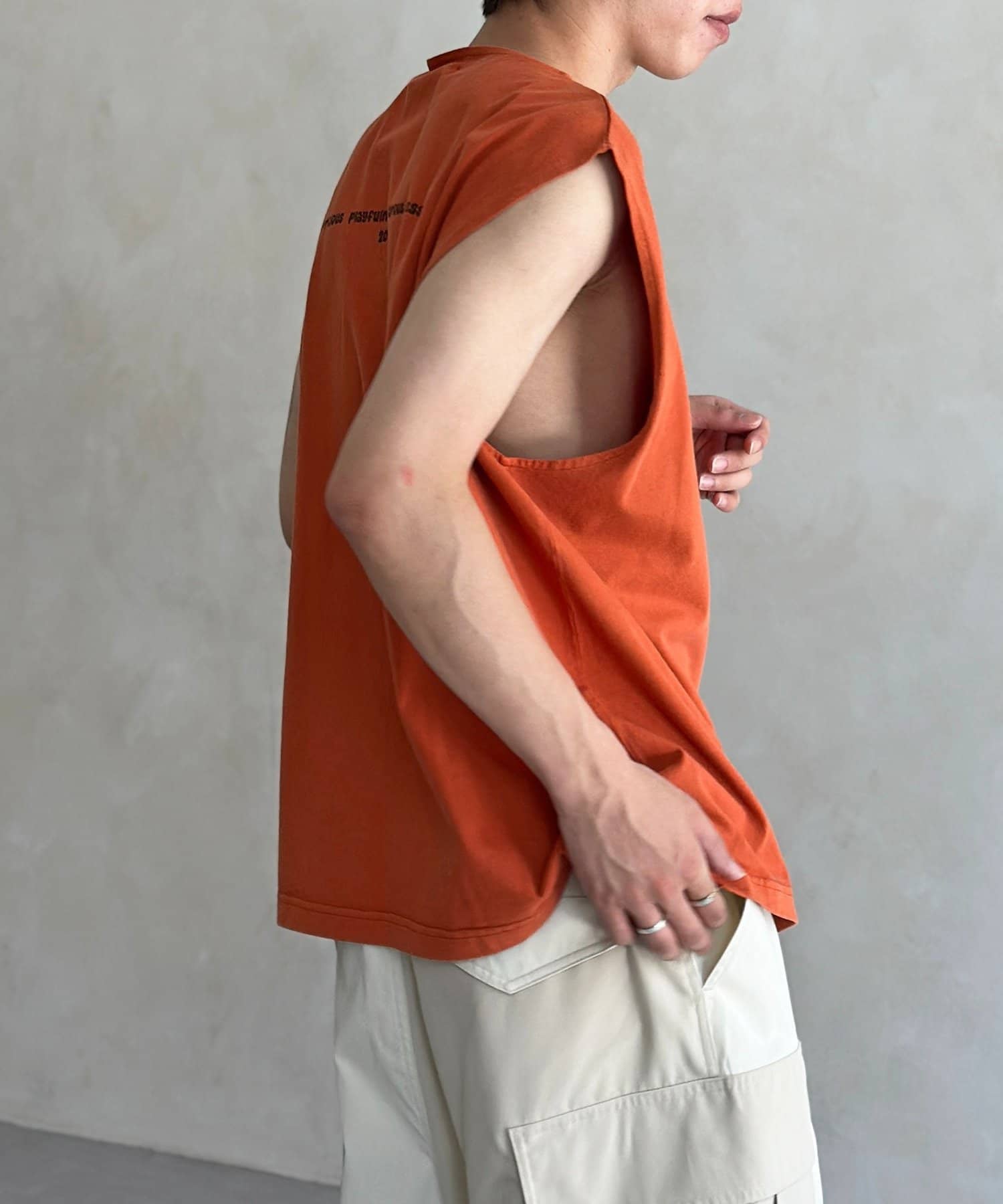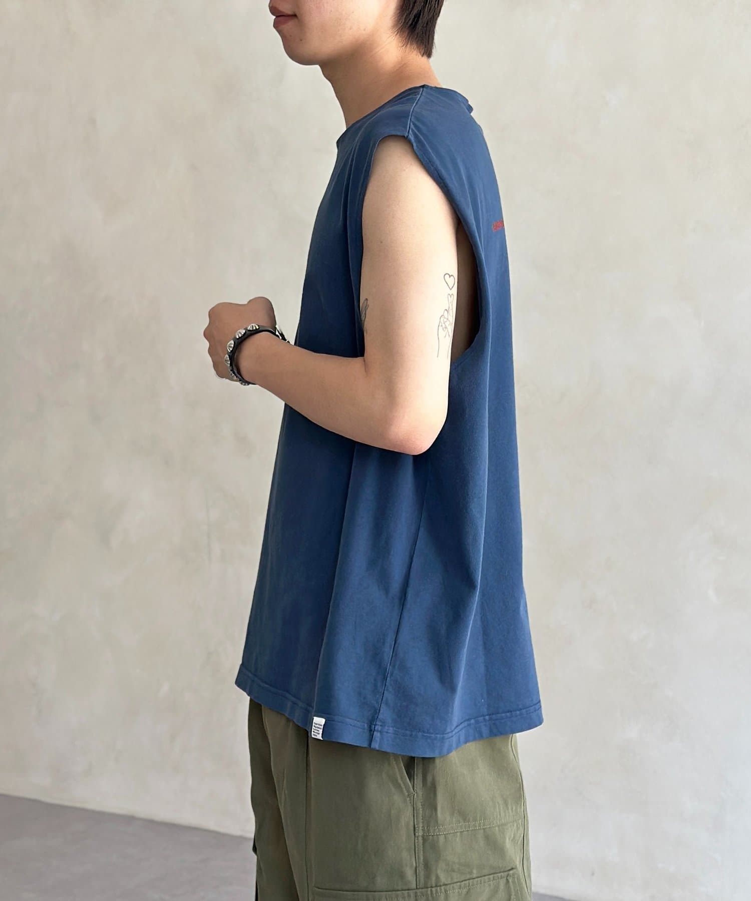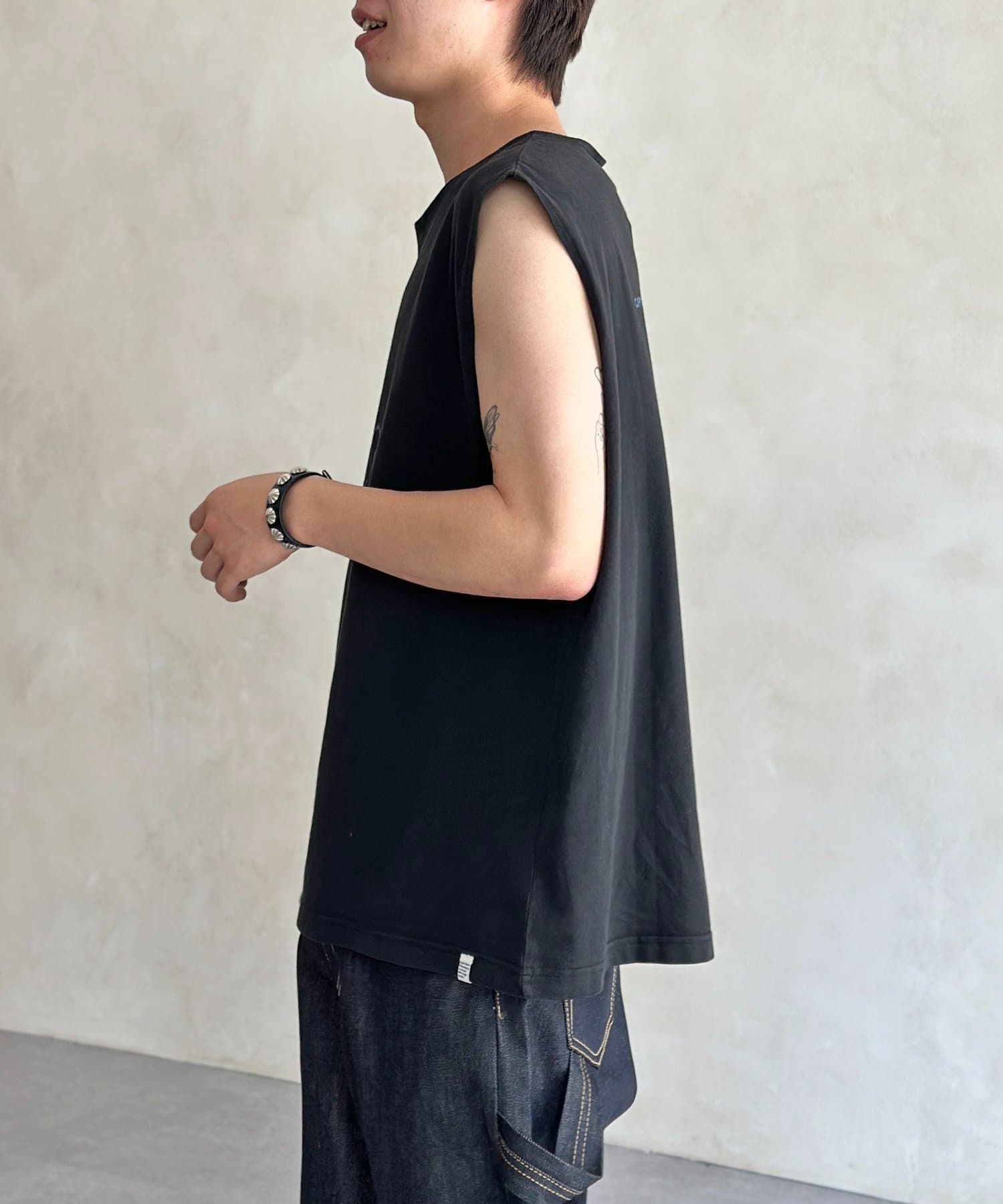 肩を落としたデザインでゆったり着こなせるノースリーブTシャツ