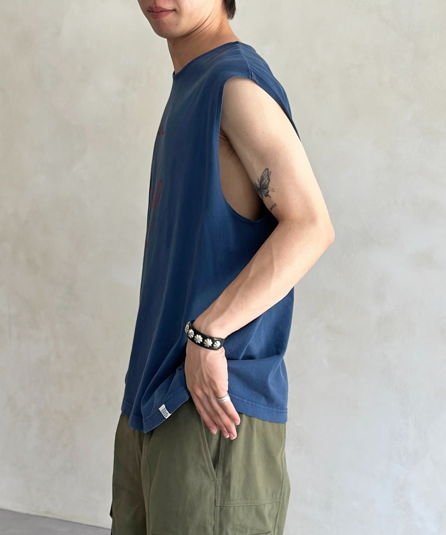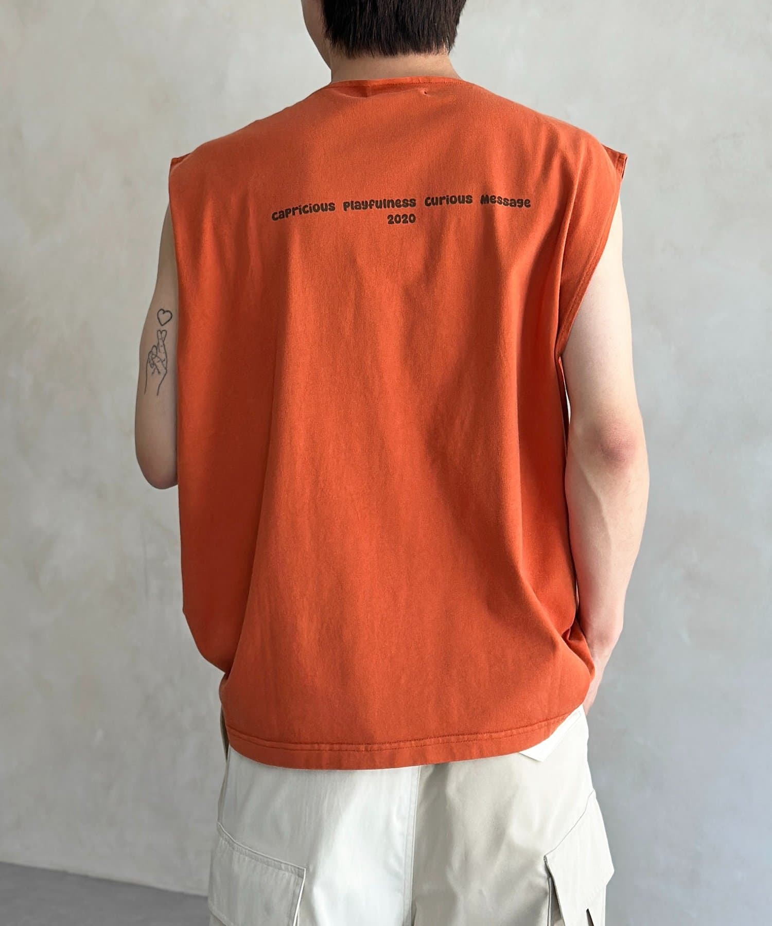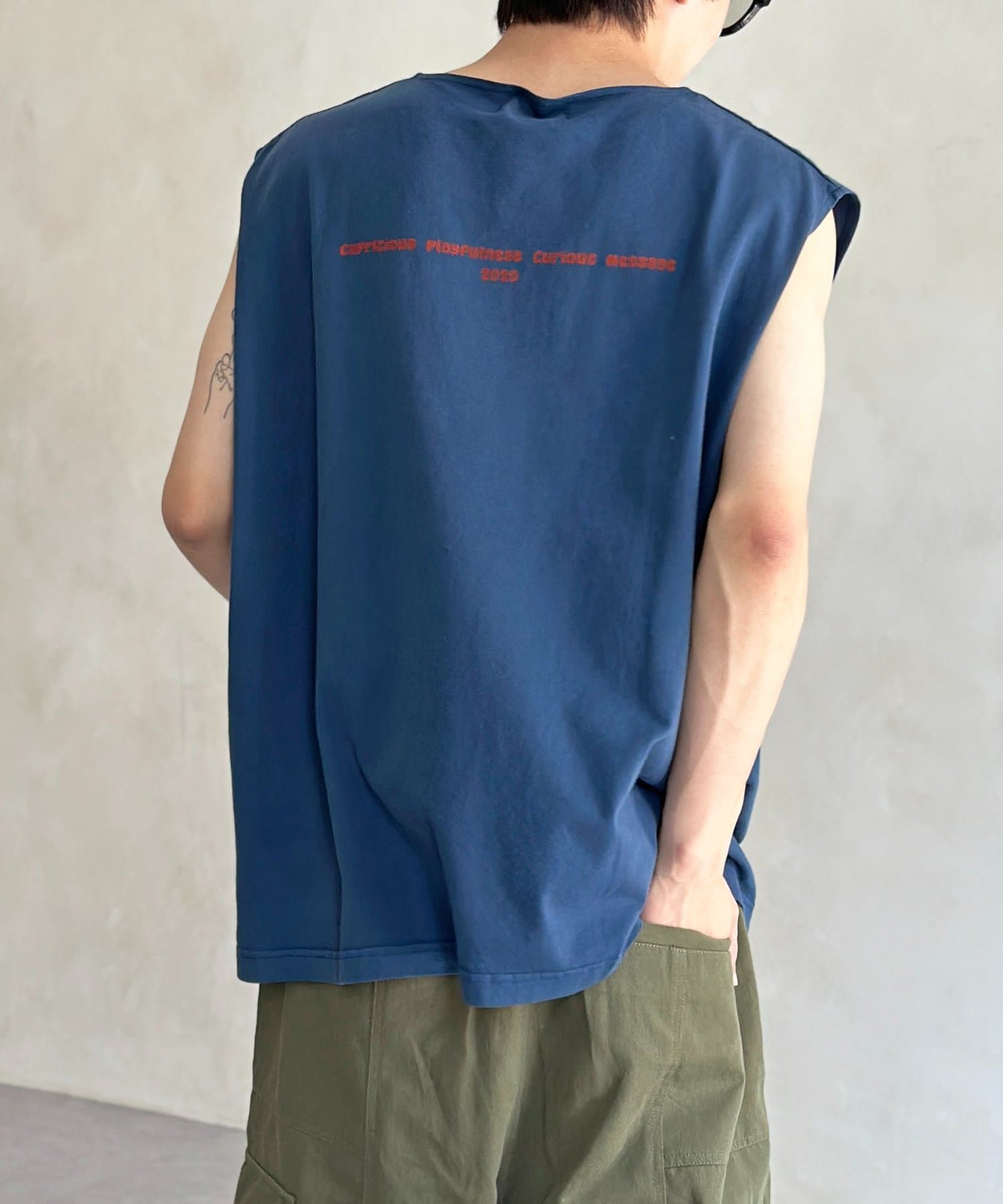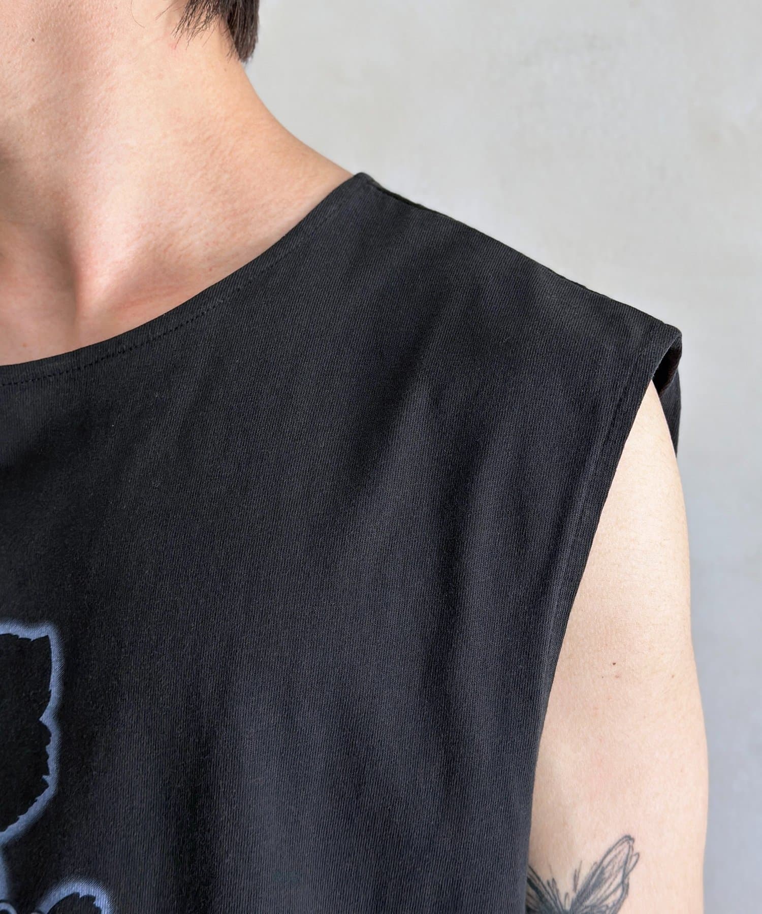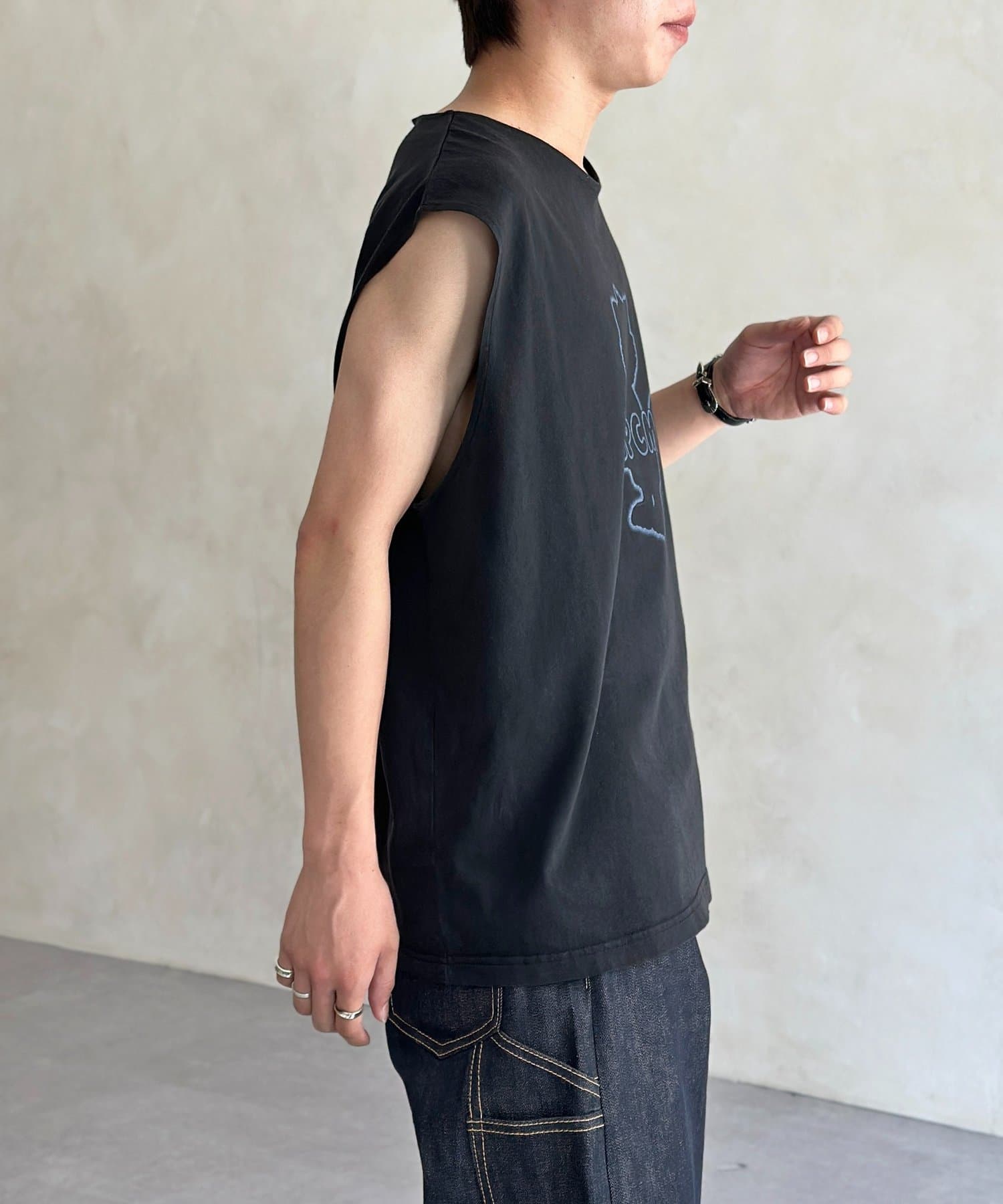 肩を落としたデザインでゆったり着こなせるノースリーブTシャツ