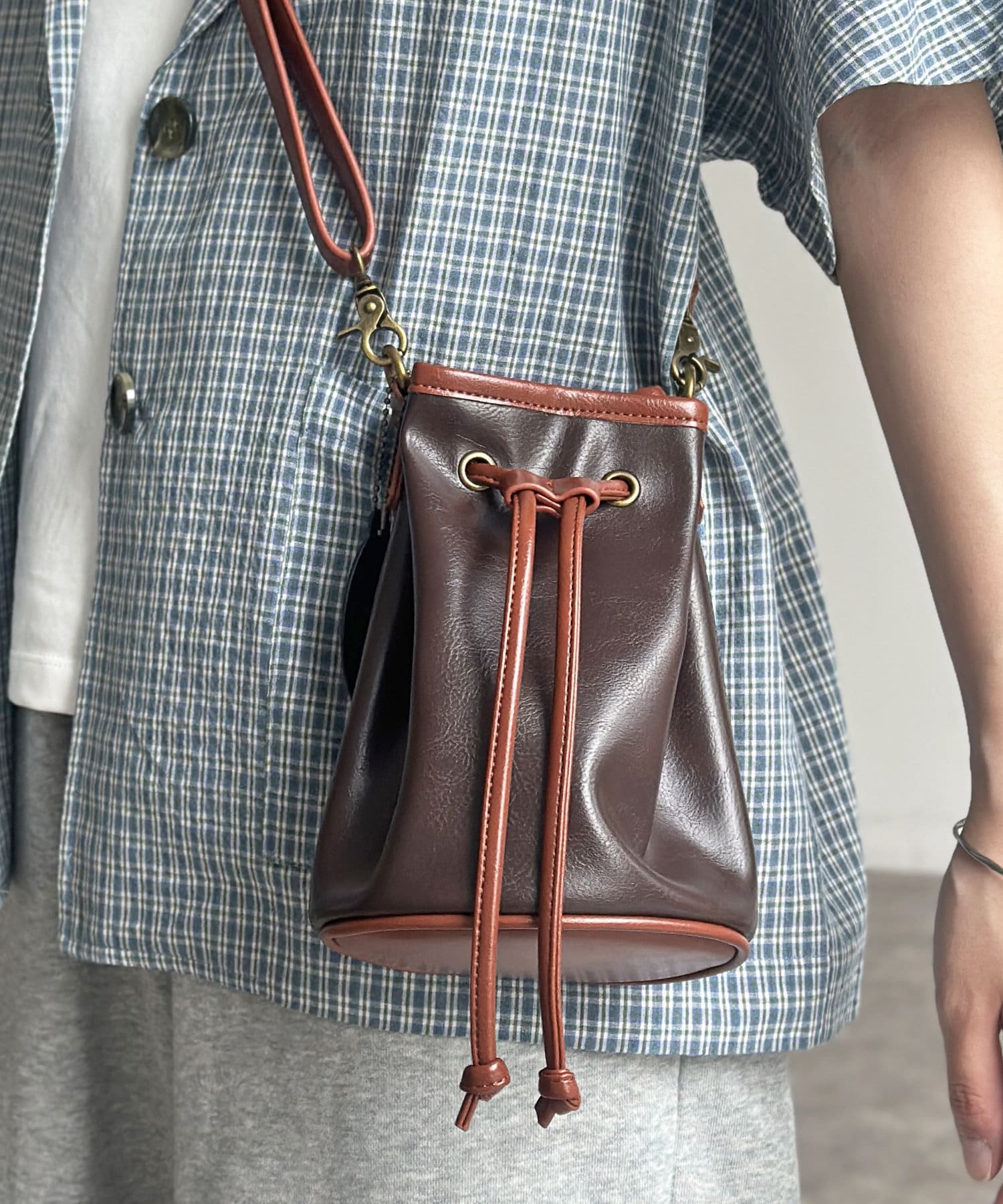 デイリーユースに大活躍!PU素材の巾着ショルダー