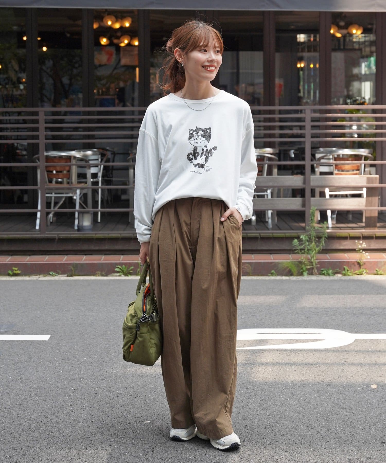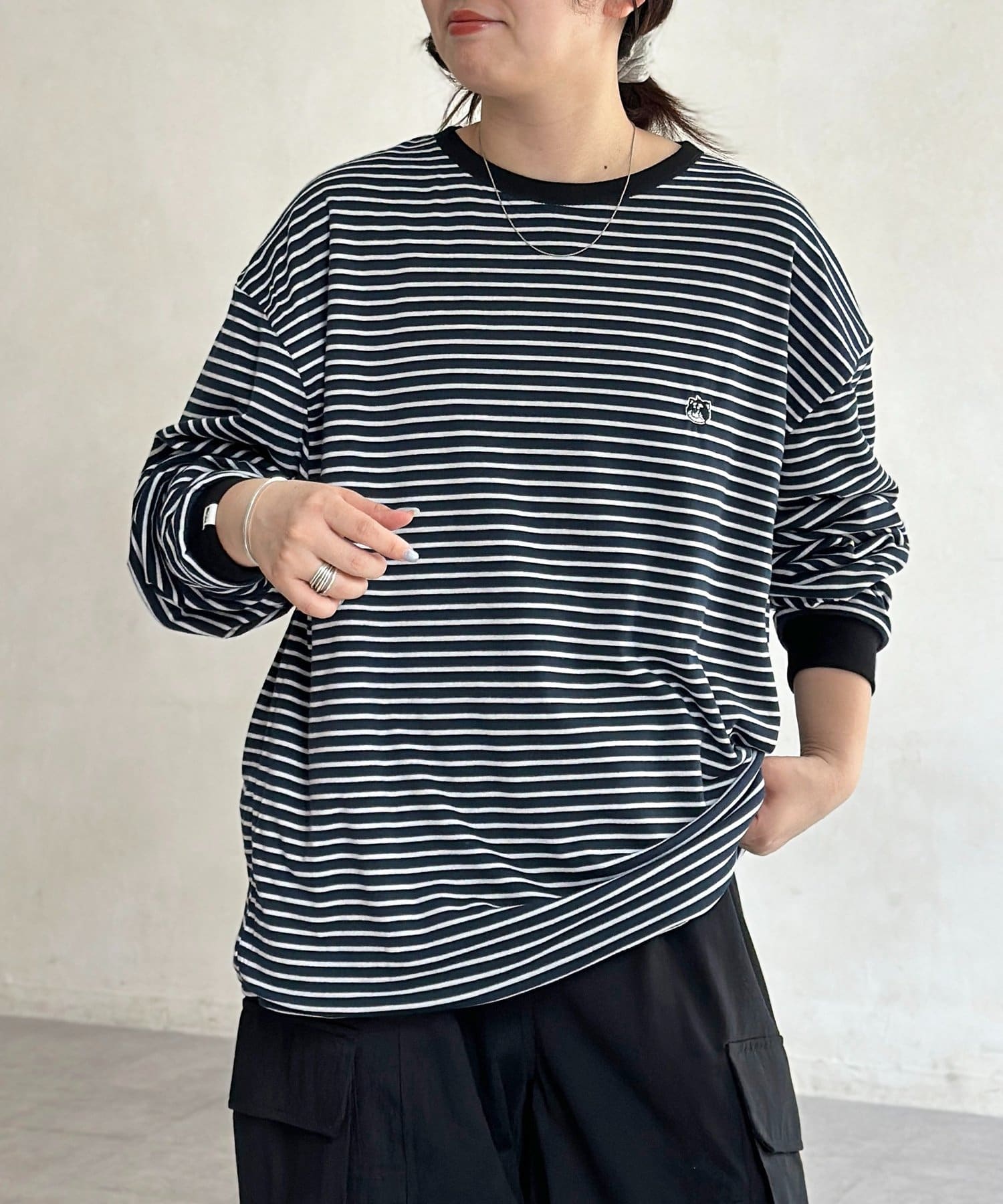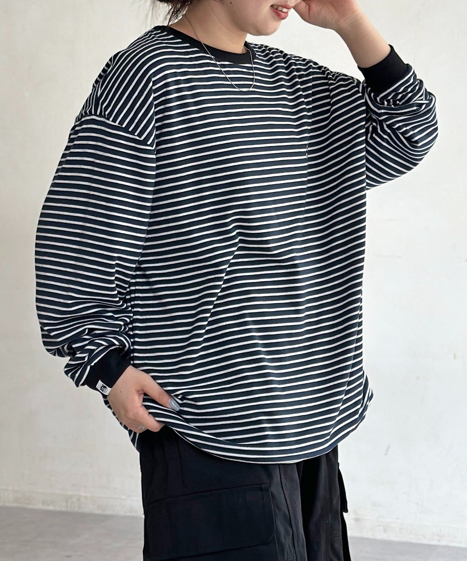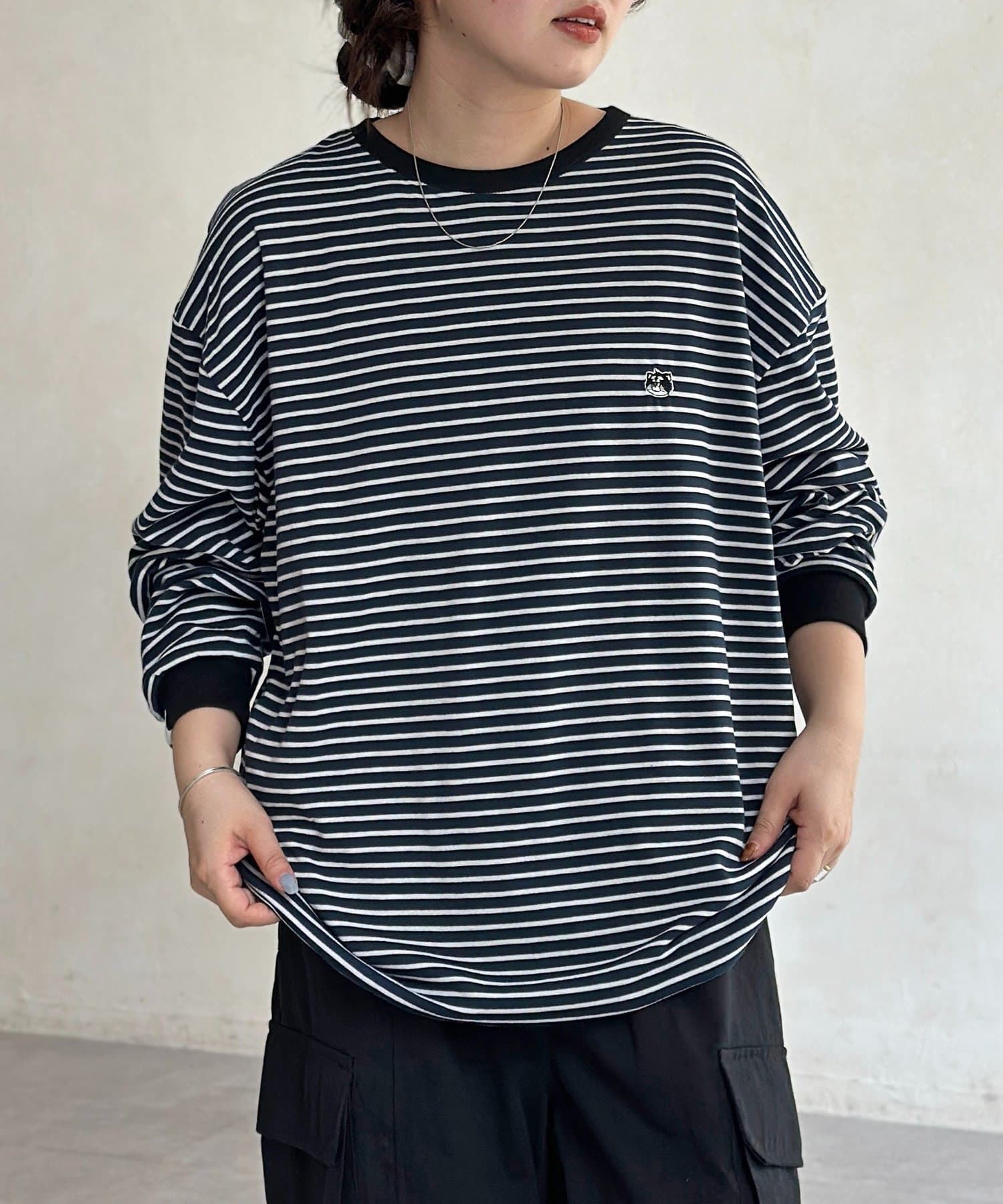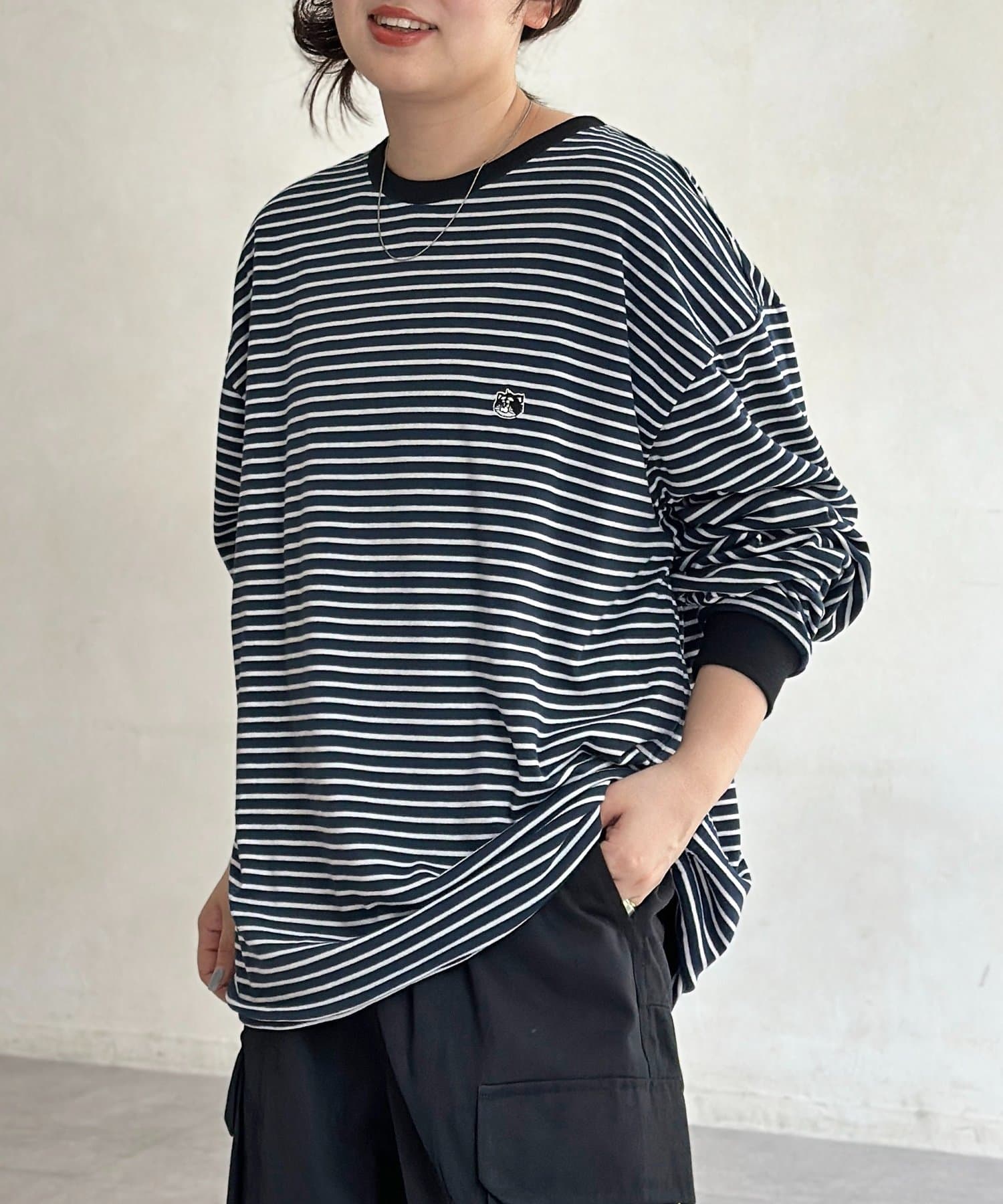 ゆるっとしたシルエットが今っぽく、古着のようなこなれ感のあるロンT。